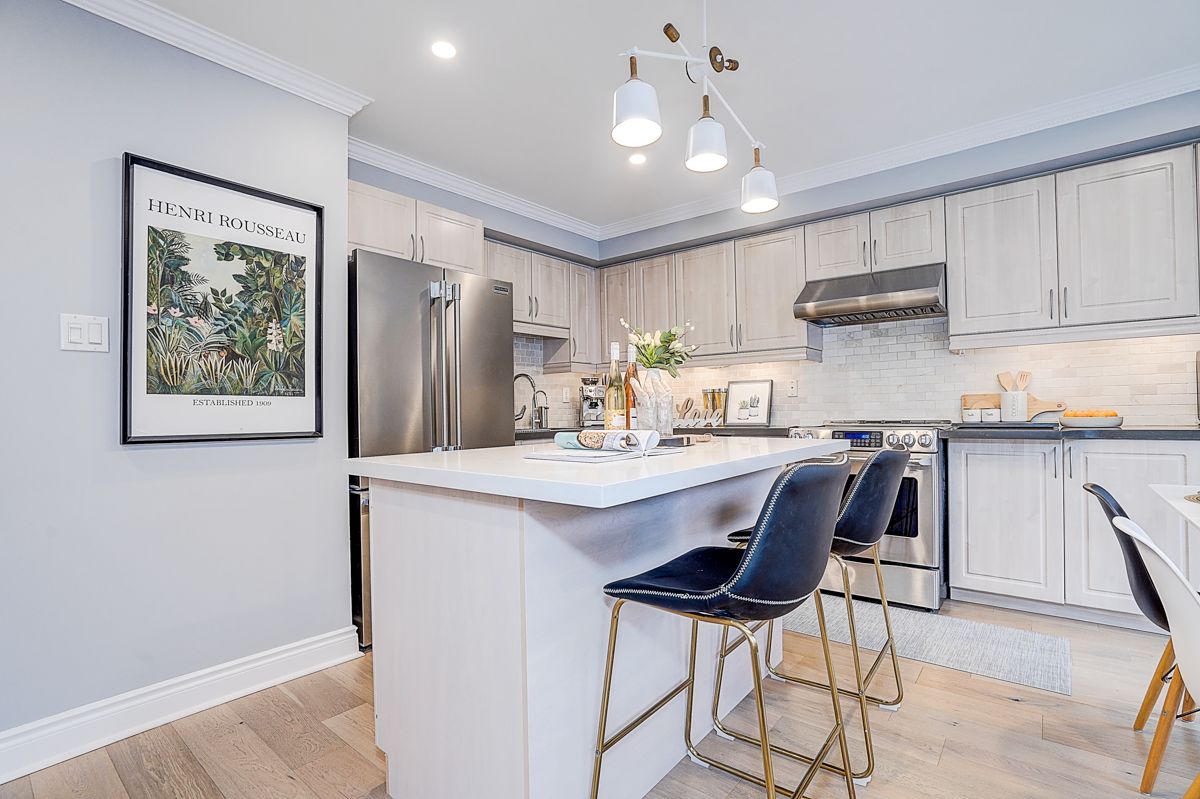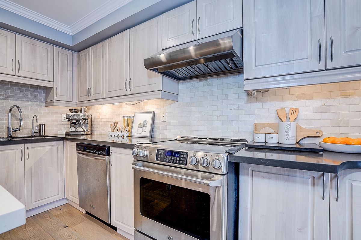 • Gourmet kitchen features quartz countertops and quality stainless steel appliances.