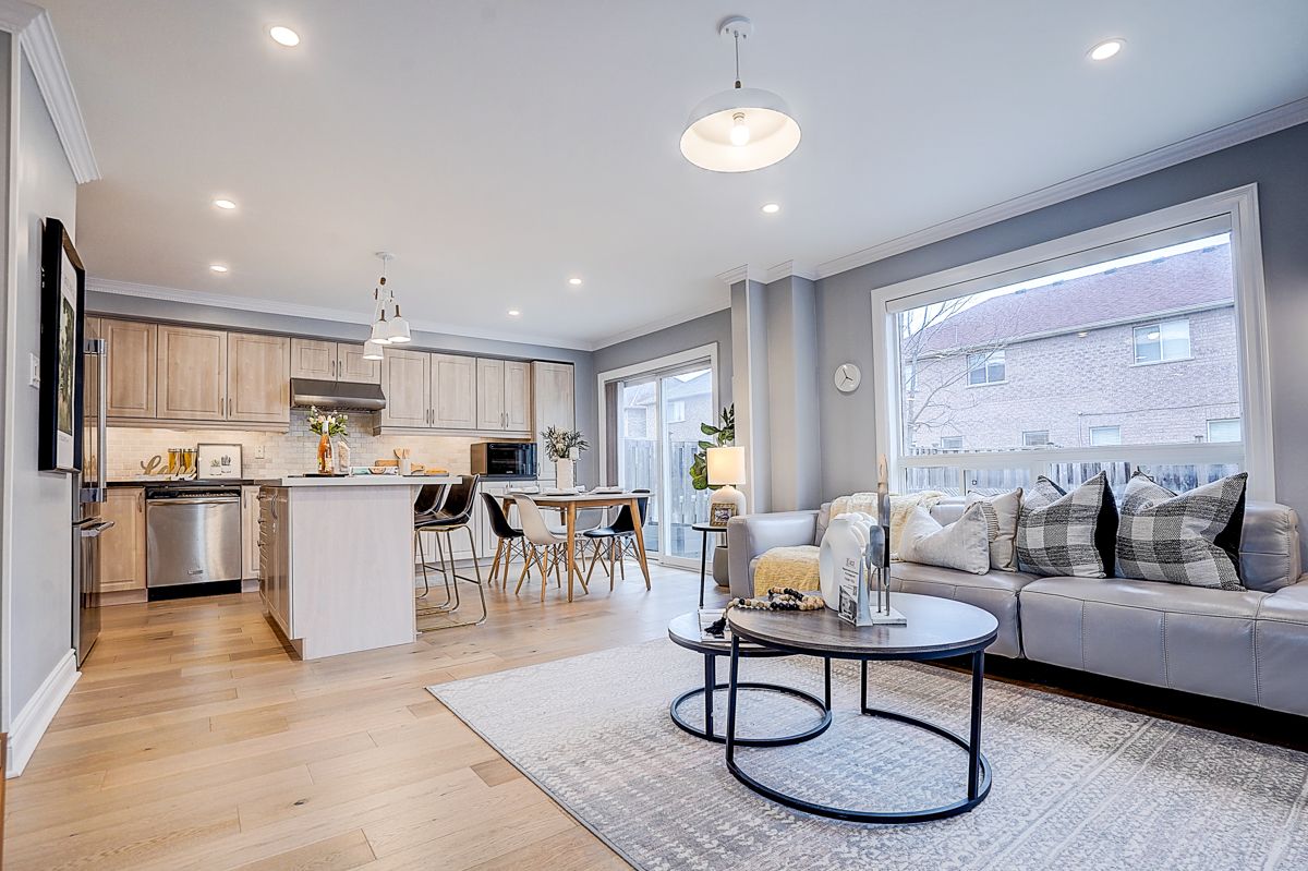 This must-see, beautifully upgraded semi-detached home offers 3 spacious bedrooms and a functional layout that blends comfort with modern style. Featuring new wide-plank hardwood flooring throughout, smooth ceilings, pot lights, and contemporary light fixtures. An elegant staircase with light wood steps, white trim, and iron pickets adds a refined touch. The modern gourmet kitchen showcases quartz countertops, a centre island/breakfast bar, and quality stainless steel appliances. The generously sized primary bedroom includes a walk-in closet and an upgraded 5-piece ensuite. The finished basement (2023) features 1 bedroom, 1 full bathroom, and a large recreational area-ideal for extended family or additional living space. Fully interlocked backyard, offering low-maintenance outdoor living. Recent upgrades provide peace of mind: major renovations completed between 2022-2024, furnace (2023), a/c (2024). Equipped with an ev charger for added convenience. Situated in a desirable neighborhood within a top-ranking school district (markville ss), and conveniently close to go transit, shopping, parks, restaurants, ymca, and hwy 407.
