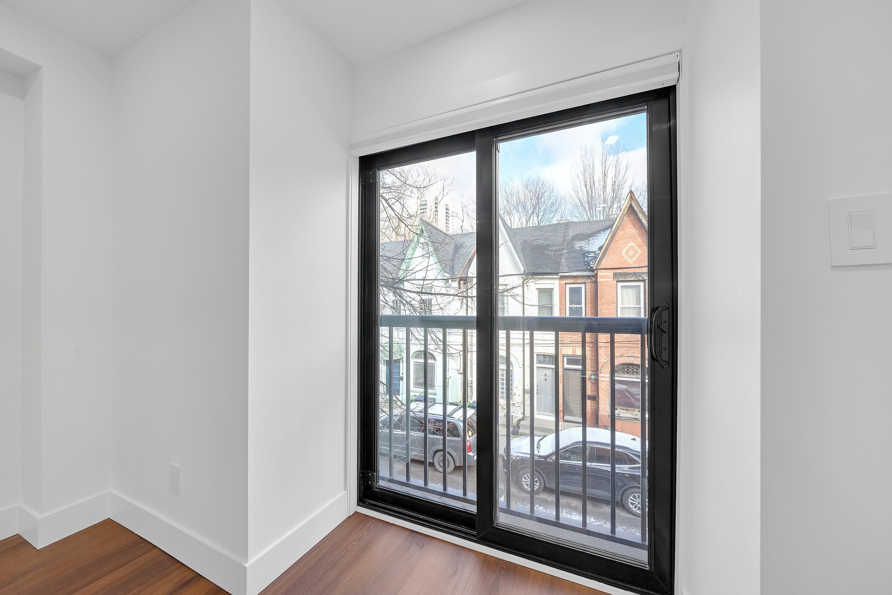 Rarely offered executive townhouse in the regent park district! Discover an exceptional living experience in this executive townhouse located in the vibrant regent park community. This beautifully updated home offers over 1,500 sq. Ft. Of living space plus a fully finished basement with approximately 560 sq. Ft., providing generous room to live, work, and entertain. Fully custom renovated from top to bottom within the last year, the home showcases modern finishes, thoughtful design, and a turn-key living experience. The open-concept main floor offers seamless flow and walks out from the living room to a private wood-fenced yard featuring an interlock patio, perfect for relaxing or entertaining. The finished basement adds incredible versatility with a cozy recreation room featuring a fireplace, bathroom, laundry room, and ample storage space. Additional highlights include one car parking accessible via laneway and the option to lease the unit furnished upon request, offering flexibility for professionals or relocating tenants. Situated in a residential pocket near queen street east and sumach street, this home is steps to parks, schools, transit, local shops, and everything the revitalized regent park community has to offer.