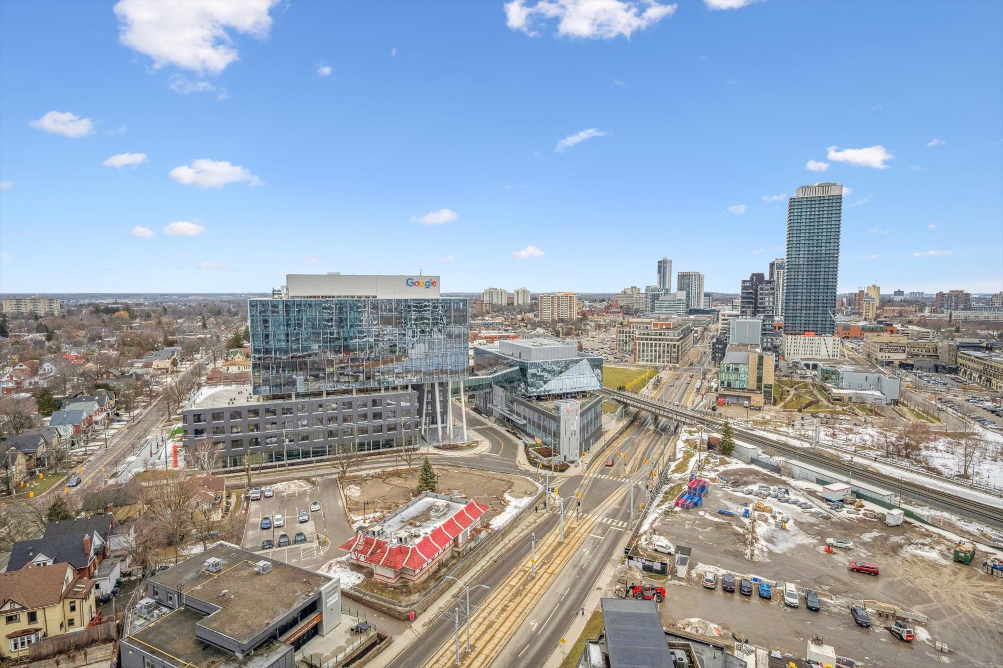 Welcome to station park, one of downtown kitchener's most sought-after condominium communities. This stunning corner unit features a 2-bedroom, 2-bathroom layout with floor-to-ceiling windows offering breathtaking panoramic views of the city. Enjoy your private balcony, perfect for morning coffee or evening relaxation. Includes one parking space and a locker. Station park offers an exceptional selection of amenities, including a luxury resident lounge with bar, bowling alley, pool table, and foosball, a hydrocool swim spa and hot tub, and astute-of-the-art fitness center with gym, yoga/pilates, and peloton studios. Additional conveniences include a pet wash station, landscaped outdoor terrace with cabanas and bbqs, and concierge service. Ideally located steps from shopping, dining, lrt, go train, google, and the innovation district, this residence offers the perfect blend of urban convenience and modern luxury.