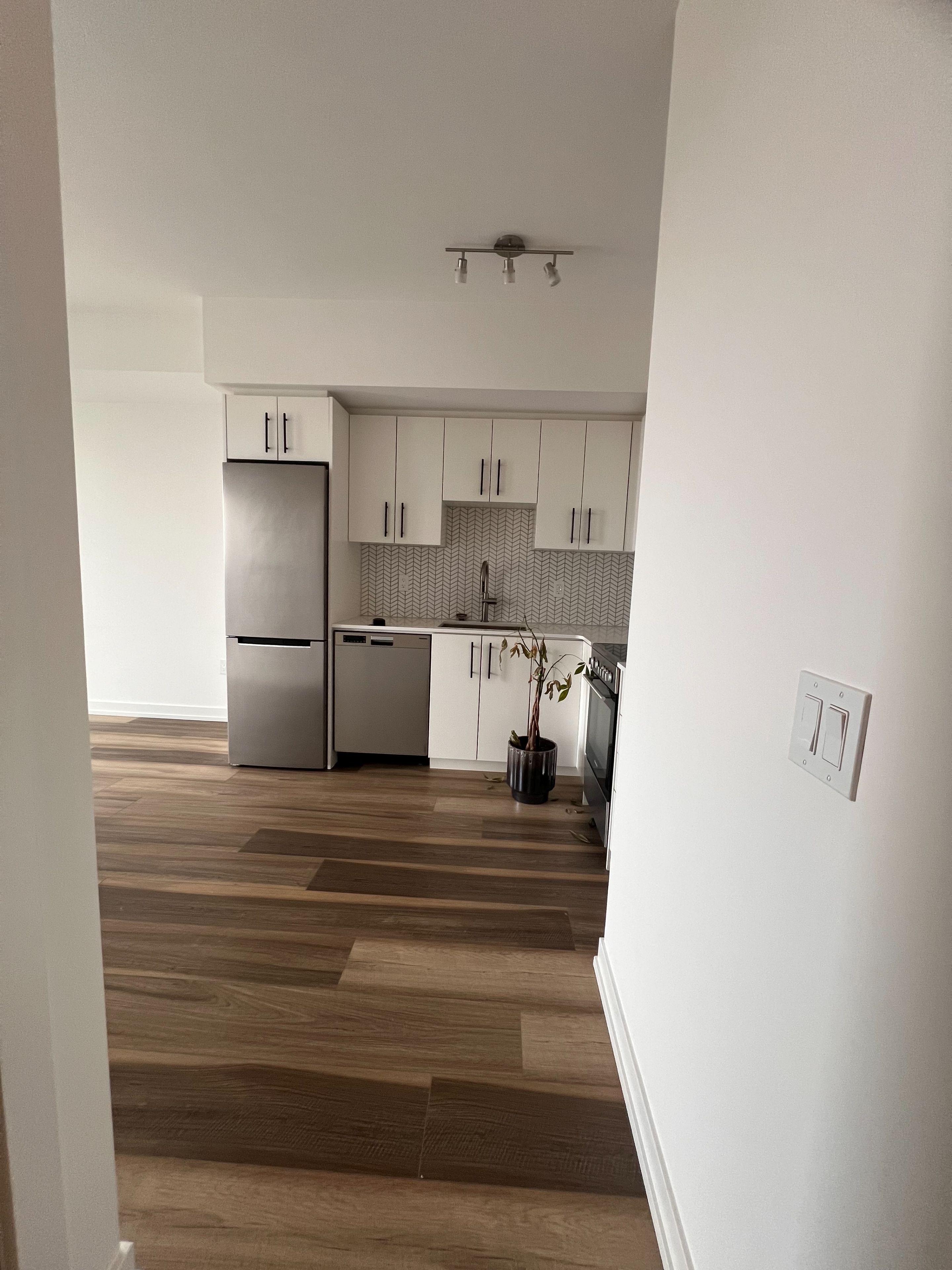 This 615 sq ft one bedroom + den unit is in the highly sought after station park towers, is available immediately. This unit comes with one underground parking, it is elegantly designed with a functional space! Den area & a 45 sq ft balcony, centrally located in the innovation district, station park is home to some of the most unique amenities known two a local development, union towers at station park offers resident many luxury amenity spaces.