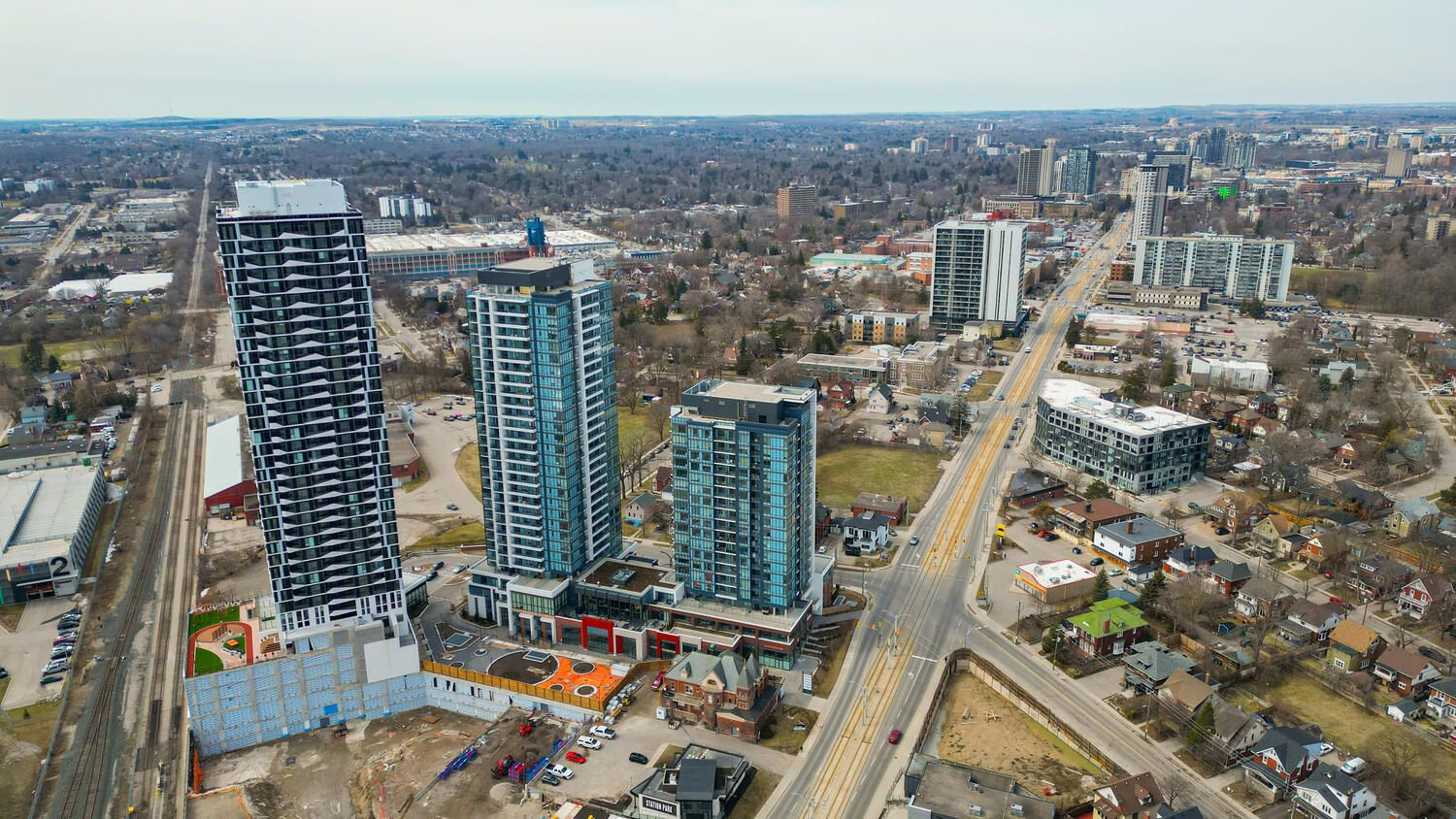 Step into this spectacular corner unit condo in the highly desirable station park towers, one of waterloo region's newest and most prestigious residences, ideally located in the heart of the kitchener-waterloo downtown tech and innovation district. Offering 625 sq ft of living space with an additional 60 sq ft balcony. Total 685 square feet, this modern 1 bedroom, 1 bathroom unit showcases elegant & luxurious finishes, keyless entry & 11ft. Ceilings throughout, and breathtaking panoramic north and west city views. The open concept living space is perfect for entertaining guests or unwinding after a busy day. The kitchen features sleek quartz countertops, stainless steel appliances, and sliding doors to the private balcony. The living room boasts large floor-to-ceiling windows allowing lots natural light to flood the space. The bedroom features a large closet, floor to ceiling window, and the bathroom thoughtfully designed with modern finishes. Additional features include in-suite laundry and one underground parking space. Amenities include: two-lane bowling alley with lounge, premier lounge area with bar, pool table and foosball, private hydro pool swim spa & hot tub, fitness area with gym equipment, yoga/pilates studio & peloton studio , dog washing station / pet spa, landscaped outdoor terrace with cabana seating and bbqs, concierge desk for resident support, private bookable dining room with kitchen appliances, dining table and lounge chairs, a smart parcel locker system for secure parcel and food delivery service. Located just steps away from the go train, ion light rail transit, google, trendy shops, and vibrant nightlife. This condo delivers the perfect blend of style, comfort, and urban convenience. (heat and internet is included, hydro and water not included)