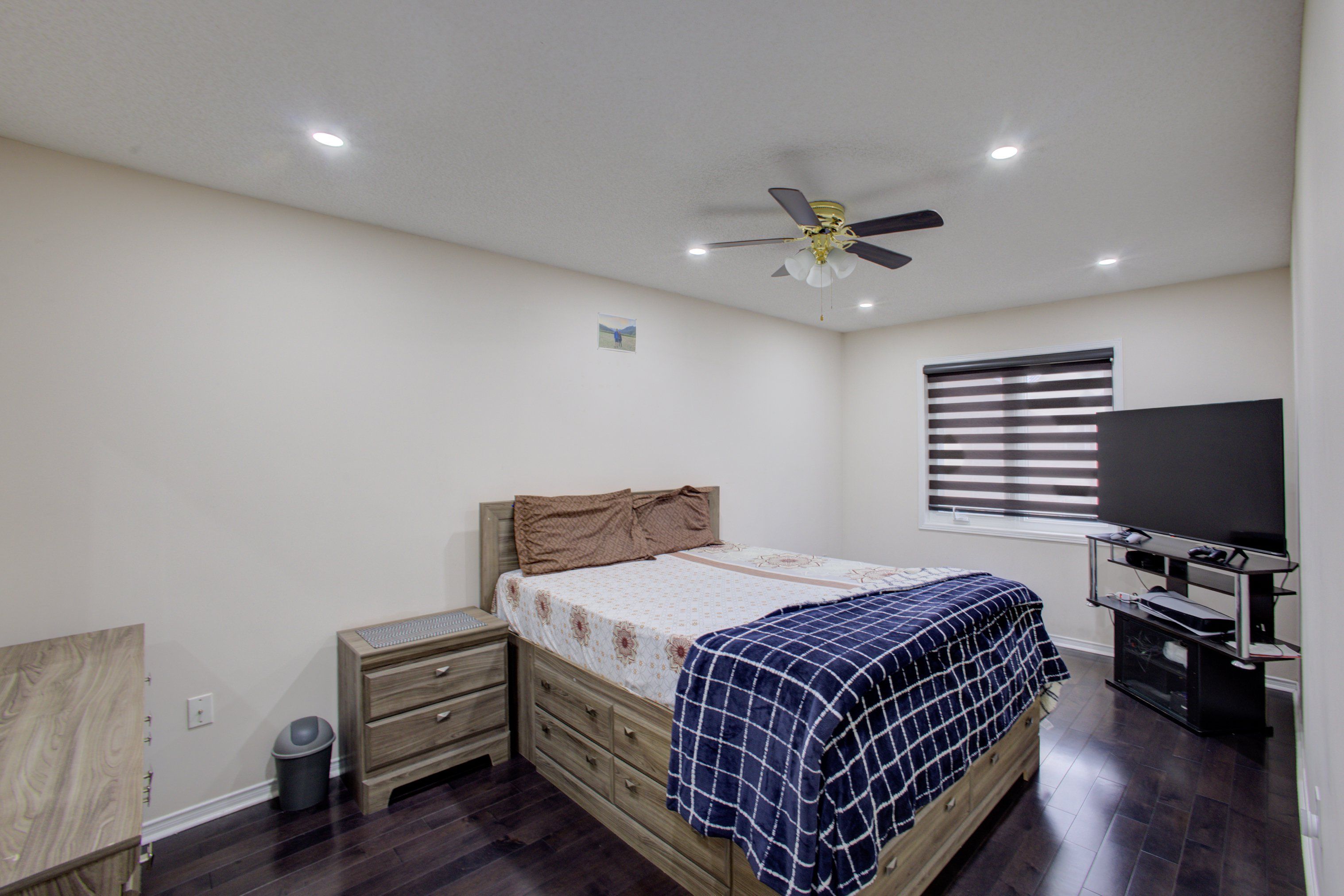 Beautifully upgraded 4-bedroom home with a 2-bedroom legal basement, located in a highly sought-after area near hwy 407 and mavis rd, right on the border of mississauga. This carpet-free home features wide hardwood flooring and elegant 2x2 ft tiles throughout the main and second floors. The home is loaded with upgrades including new triple-pane windows, fresh paint, pot lights throughout, new ac, and owned tankless water heater. Stylish california shutters and zebra blinds are installed throughout. The modern kitchen comes with granite counter top and back splash, stainless steel appliances, a gas stove, and quality finishes. The upgraded master bedroom includes a renovated ensuite bathroom. Additional highlights include a newly installed front double door, a spiral oak staircase with iron pickets, and separate switches for lights and fans in each room. The extended driveway offers parking for up to 6 cars plus 1 in the garage, with a garage door opener installed. Paved concrete backyard (no lawn care tension)a perfect move-in ready home for families or investors looking for comfort, style, and income potential.