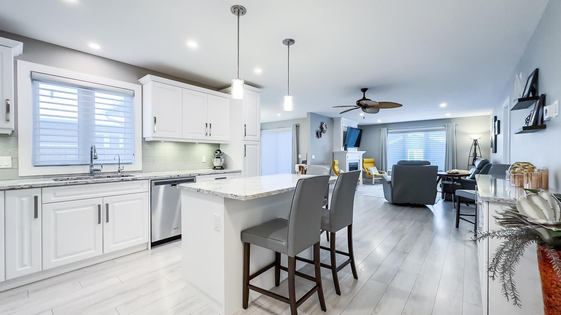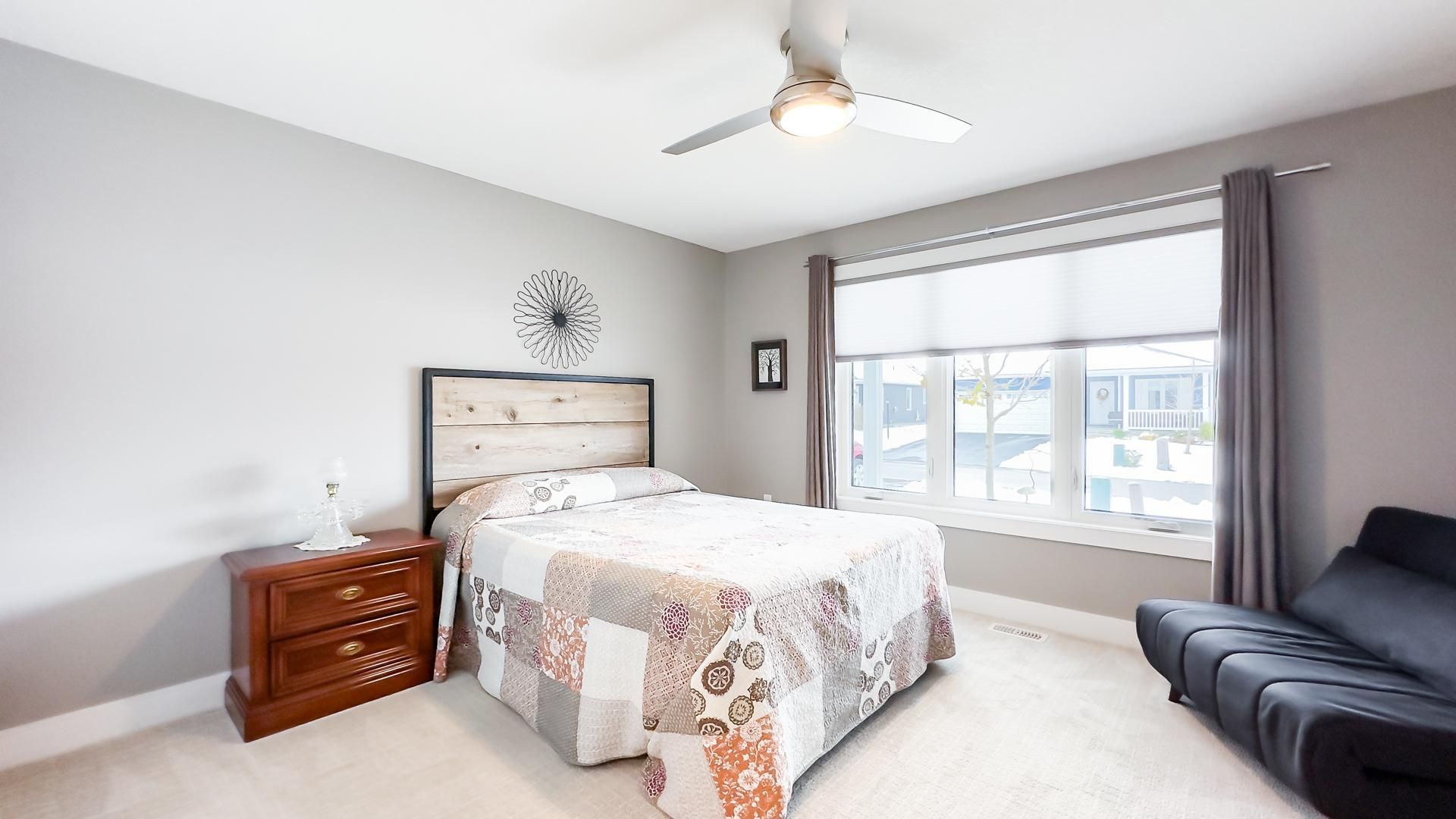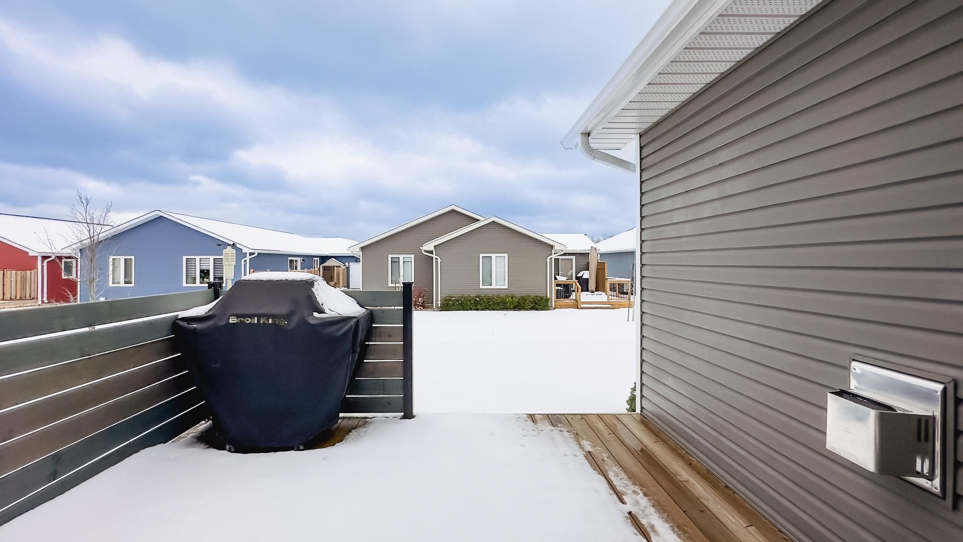 When proximity to lake huron sunsets, the beach, and community matters, wait no longer! This lakeside with sunroom model is located in the bluffs on huron, offering a full crawl space for storage and a range of upgrades no longer available in later builds. The foyer is a welcome entrance with space right off the attached 2 car garage and main door where you have a full sized closet, room for an entrance table and bench to take your footwear off. A crisp white kitchen dazzles the critical eye featuring quartz countertops including the island and a custom oversized side table/hutch with matching quartz. Additional highlights include upgraded appliances, a pantry, crown moulding, pots-and-pans drawers in the island, undermount lighting, tiled backsplash, an oversized kitchen window, and a glass corner cabinet. The living room is a welcoming room with a gas fireplace with a tile inset, the perfect spot for snuggling in on the chilly evenings. The sunroom is a fantastic space for a second sitting room or alternative dining space. Take note of the upgraded interior doors and custom blinds which elevate the feel of the home. The lakeside with sunroom layout offers a generous guest bedroom and a main bathroom positioned at the front of the home. The privately located primary suite includes an ensuite with a 5' shower and a spacious walk-in closet. Outdoors, relax on the deck or install a hot tub on the concrete pad between the deck and garage, both with privacy fencing. Residents enjoy access to an 8,000-square-foot clubhouse featuring an indoor pool, gym, sauna, gathering rooms, and stunning views of lake huron, as well as pickleball courts and a dog park. All of this is just minutes from goderich and local golf courses.
