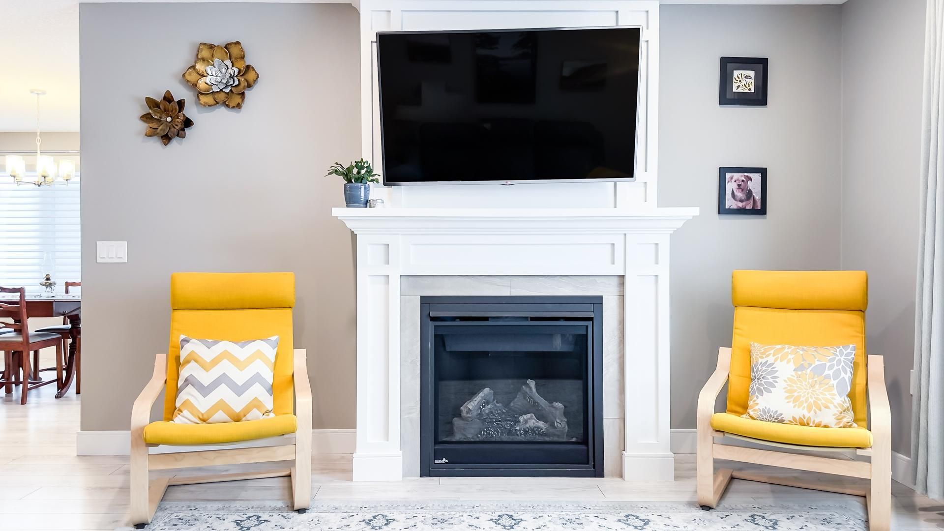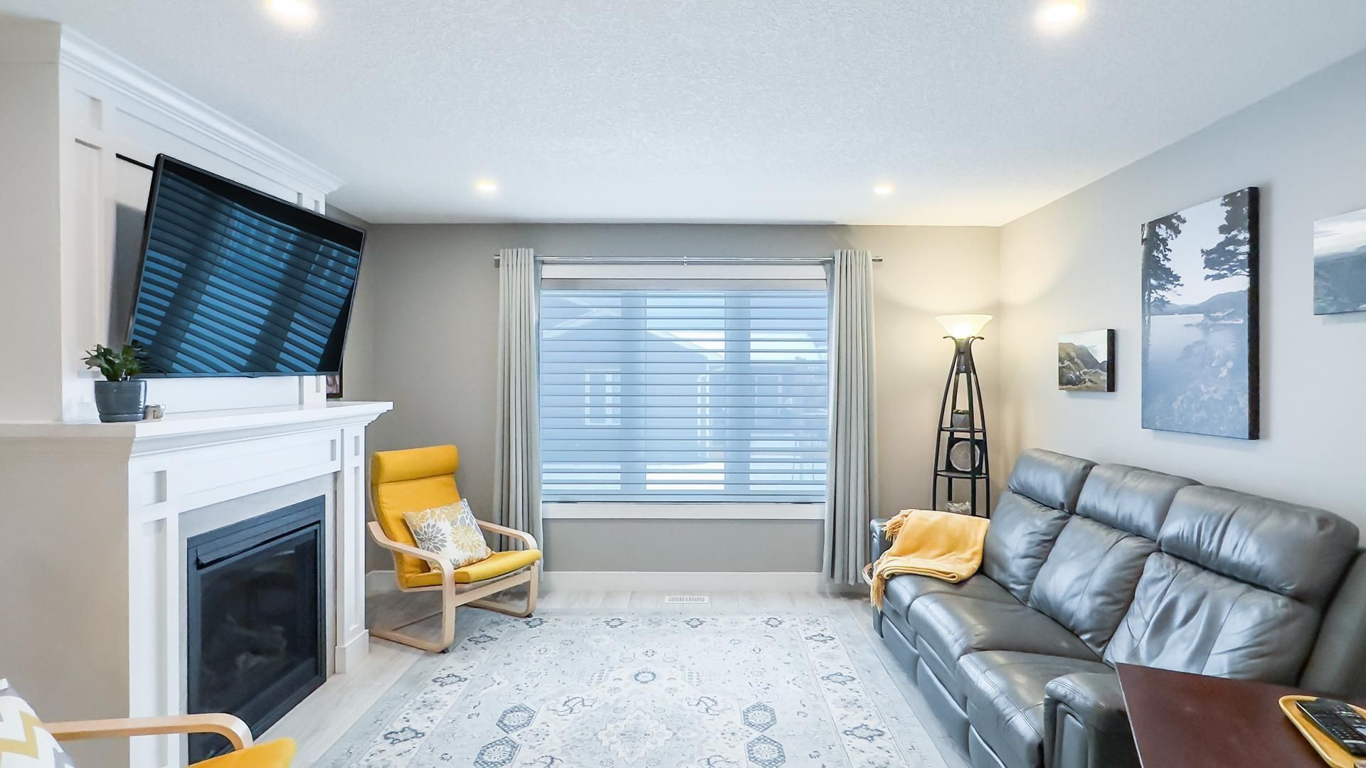 • Cozy living room features a gas fireplace for chilly evenings.