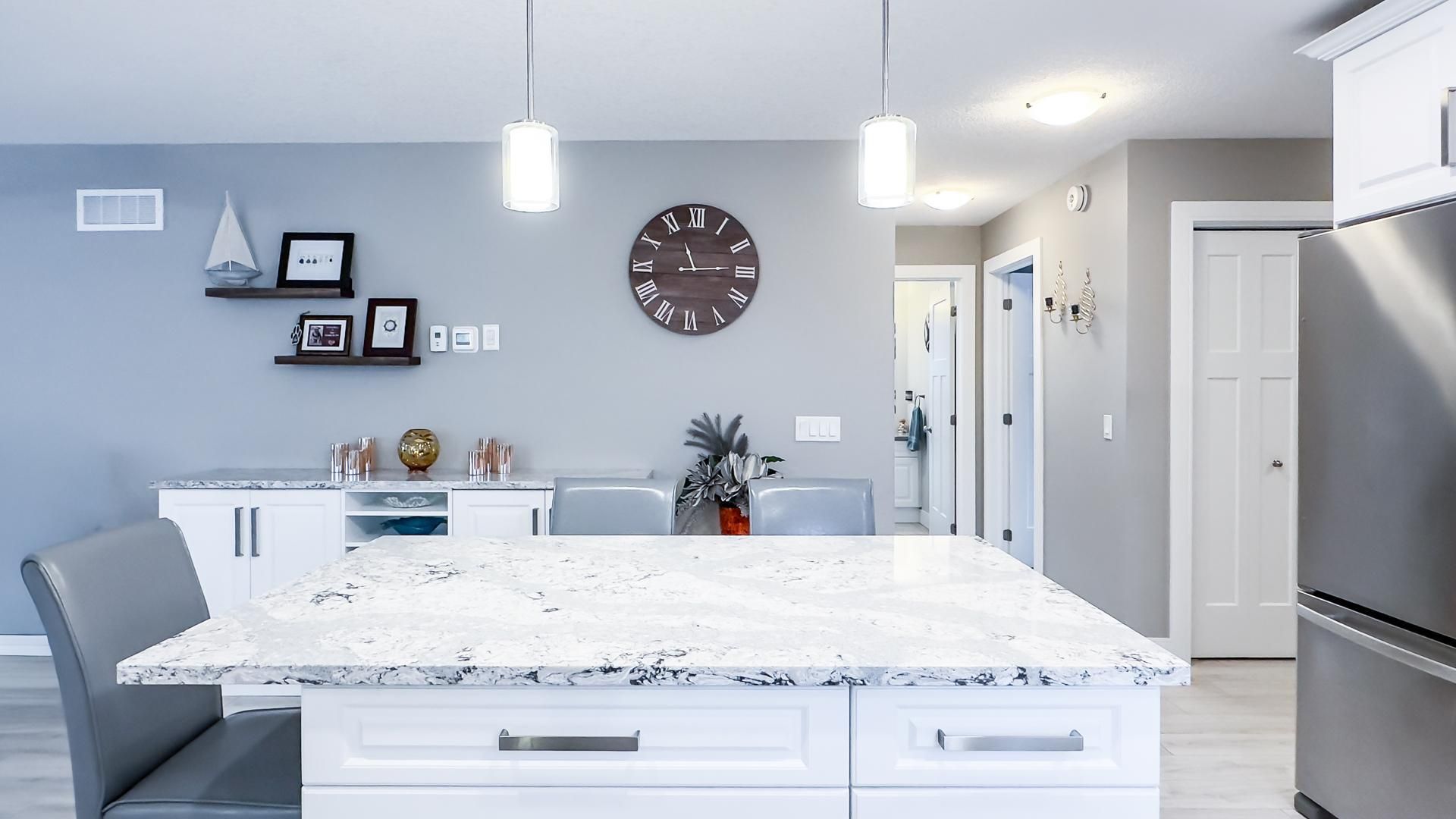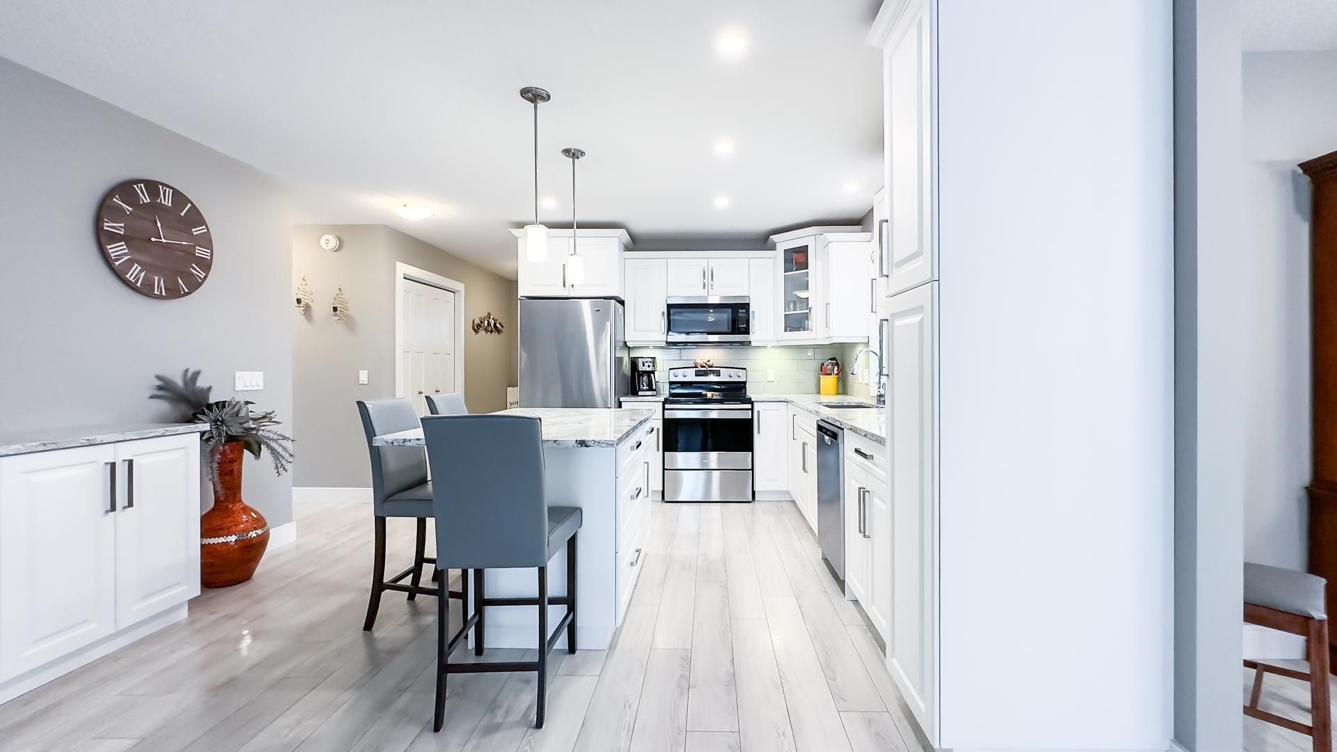 • Upgraded kitchen with quartz countertops and spacious design.