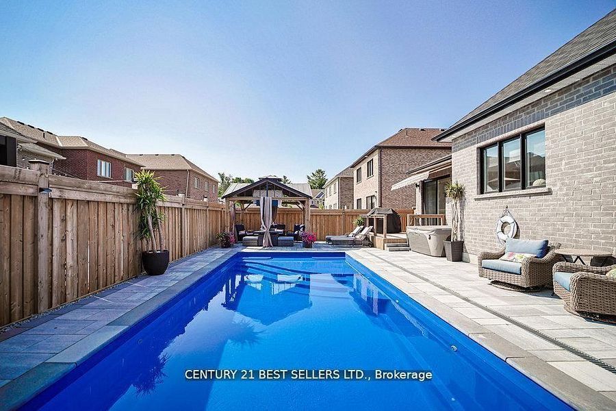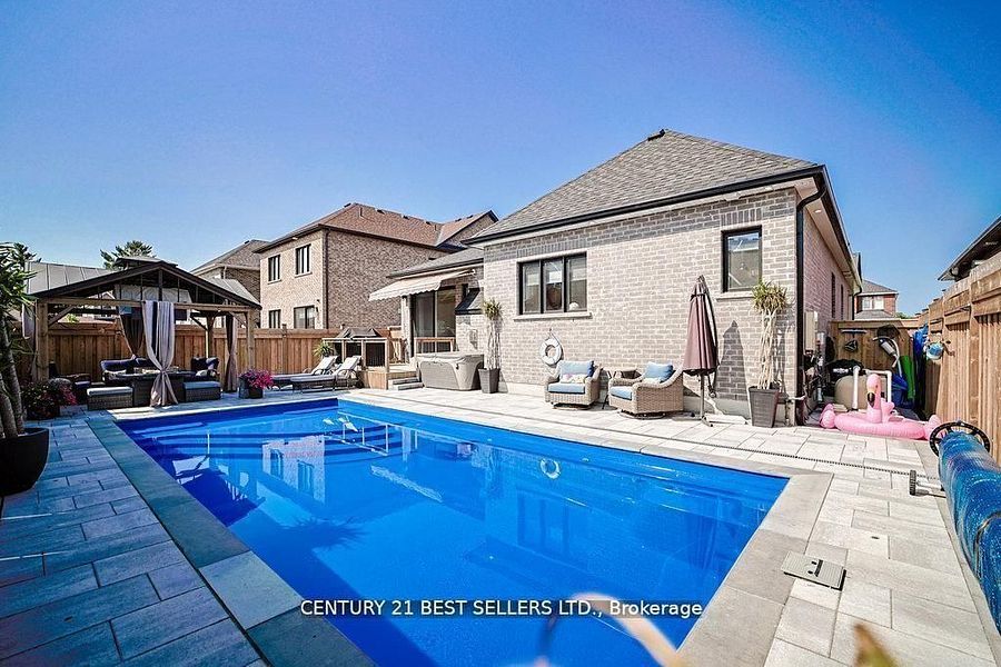 Welcome to your dream home in the heart of prestigious angus! This absolutely stunning 2021 custom-built bungalow offers over 4,100 sqft of luxurious living space with premium upgrades! From the moment you walk in, you'll be wowed by soaring 10-ft ceilings, elegant engineered hardwood floors, all new upgraded lights fixtures, 5 upgraded quartz countertops, kitchen, bathrooms, laundry room, backsplash in kitchen and laundry, above & bellow kitchen cabinet lighting, upgraded fireplace with crystal stones, zebra blinds throughout, and an open-concept kitchen that's an entertainers paradise-complete with walkout to a covered deck, powered gazebo, and a gorgeous in-ground energy saving heated fibreglass pool with automatic chemical system with low annual maintenance cost under $500! Imagine summer evenings by the outdoor fireplace, 2 convenient gas line hookups bbq & fire pit and relaxing in your beautifully landscaped oasis, a backyard built for entertaining. Inside, enjoy 5 spacious bedrooms, 3 full bathrooms with upgraded mirrors, a sorround sound speakers in the rec room, home gym area, separate entrance to basement, and upgrades galore including iron railings, humidifier, 200amp panel, heated garage, 9-ft-ceilings in the lower level, water softener, granite outdoor steps, interlock front and backyard, grass irrigation system and pot lights inside& outside of this gorgeous home. All this on a quiet, upscale street just minutes from schools, parks, church and shopping. This home truly has it all! Don't miss your chance to own and call it home.