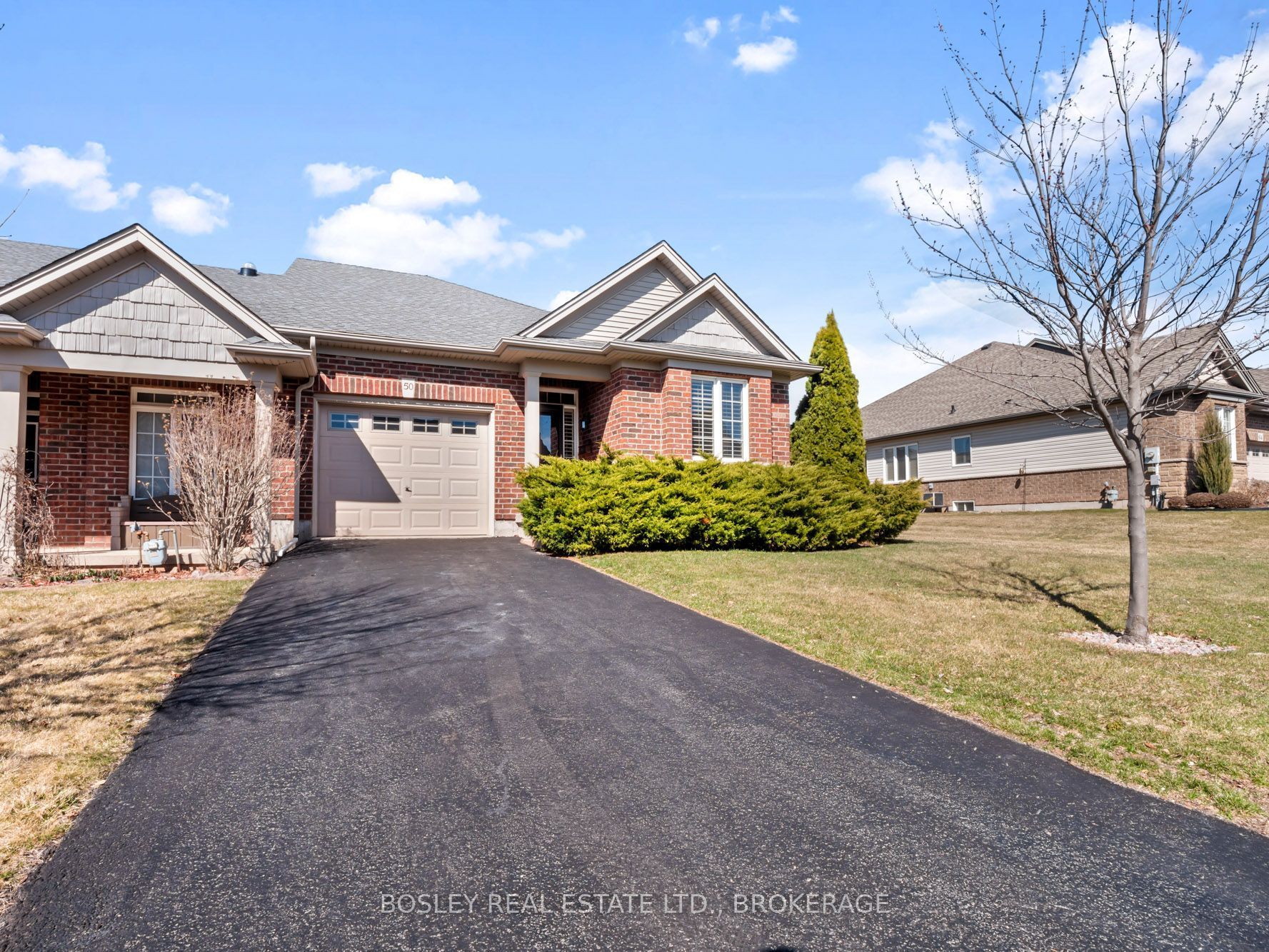 This end unit bungalow townhome is sure to impress, with nine foot ceilings and an open concept design. Situated in the relaxed community of 'the highlands', this home offers approximately 1800 sqft of finished living space on both levels and is tastefully decorated in neutral tones. The space provides loads of natural light, california shutters and a large sliding door with easy access to the covered patio for outdoor living. The generously sized primary bedroom has a 4 piece ensuite, walk-in closet, as well as two more closets in this exclusive space. The second bedroom, with double closet can also be used as a sitting room or office workspace. A second main floor bathroom with shower is conveniently located next to the main floor laundry closet. Inside access to the garage makes grocery day an easy task. A large kitchen peninsula and an abundance of cupboards will make food prep and entertaining a joy for you and your guests. Downstairs is a large bedroom with 4 pc ensuite and an additional large family room across the hall for movie night. There is no shortage of storage, two more (11x14) rooms with further development potential. There is a monthly homeowner's fee ($300/mo.) which includes lawn maintenance, snow removal, alarm monitoring and use of the community clubhouse that is private with exclusive use for 'the highlands' neighbourhood members. The clubhouse has an indoor saltwater pool, hot tub, fitness center, pickleball courts and amenities to engage in social activities or host group events. Book your private viewing today!