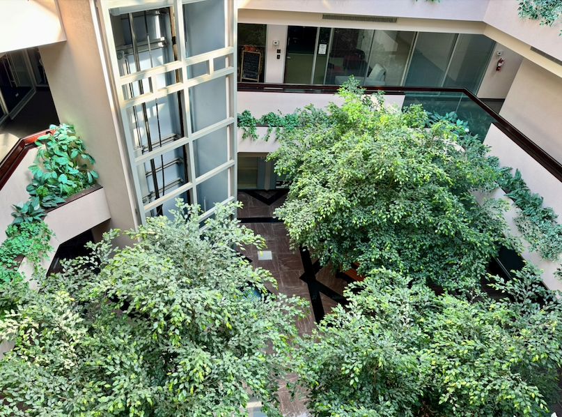 • Well-maintained building featuring a garden-style atrium with natural light.