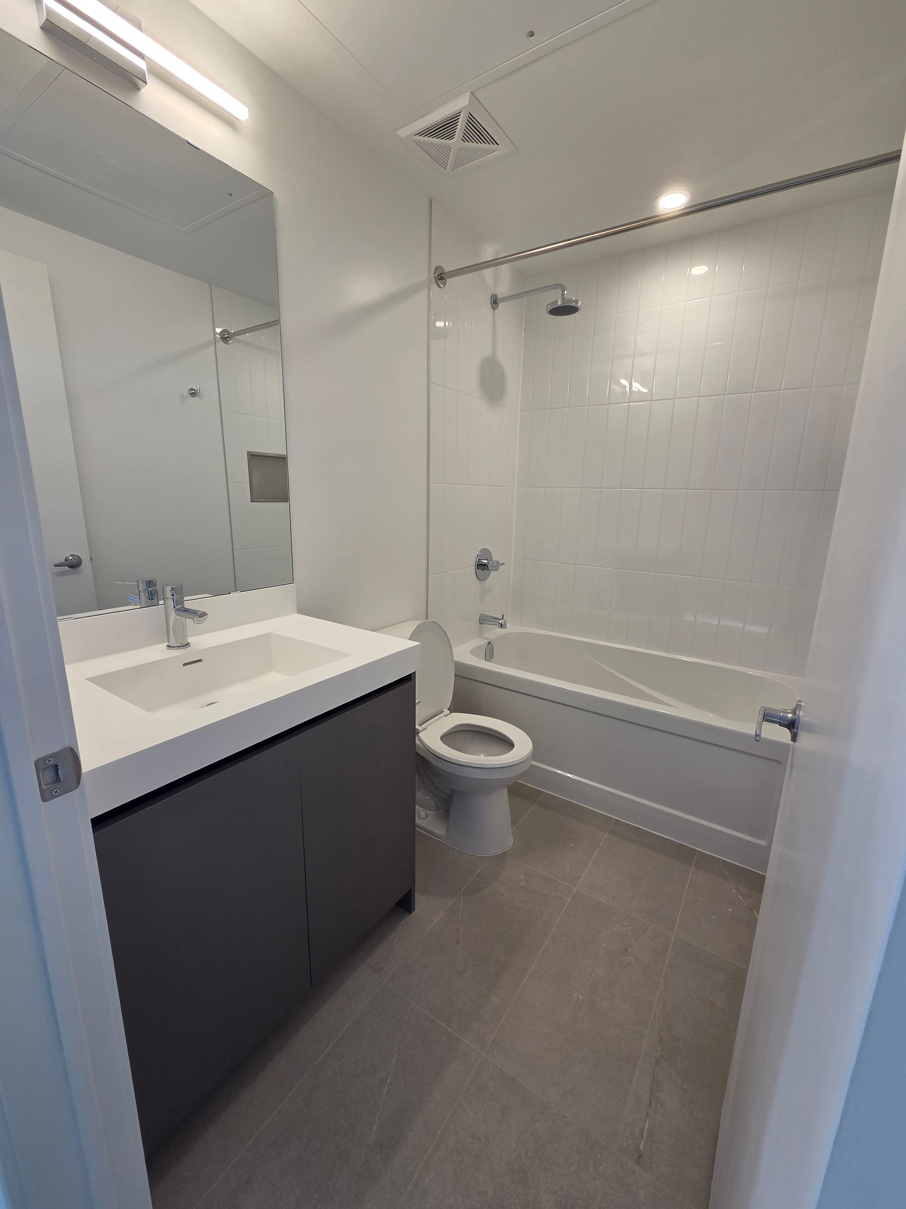 Brand new 2-bedroom, 1-bathroom suite featuring a functional open-concept layout. Modernkitchen equipped with quartz countertops and a central island, complemented by laminateflooring throughout. Includes spacious a front patio, providing additional outdoor spacesuitable for daily use and relaxation. Enjoy access to premium building amenities such as afitness centre, party room, kids' club, games room, and outdoor bbq area. Ideally locatedwithin walking distance to mount pleasant go station, schools, and nearby shopping plazas.