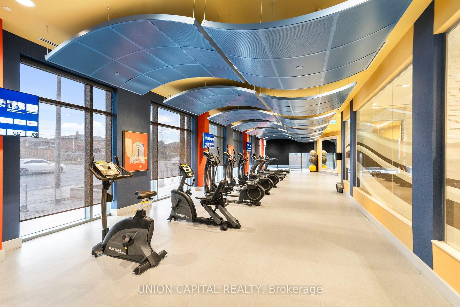 • Open-concept layout with modern finishes and high ceilings.