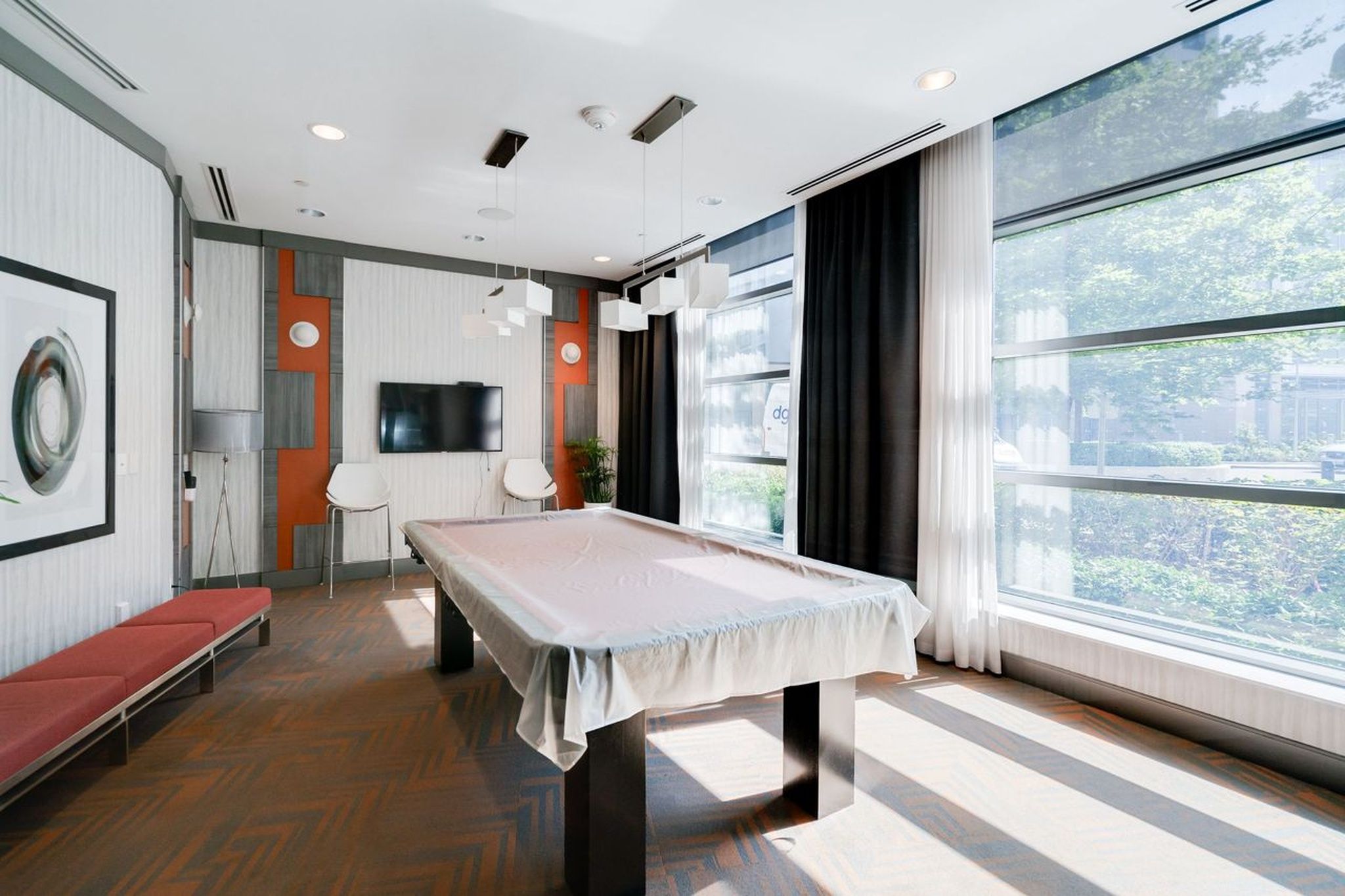• Bright interior with 9ft ceilings and floor-to-ceiling windows.