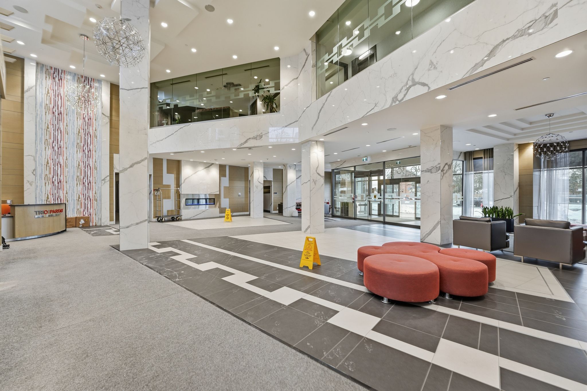 Welcome to 50 ann o'reilly rd, one of tridel's stunning residences in the highly sought-after atria community in north york! This beautifully designed 1-bedroom-plus-den suite offers modern living at its finest. Perfect for first-time buyers, investors, or anyone looking for stylish urban convenience. Enjoy a bright, open-concept layout with 9-ft ceilings, floor-to-ceiling windows, wide-plank flooring, and a sleek contemporary kitchen featuring stainless steel appliances, granite countertops, and upgraded cabinetry. The spacious primary bedroom is a true retreat, complete with its own private 3-piece ensuite featuring a walk-in glass shower. The generous den offers excellent flexibility and can easily function as a guest room or home office, with the unit's second 2-piece bathroom conveniently located just across the hall. Step out onto your private balcony for fresh air and spectacular unobstructed views! The building showcases resort-style amenities, including a 24-hour concierge, state-of-the-art fitness studio, yoga & spin rooms, indoor exercise pool, steam room, party lounge, games room, media theatre, rooftop terrace, and even unlimited high-speed internet included in the condo fee. Live steps from the don mills subway station, ttc, fairview mall, restaurants, cafes, groceries, parks, and top-tier shopping - with effortless access to hwy 401, 404, and the dvp. Move-in ready, exceptionally maintained, and built with tridel's legendary quality. Experience true comfort, convenience, and luxury in one of toronto's most connected neighbourhoods. Your next chapter starts at 50 ann o'reilly rd, where modern living meets an unbeatable location!
