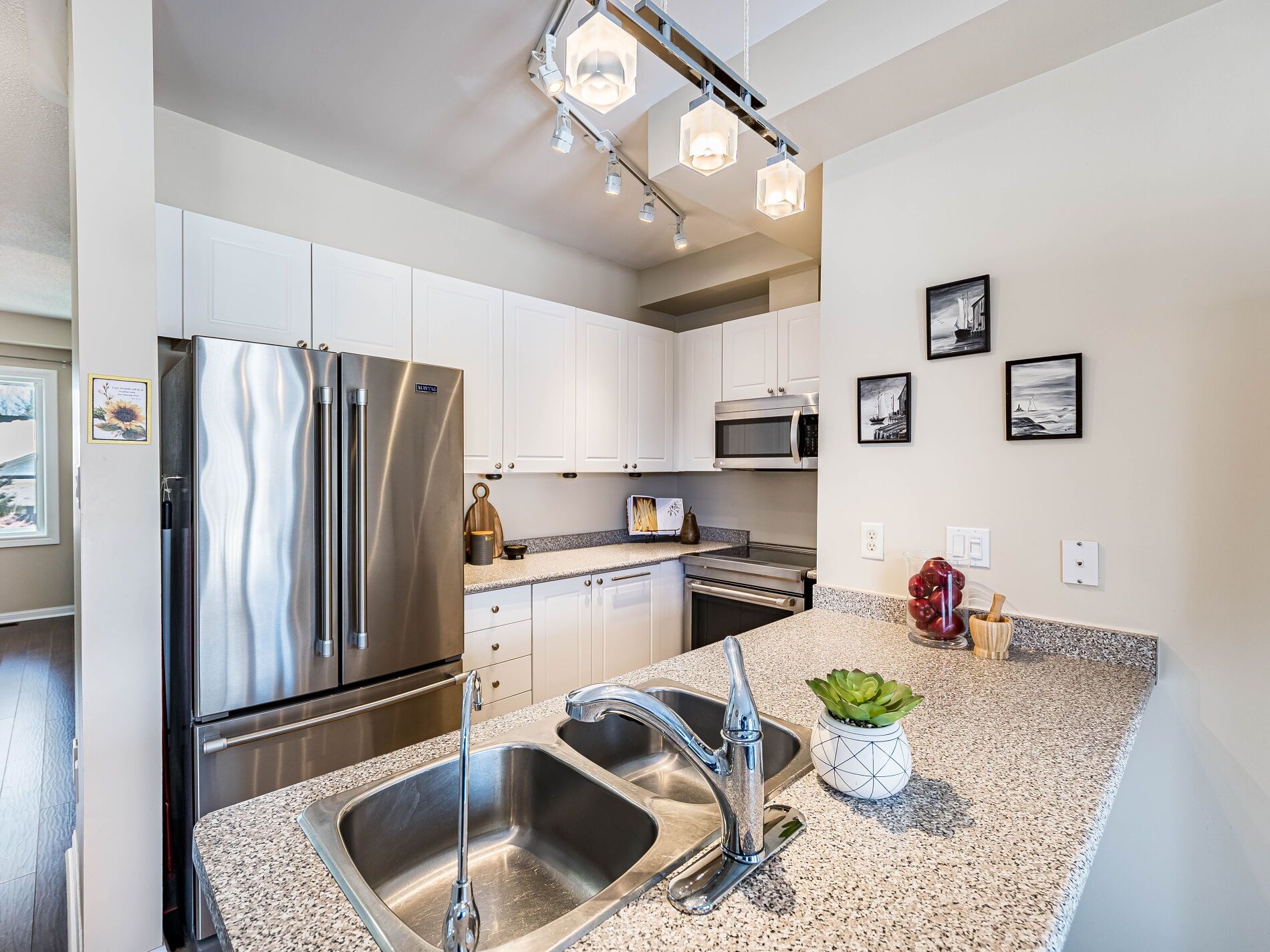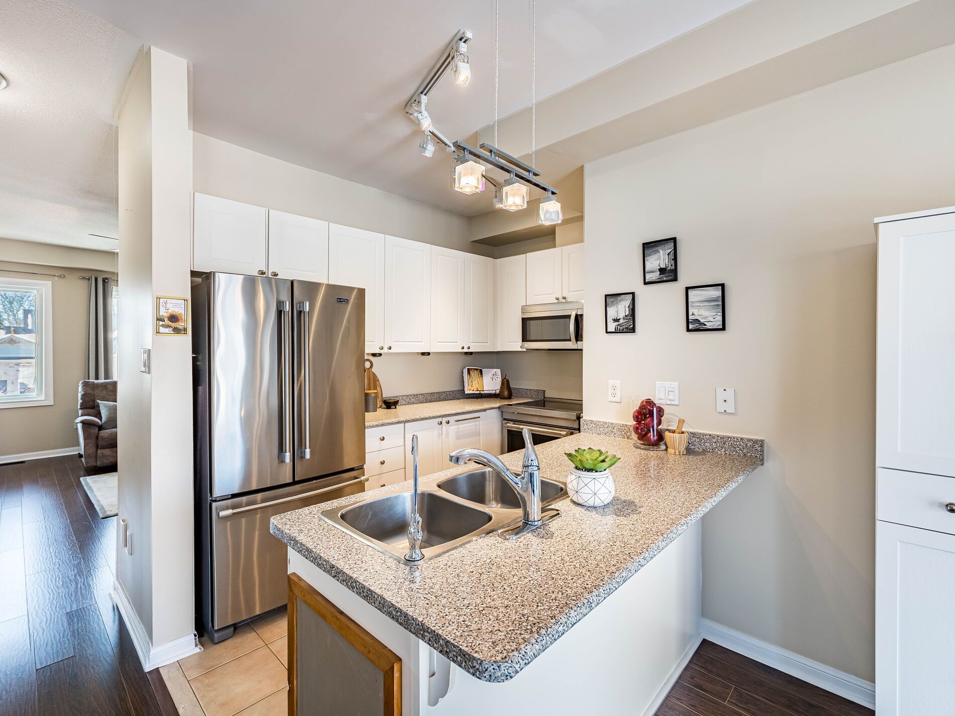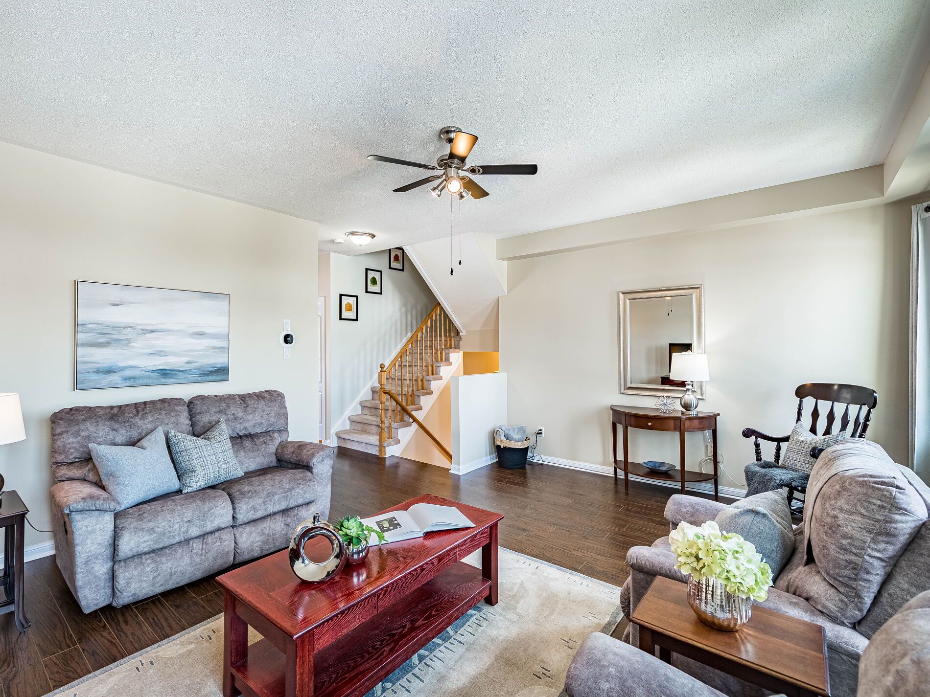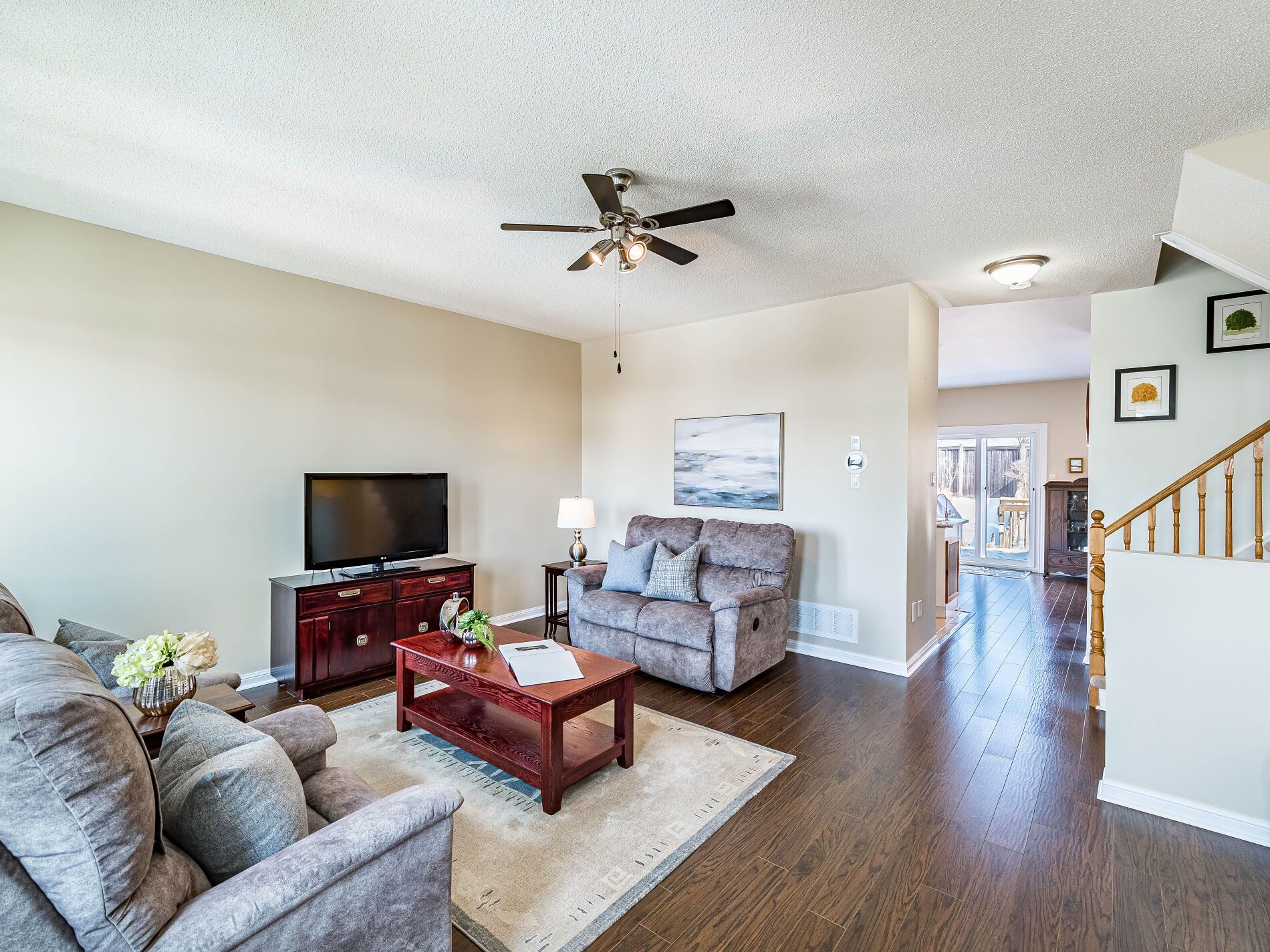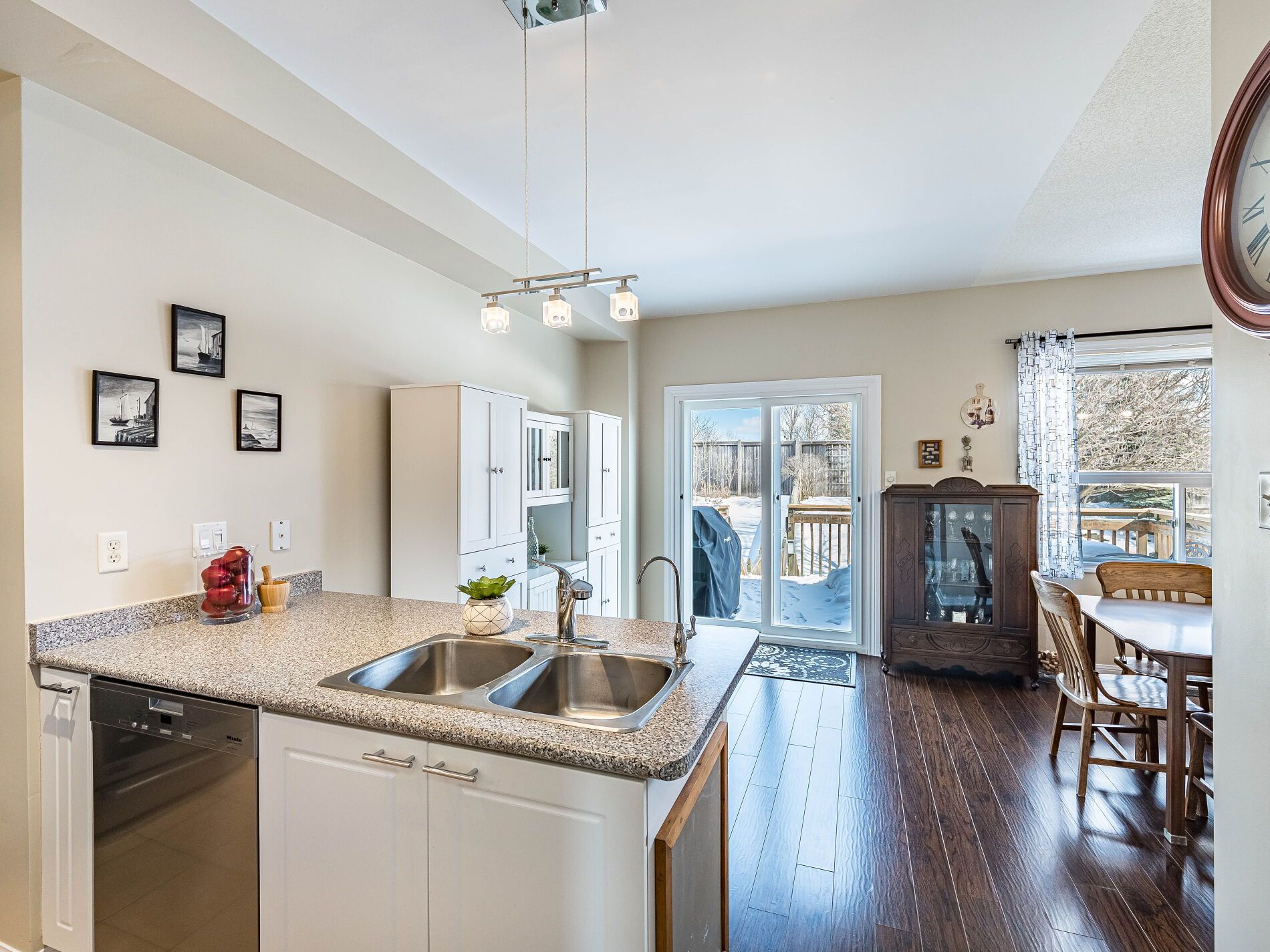 Welcome to this beautifully maintained 3-bedroom townhome in the heart of georgetown a rare opportunity featuring a 2-car garage, an exceptional find in townhome living. Thoughtfully upgraded and meticulously cared for, this home blends comfort, functionality, and modern convenience. Step inside to soaring 9-ft ceilings, durable laminate flooring, and a bright, open-concept main level designed for both everyday living and effortless entertaining. The kitchen truly stands out with soft-close cabinetry, smart storage solutions, stainless steel appliances, a premium jennair induction/convection oven, miele dishwasher, and a gas line ready for your bbq on the walkout deck. New patio doors and high-efficiency windows including several magic windows with triple-pane glass and blackout shades fill the home with natural light while creating a quiet, energy-efficient retreat. Upstairs, you'll find 3 spacious bedrooms. The primary suite offers a large closet and private 4-piece ensuite complete with a relaxing soaker tub. A semi-ensuite main bath with a tiled shower serves the additional bedrooms, providing comfort and convenience for family or guests. The versatile lower level features large windows, a finished storage room, laundry/utility area, and direct access to both the backyard and garage perfect for organized, functional living. Additional highlights include a brand-new a/c, furnace (2022), owned tankless water heater (no rental fees), culligan water purification system, water softener, central vacuum, ecobee thermostat, 220v garage outlet, belt-drive opener, and a fully fenced backyard. Located just minutes from vibrant downtown shops, restaurants, parks, trails, schools, and the go station, this home offers the perfect balance of small-town charm and commuter convenience. With rare garage space, extensive upgrades, and an unbeatable location, this is a standout opportunity you won't want to miss, book your private showing today and experience it for yourself.