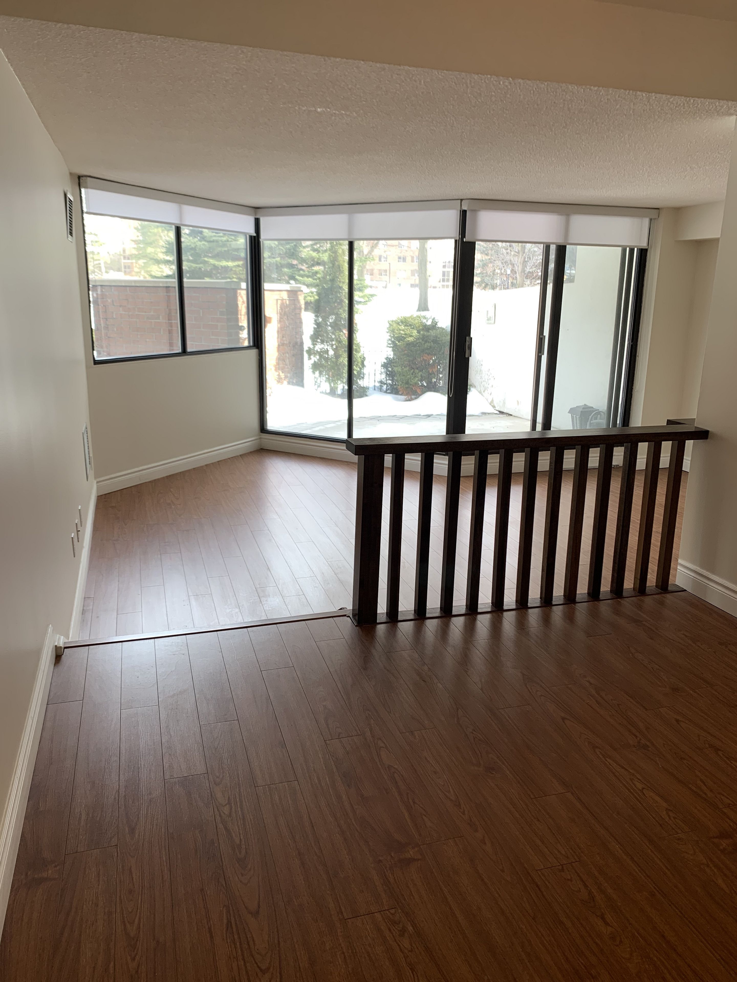 2 bed, 2 bath, rare to find and sought after ground floor unit for rent in demand richmond hill enclave of north richvale. Updated eat in kitchen with lots of cupboards, counterspace and pantry area. Large dining room overlooks the sunken living room with a walk out to a large private fenced in terrace. 2 parking spaces available and extra large locker. Steps away to public transit, yonge street shops, minutes to go train, hospital nearby. Includes stainless steels appliances. Heat/hydro/internet/tv included.