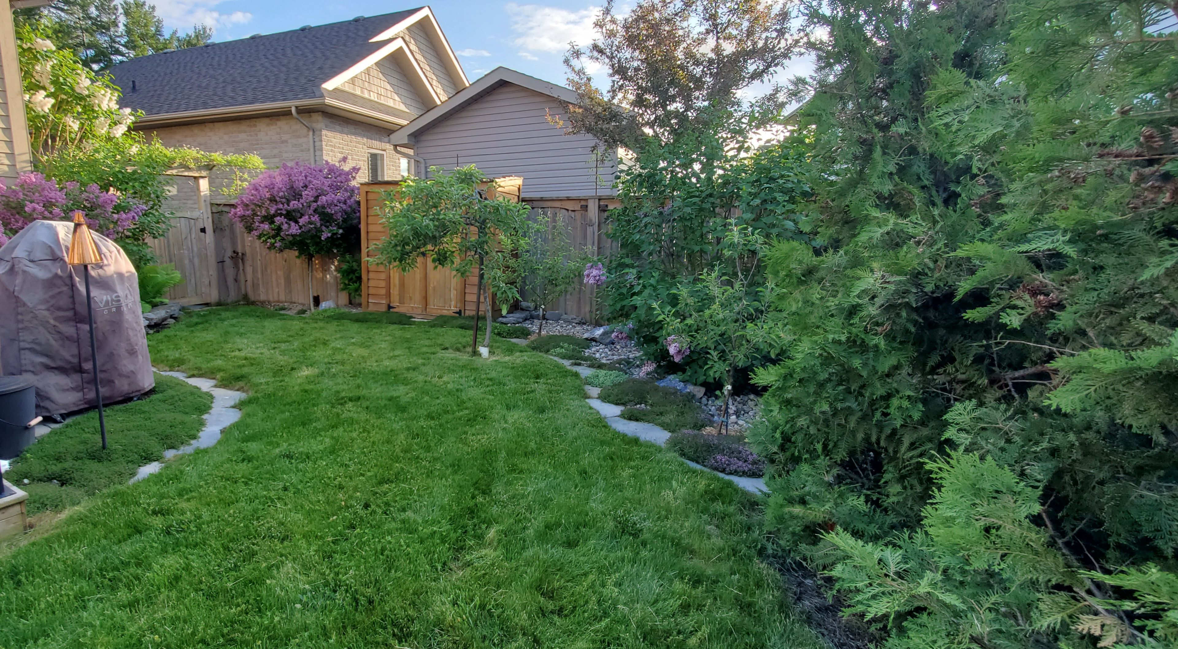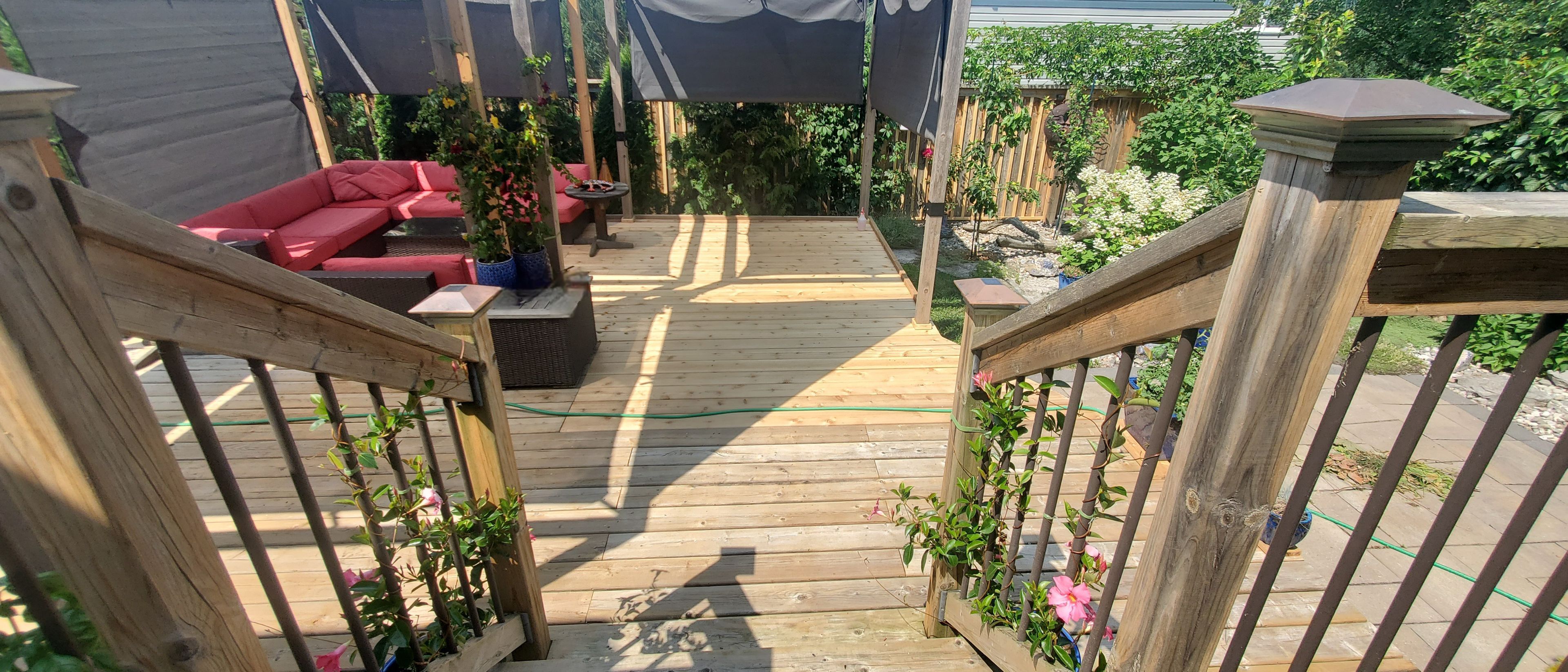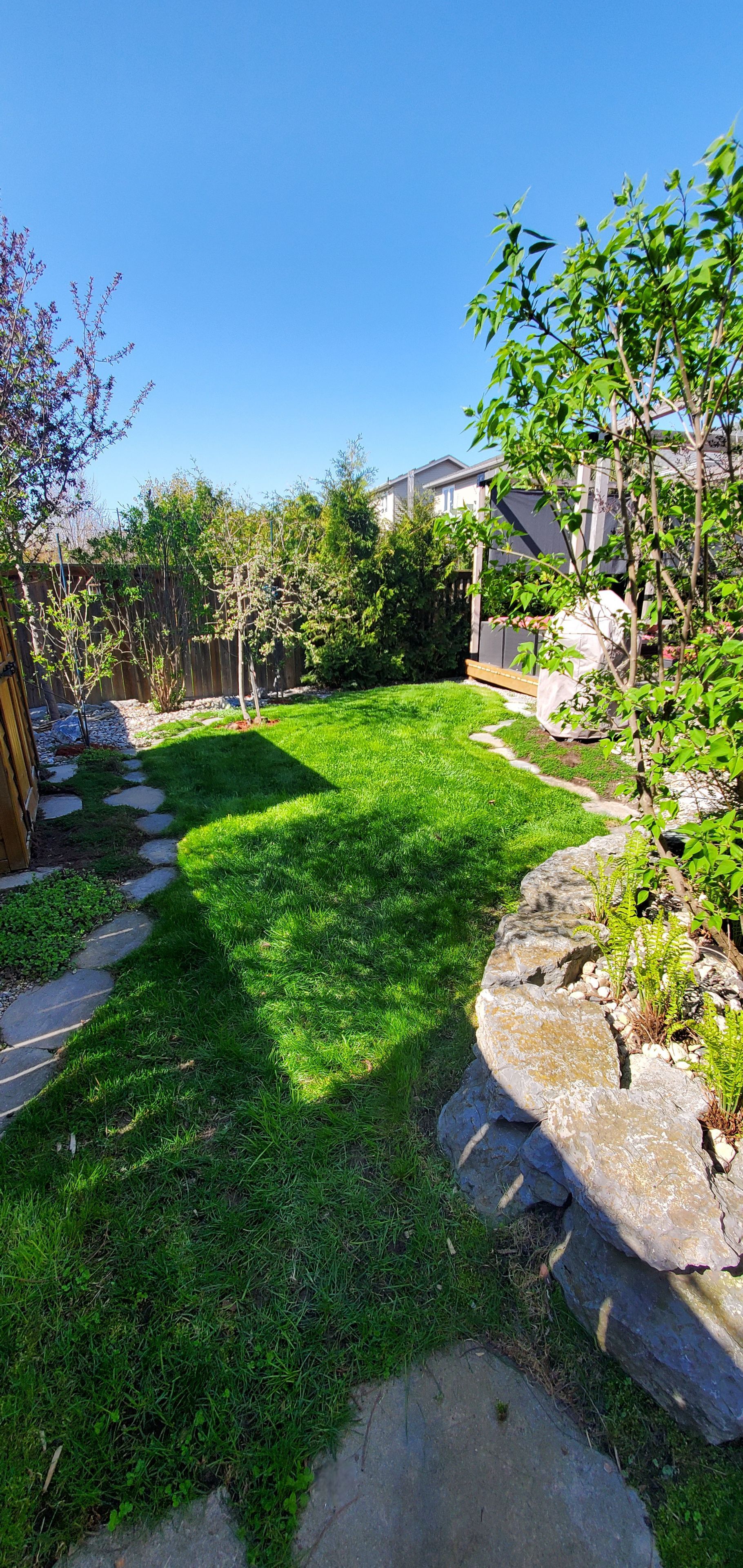 • Landscaped backyard with custom deck, perfect for outdoor relaxation.