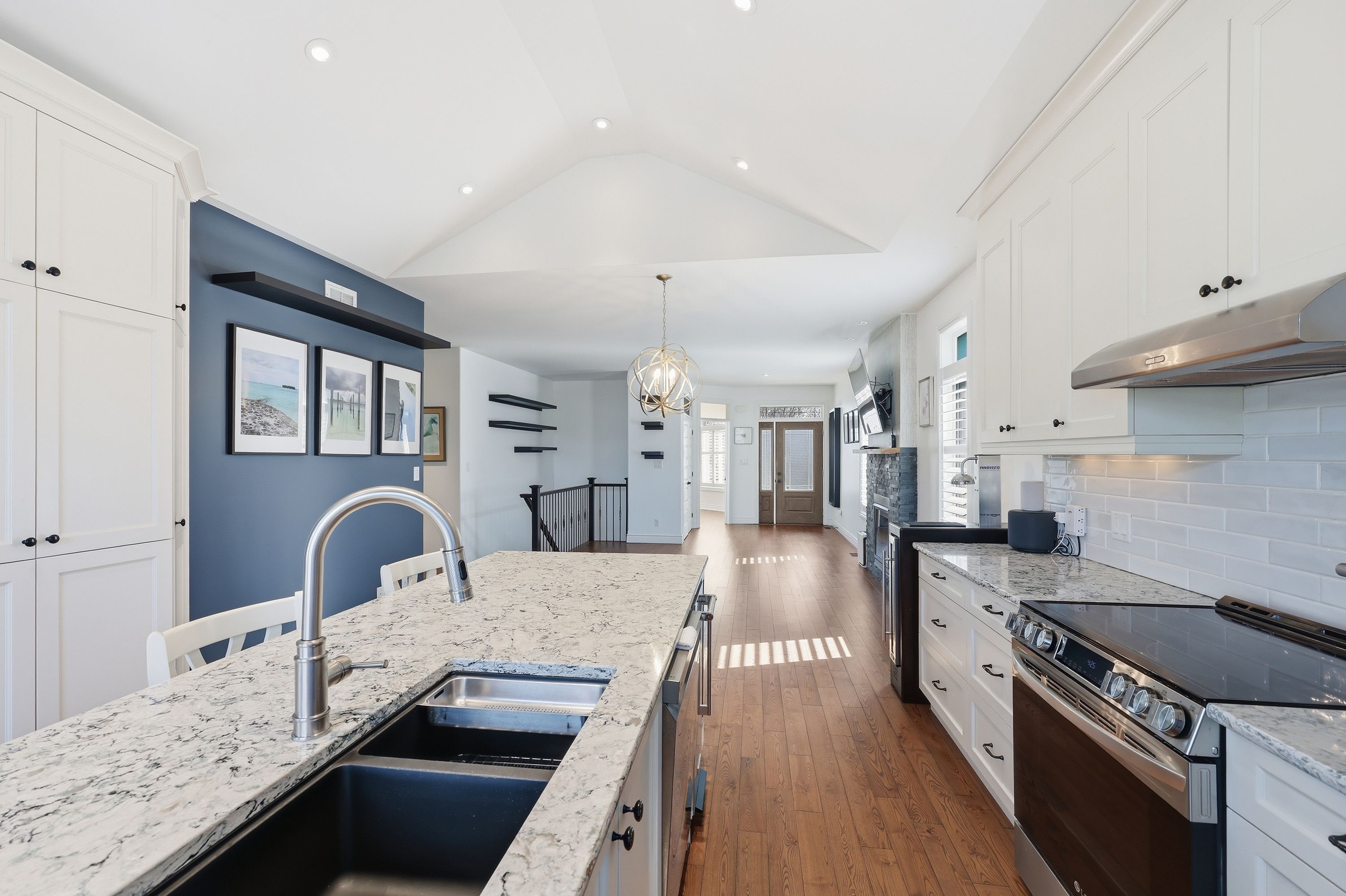 Located in the lakeside village of bath, just 15 minutes west of kingston, this well-appointed 3+2 bedroom, 3-bath raised bungalow in edgewater estates offers over 2,500 sq. Ft. Of finished living space. Enjoy close proximity to lake ontario just across the way, with views from your front step. The main level features a bright, open-concept layout with 9' ceilings, hardwood flooring, and an updated kitchen with quartz countertops, an 8-foot island, and a full-height pantry. The main floor includes three bedrooms, including a spacious primary suite with a walk-in closet and ensuite featuring a double vanity, granite countertops, a walk-in glass shower, and a soaker tub. The fully finished lower level adds two additional bedrooms, a 3-piece bath, and a large recreation space well-suited for guests, extended family, or flexible use. Accessibility has been thoughtfully integrated, including elevator access from the garage to the main level. A main floor laundry room and direct garage entry add everyday convenience. The backyard is beautifully landscaped with a custom-designed deck and patio, creating a private and well-designed outdoor space. Located near loyalist cove marina with access to lake ontario, this home is ideally positioned for boating enthusiasts, while offering a quiet waterfront setting just minutes from kingston's amenities.