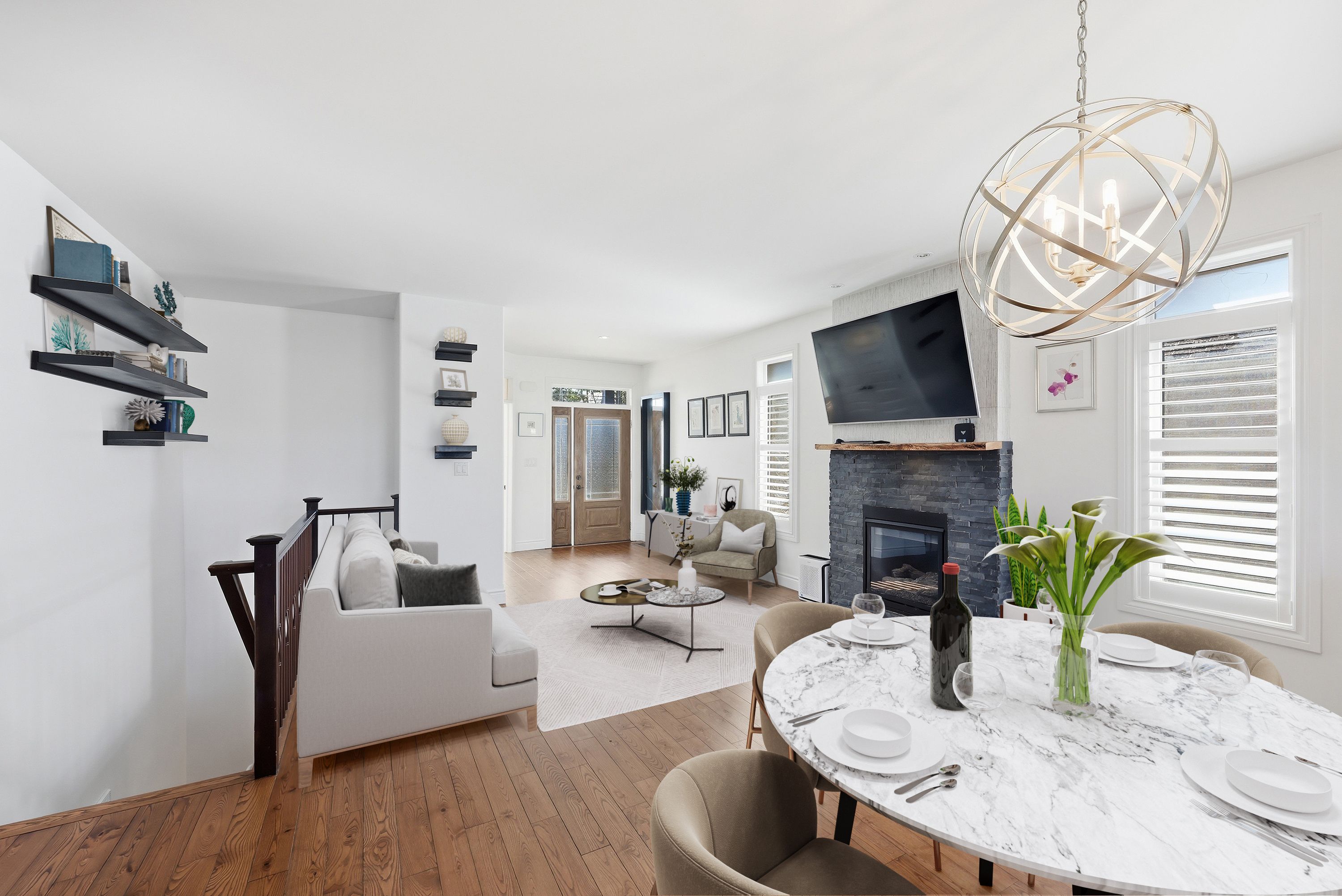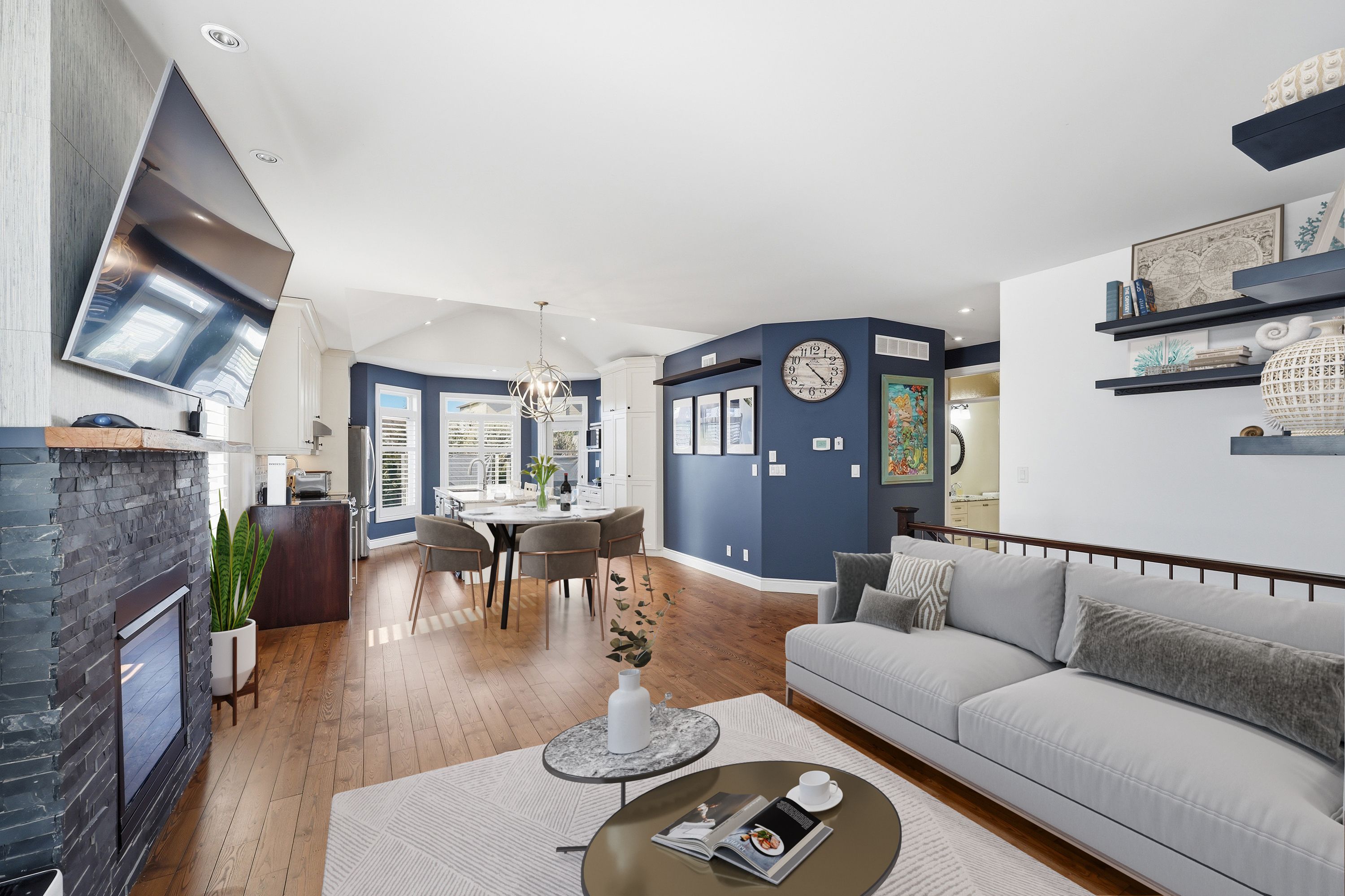 • Bright open-concept layout with updated kitchen and quartz countertops.