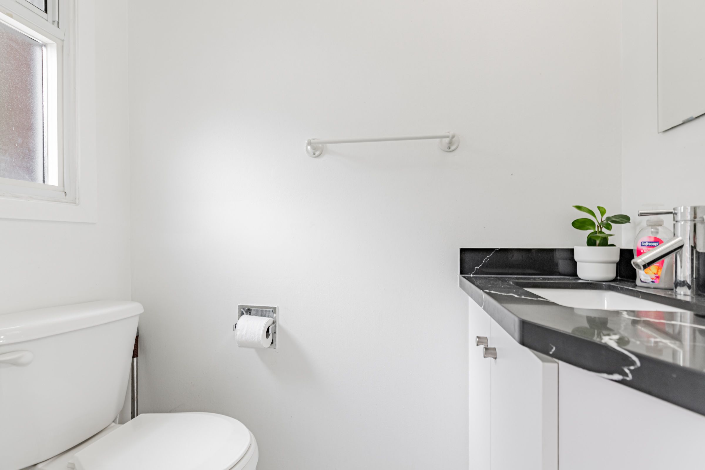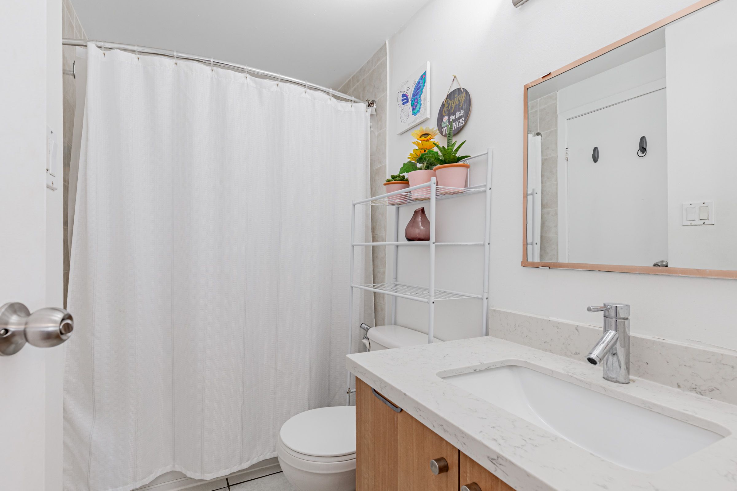• Modern kitchen with quartz countertops and stylish backsplash for easy cooking.