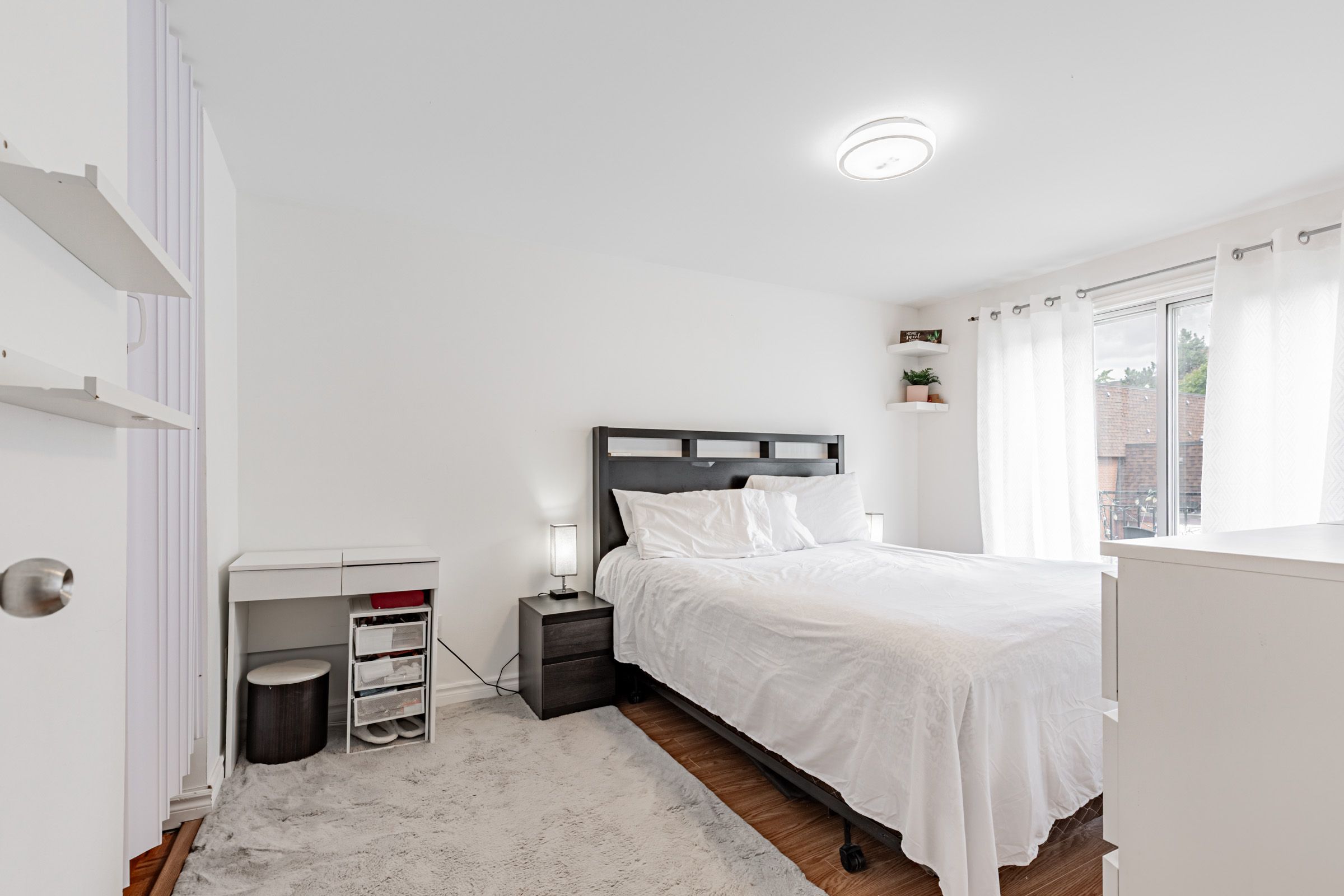 • Spacious primary bedroom with terrace access and walk-in closet for storage.