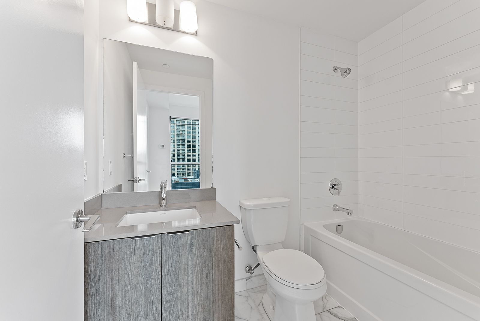 Luxurious large corner unit 2 bedrooms + 2 bathrooms with floor to ceiling windows and ceiling lights in both bedrooms, south facing and west facing. Large open concept den combined with dining/living. Ensuite laundry, primary bedroom w/ensuite bath, walk-in closet. Large balcony. Prime location, steps to ttc, street car. Close to banks and shopping, lake and waterfront, library, cn tower, a short walk to the rogers centre, air canada centre. Walking distance to a school and daycares, parks and canoe landing community centre. One parking and one locker included