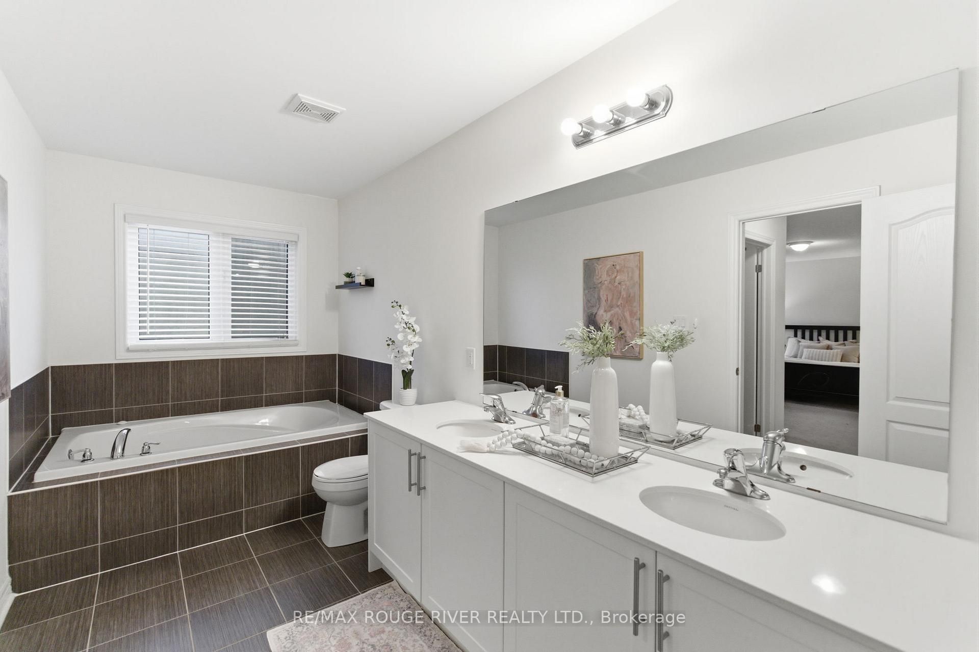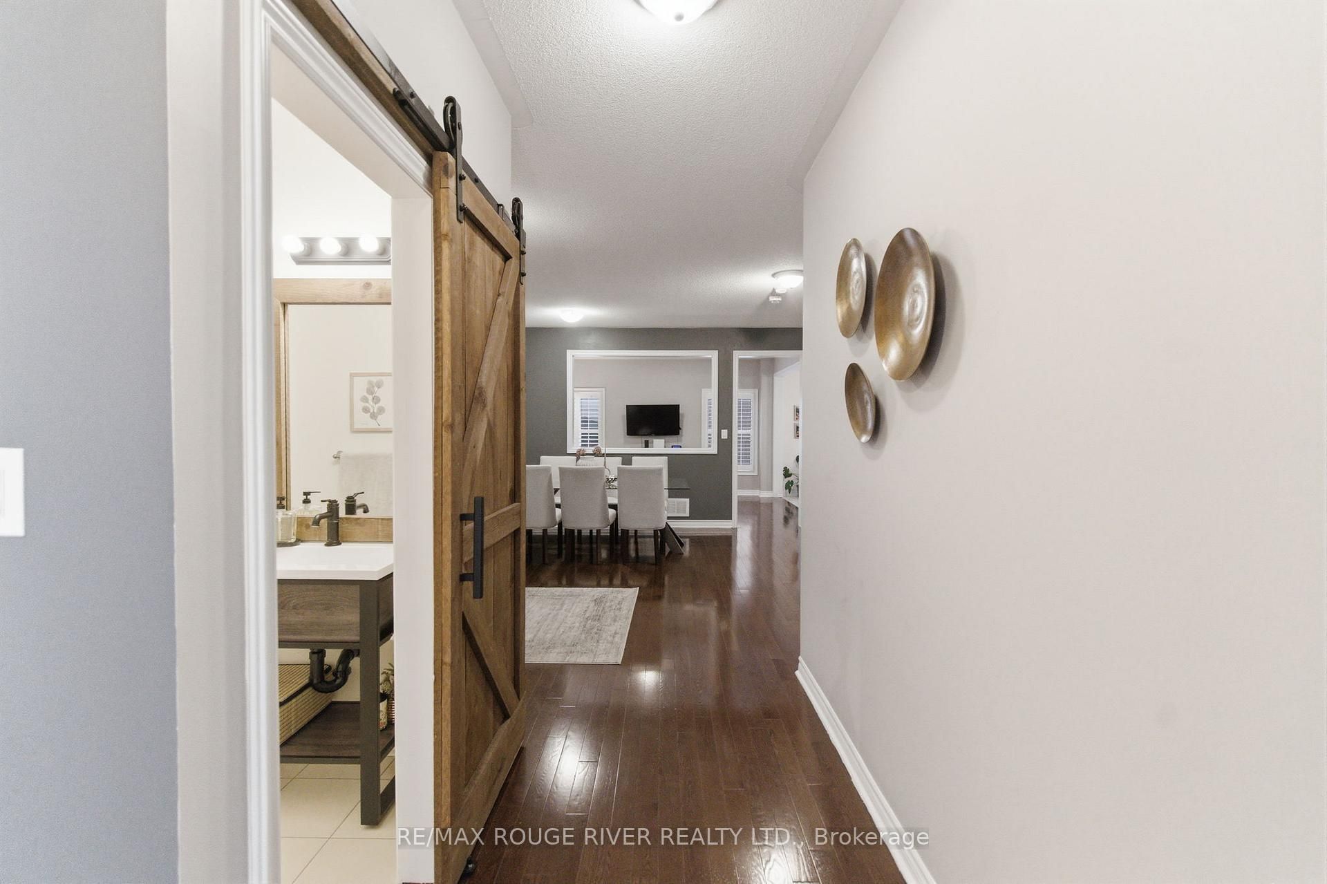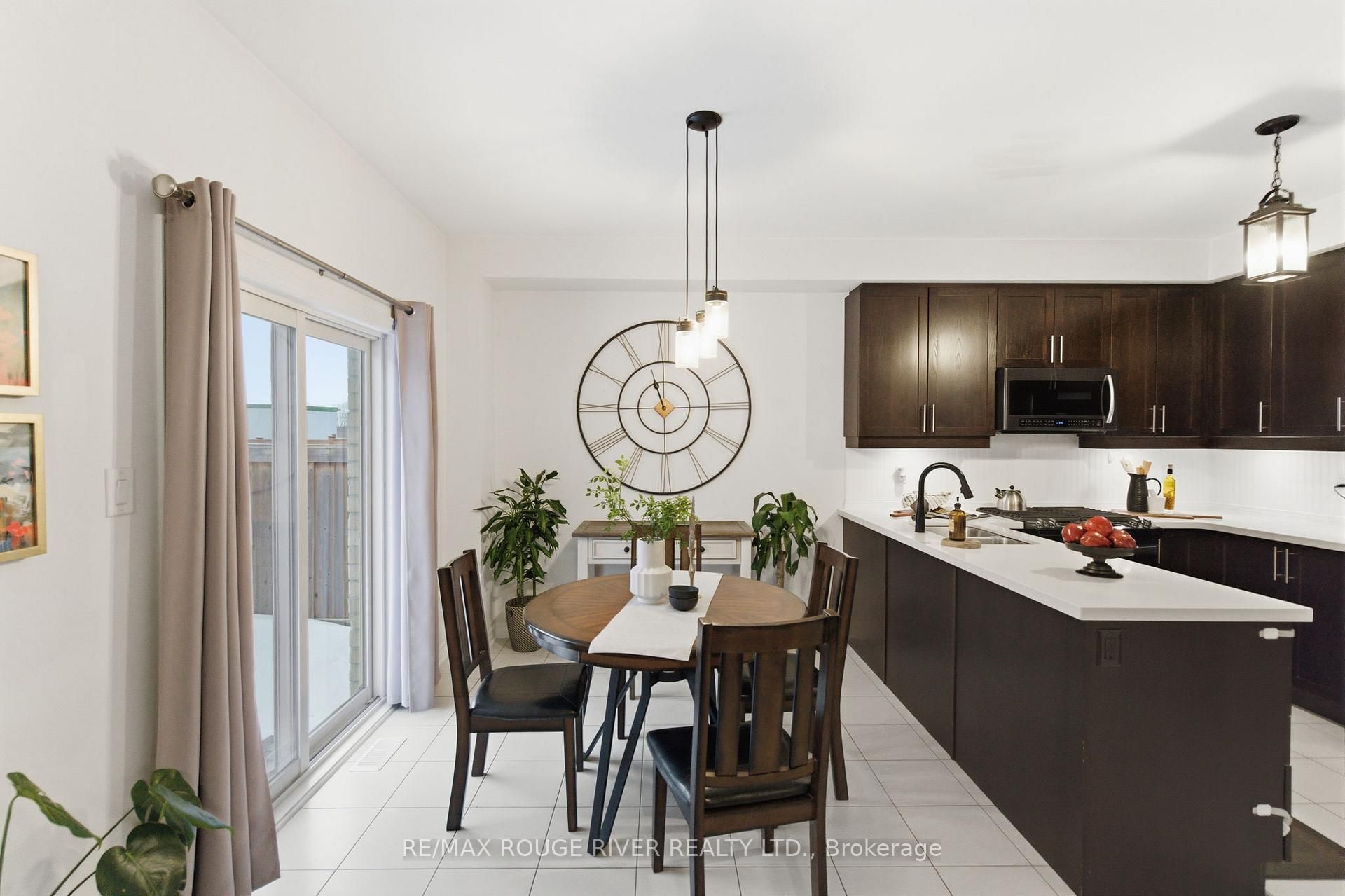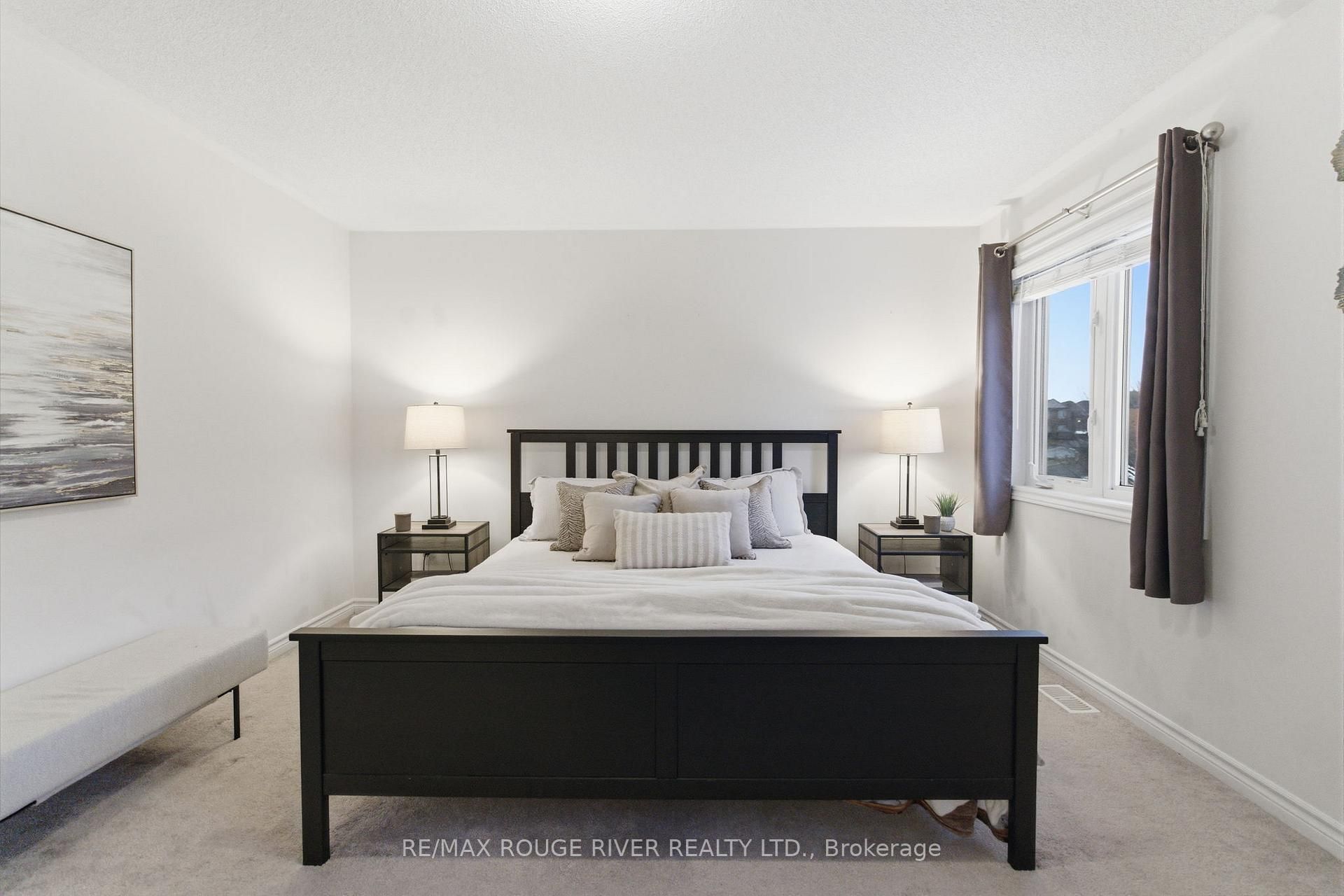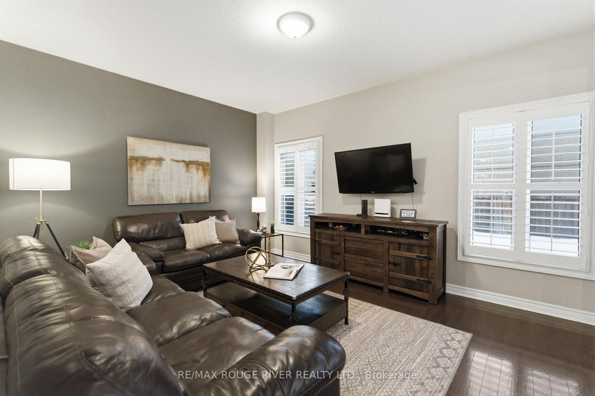 Step into this beautifully designed open-concept family home, built in 2016 by preston homes. The main floor boasts 9-foot ceilings, hardwood and ceramic flooring, and a bright, inviting living room overlooking the backyard, complete with california shutters. Adjacent is the formal dining room with elegant hardwood floors and ample natural light, flowing seamlessly into the kitchen and breakfast area. The kitchen features quartz countertops, black samsung stainless steel appliances, and a breakfast space with walkout access to the private backyard. A convenient main floor laundry adds to the practicality of this level. Upstairs, the primary bedroom offers a luxurious 5-piece ensuite and his-and-hers walk-in closets. Three additional bedrooms provide plenty of space for family and guests, each with broadloom flooring and ample closet space. The partially finished basement offers a versatile recreation area, pot lighting, windows for natural light, and rough-ins for a kitchenette and 3-piece bathroom, along with a cold room for added storage. Outside, the backyard is private and family-friendly, backing onto dr. G. J. Macgillivray public school, offering peace of mind and convenience. The property features professionally landscaped front, back, and side yards, creating an inviting outdoor space for play, relaxation, and entertaining. Ideally located, this home offers easy access to durham oshawa go station and courtice go bus stop for effortless commuting. Recreation is just steps away, with south courtice arena within walking distance and clarington public library only a short drive. With every detail carefully considered, this home perfectly balances style, comfort, and practicality for modern family living.