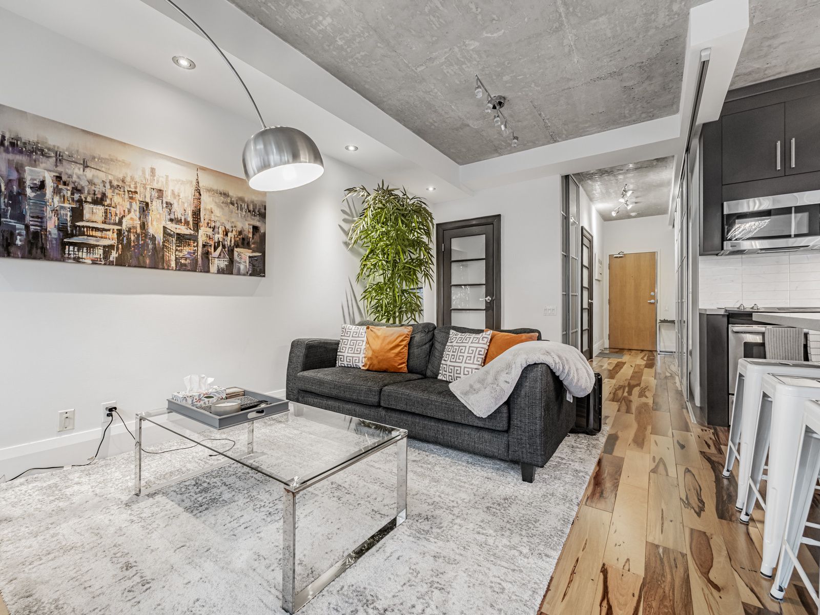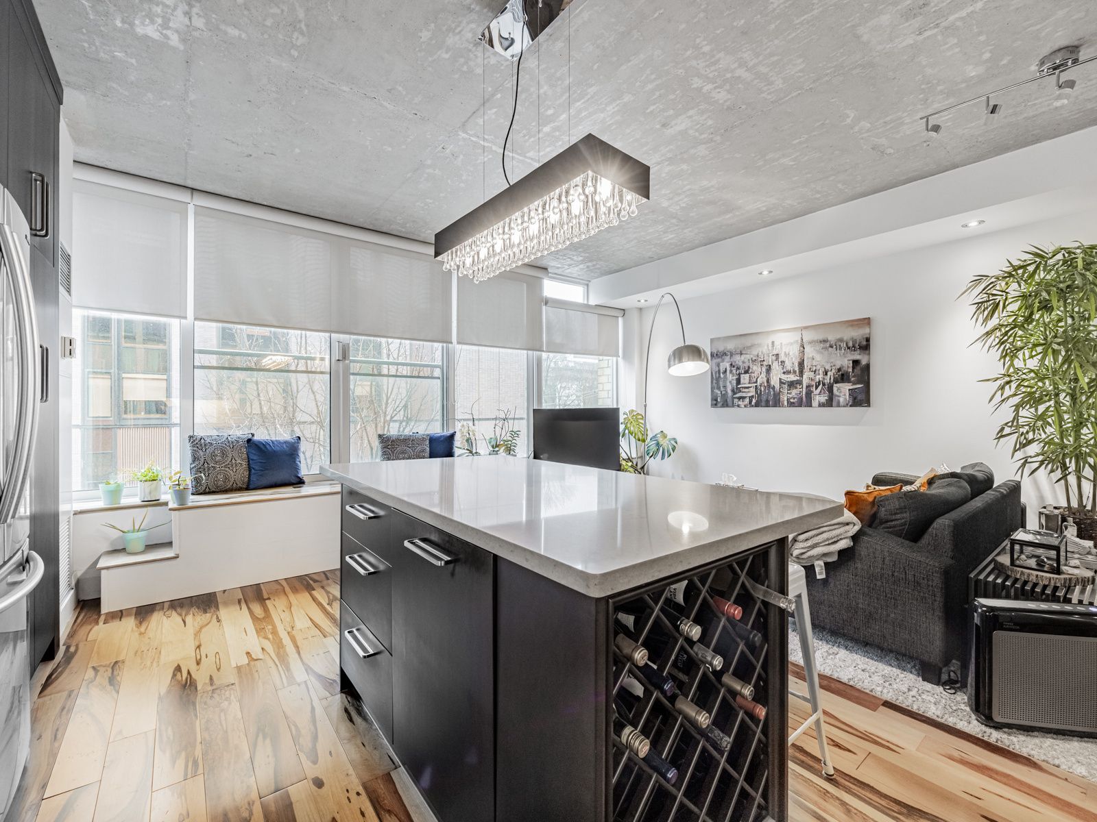 Right in the heart of the fashion district, this fully renovated condo blends style, function,and downtown energy. The kitchen is a show stopper complete with a full pantry, built-in winerack, upgraded backsplash, and tons of smart storage. The oversized island is made forcooking, gathering, and good conversation. Natural light fills the open-concept living space,where you can catch a glimpse of the iconic cn tower, a daily reminder that you're right inthe heart of it all. Hardwood floors add warmth and durability throughout. The bedroom easilyfits a king size bed and features a sleek custom closet to keep things effortlessly organized. And location? You're right beside the buzz of the waterworks food hall and the brand new,design-forward ace hotel. With top restaurants, cafés, shops, and nightlife all around you,downtown living doesn't get better than this.