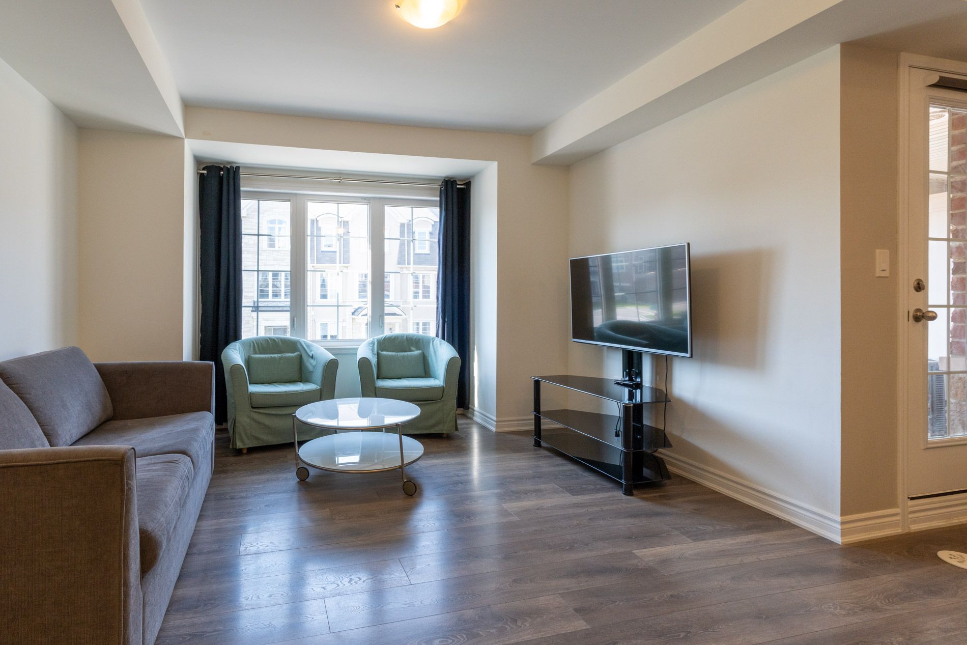Stunning & sun-filled 3-br townhome in high-demand richmond green! This modern home features a bright, open-concept layout w/ south exposure & abundant natural light. Upgraded chef's kitchen boasts quartz counters & premium finishes. Elegant hardwood floors, metal pickets & smooth ceilings throughout main. Master retreat features a glass shower ensuite. Ground floor home office-perfect for remote work. Extra-long driveway (no sidewalk!). Fully furnished & move-in ready. Steps to top-rated richmond green s. S., costco, & parks. Quick access to hwy 404 & go station. A must see!