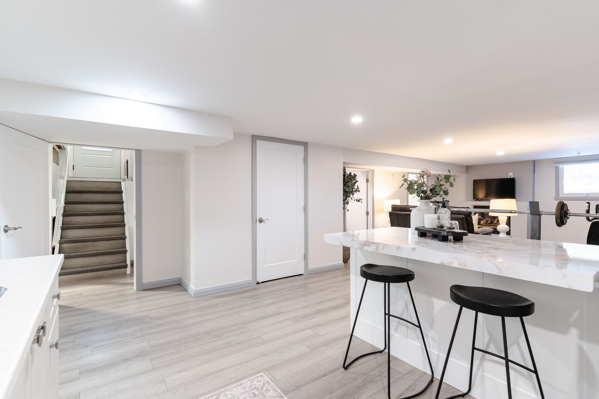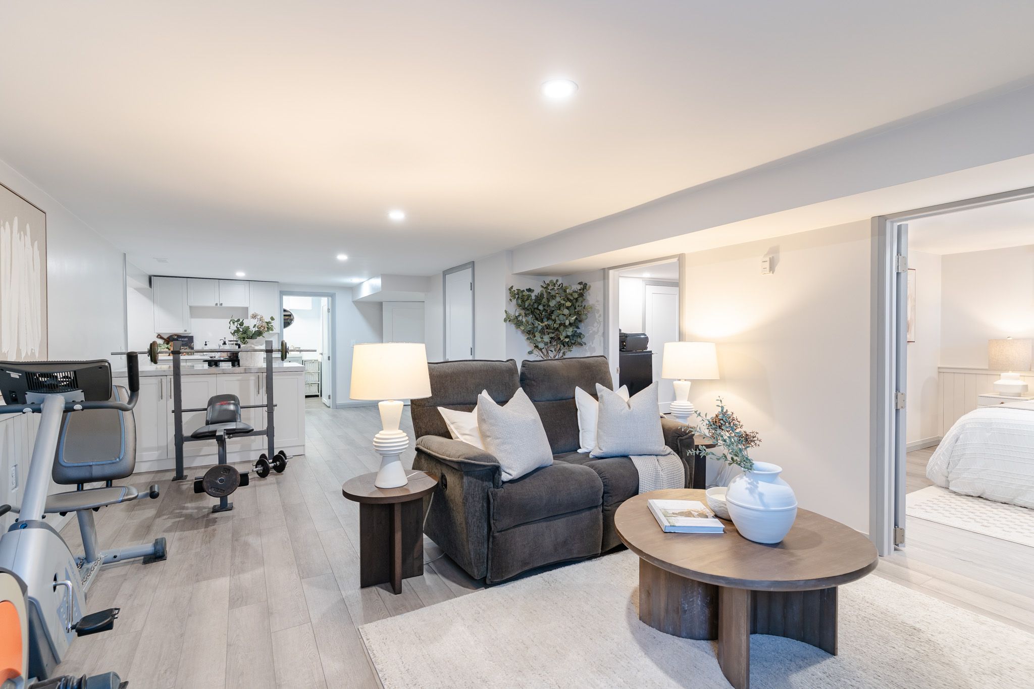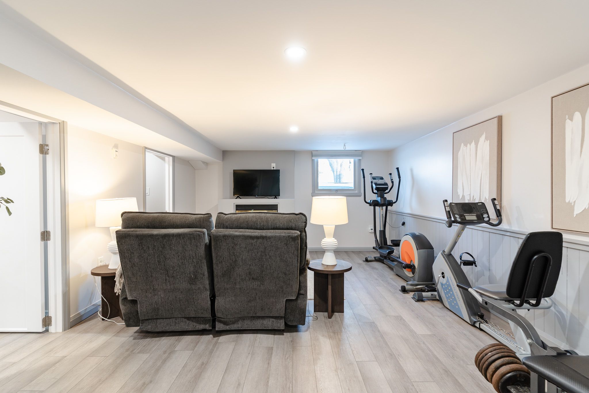 • Finished basement with separate kitchen and recreation area for extra living space.