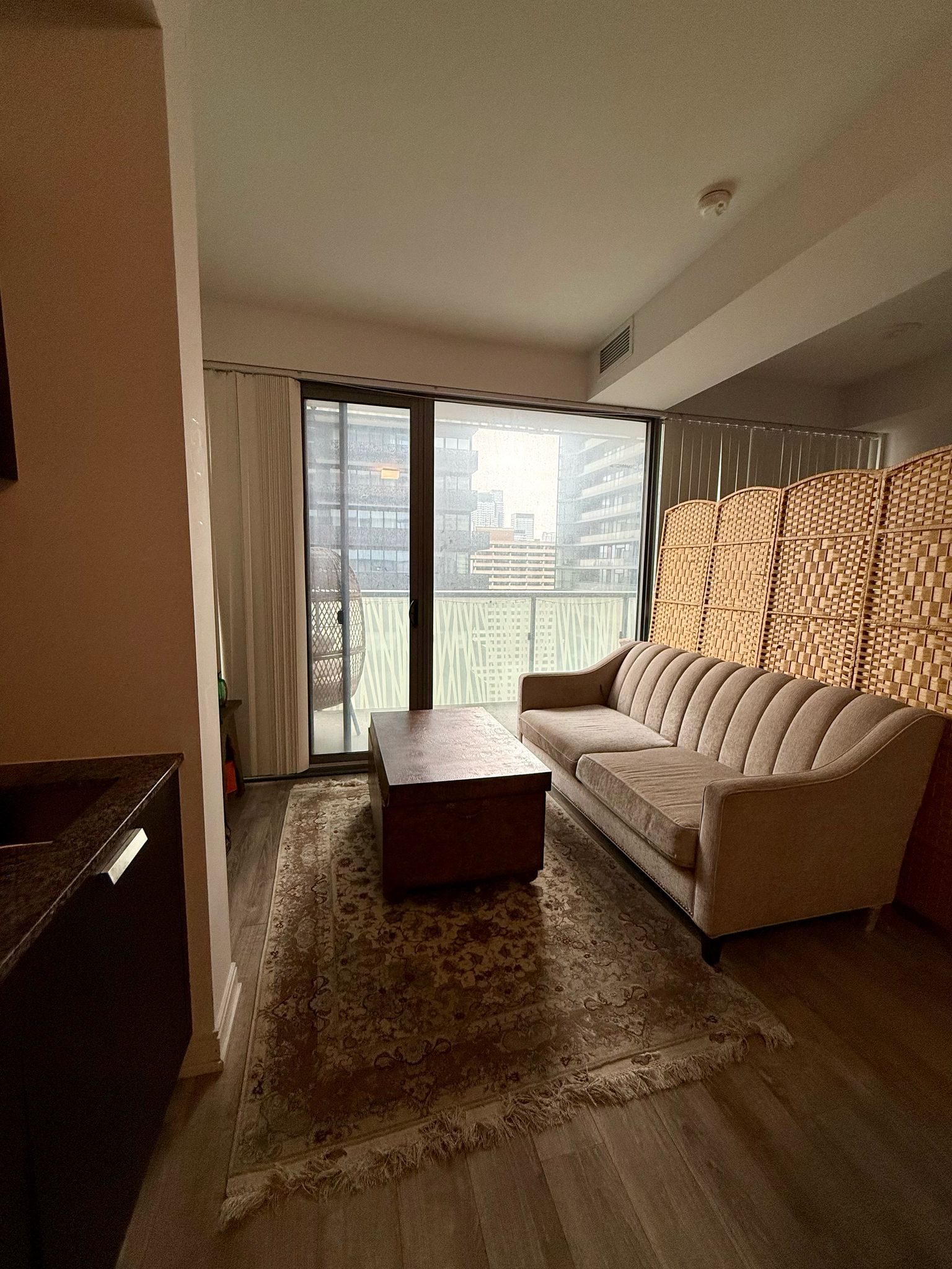 • Bright and spacious open-concept studio with floor-to-ceiling windows.