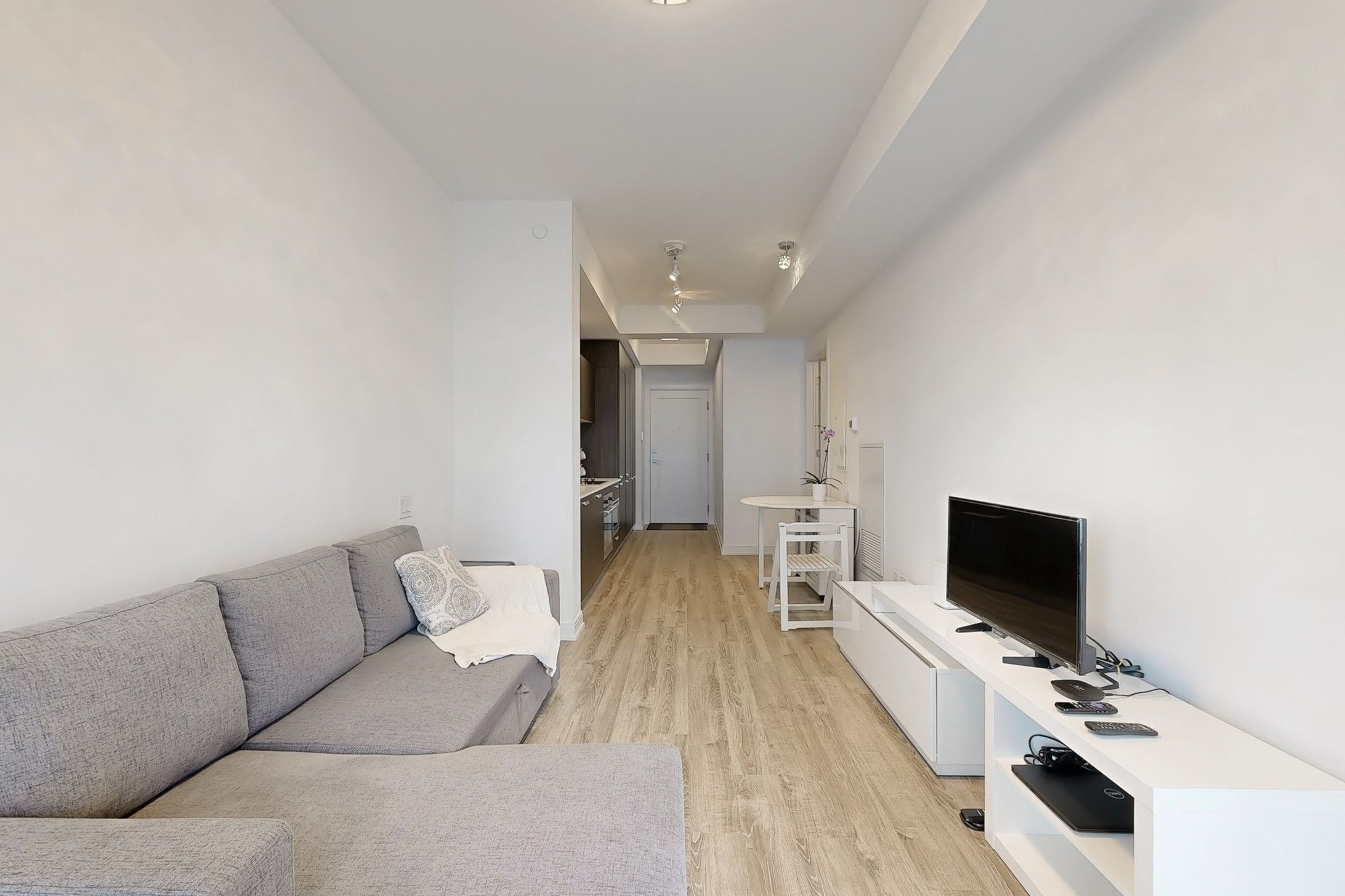 • Open-concept layout with a modern kitchen and built-in appliances.