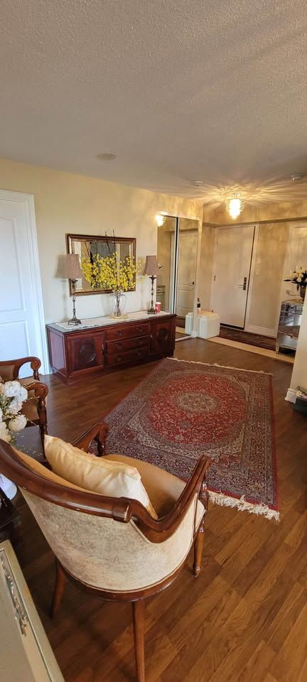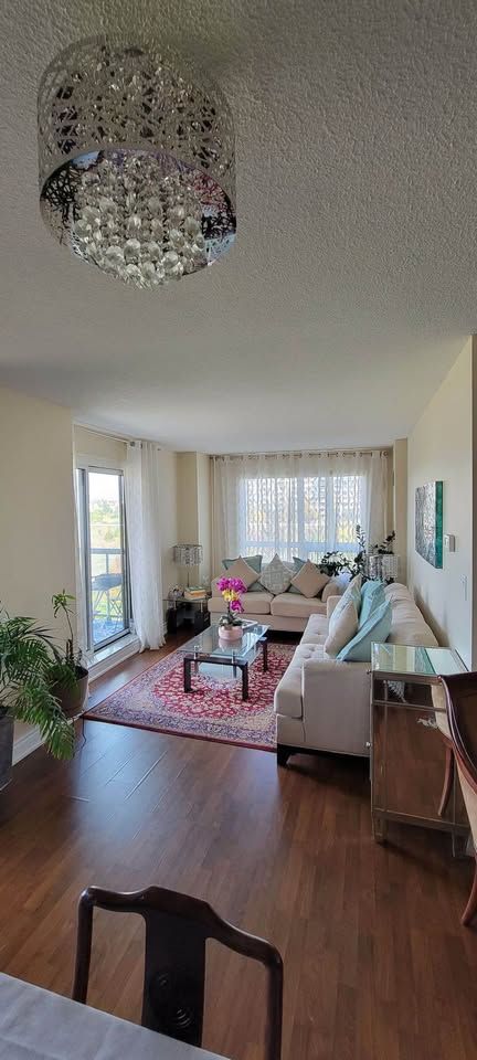 Sunfilled corner suite with unobstructed north west views. Versitile open concept floor plan with plenty of living space ideal for gatherings and entertaining. 2 generous size split brms layout with abundant natural sunlight, 2 baths, private balcony off living room, one parking. Extensive amenities with fully equipped gym, party rm, meeting rm, multy-i-media rm, indoor pool,sauna, steam rm, rooftop terrace & bbq., card rm, internet rm, 24 hrs security, underground parking, visitor parking, guest suites. The building is conveniently situated close to hwy 7, 407, 404, schools, first markham place, york university (markham campus), restaurants, grocery stores, shoppers drugmart, banks, go station and viva. Option to lease without furniture is possible.