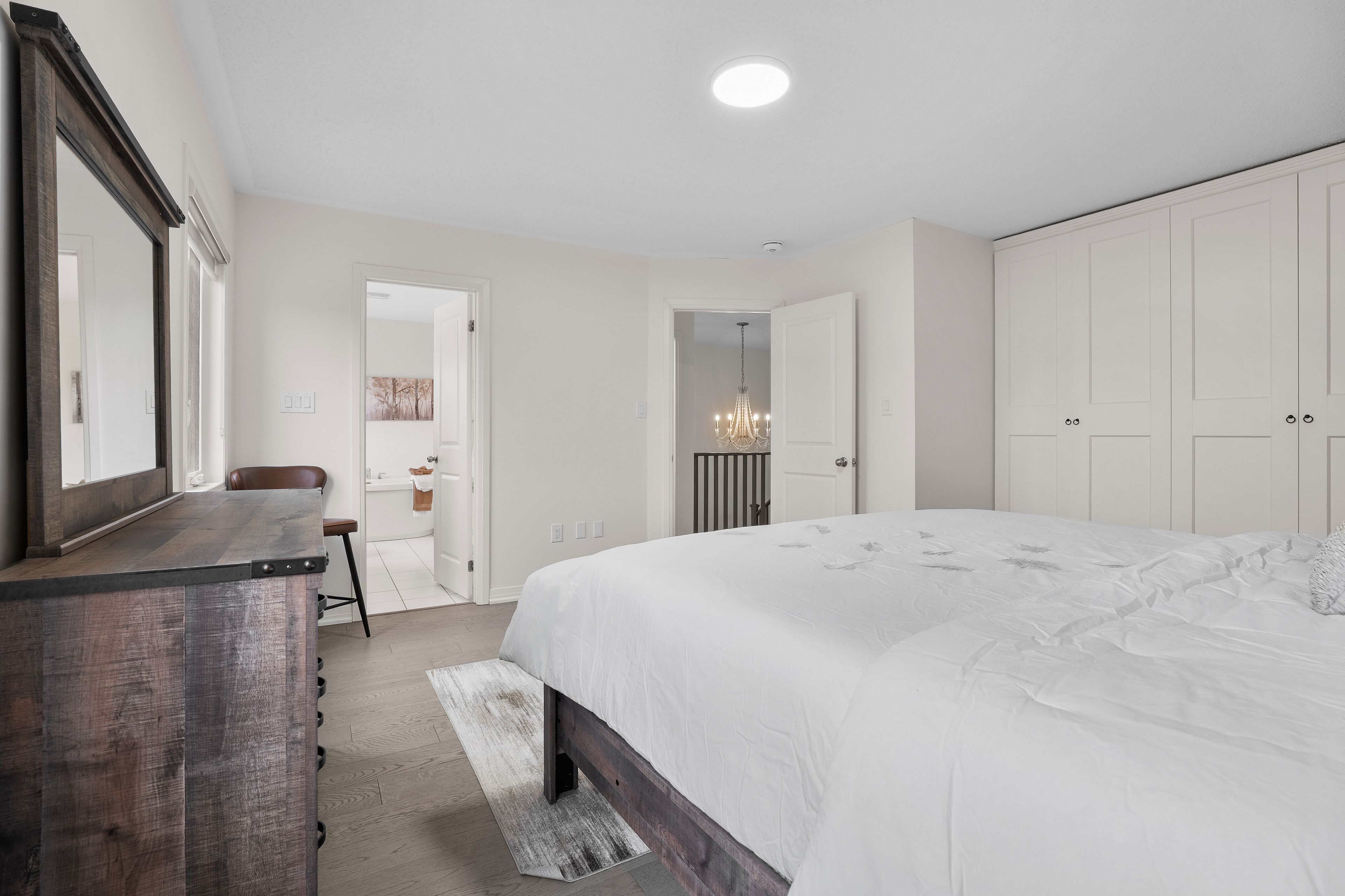 • Master bedroom with a custom closet and spa-like ensuite.