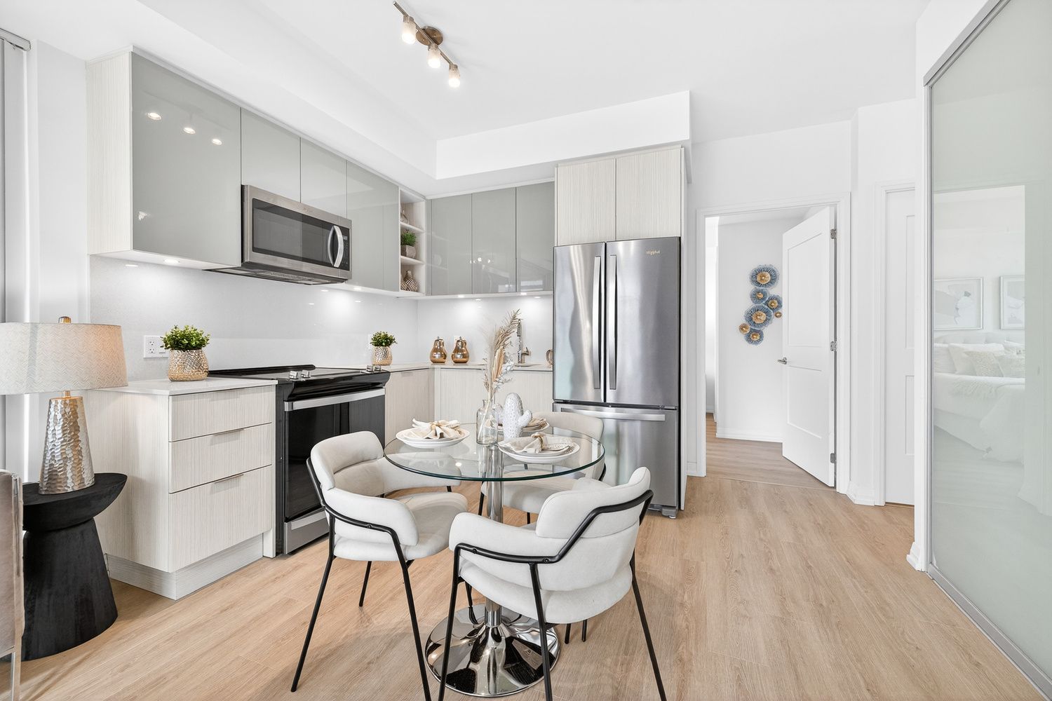 • Modern kitchen features premium appliances and sleek cabinetry for functionality.