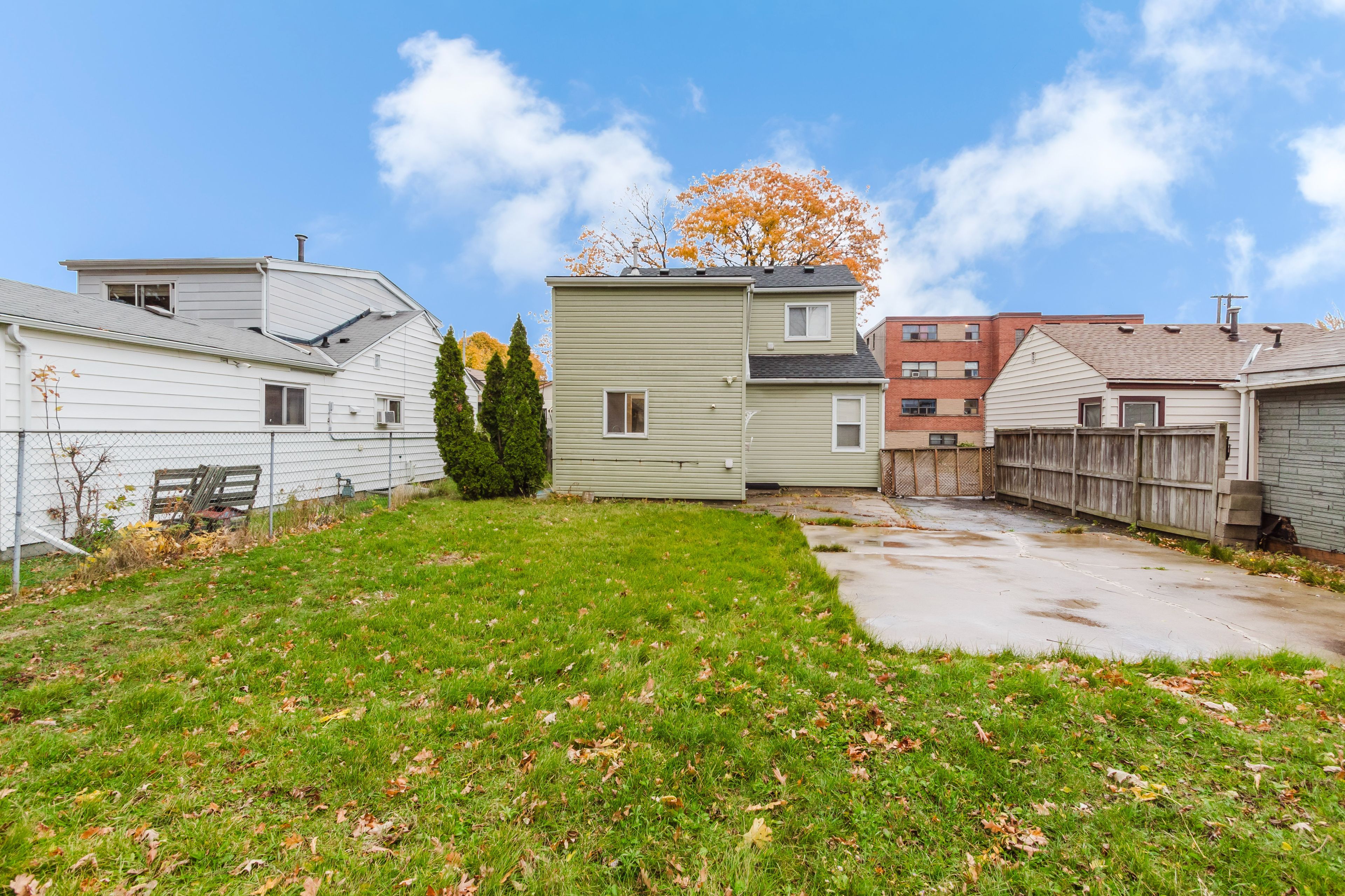 • Fully fenced backyard with gated parking, patio, and green space.