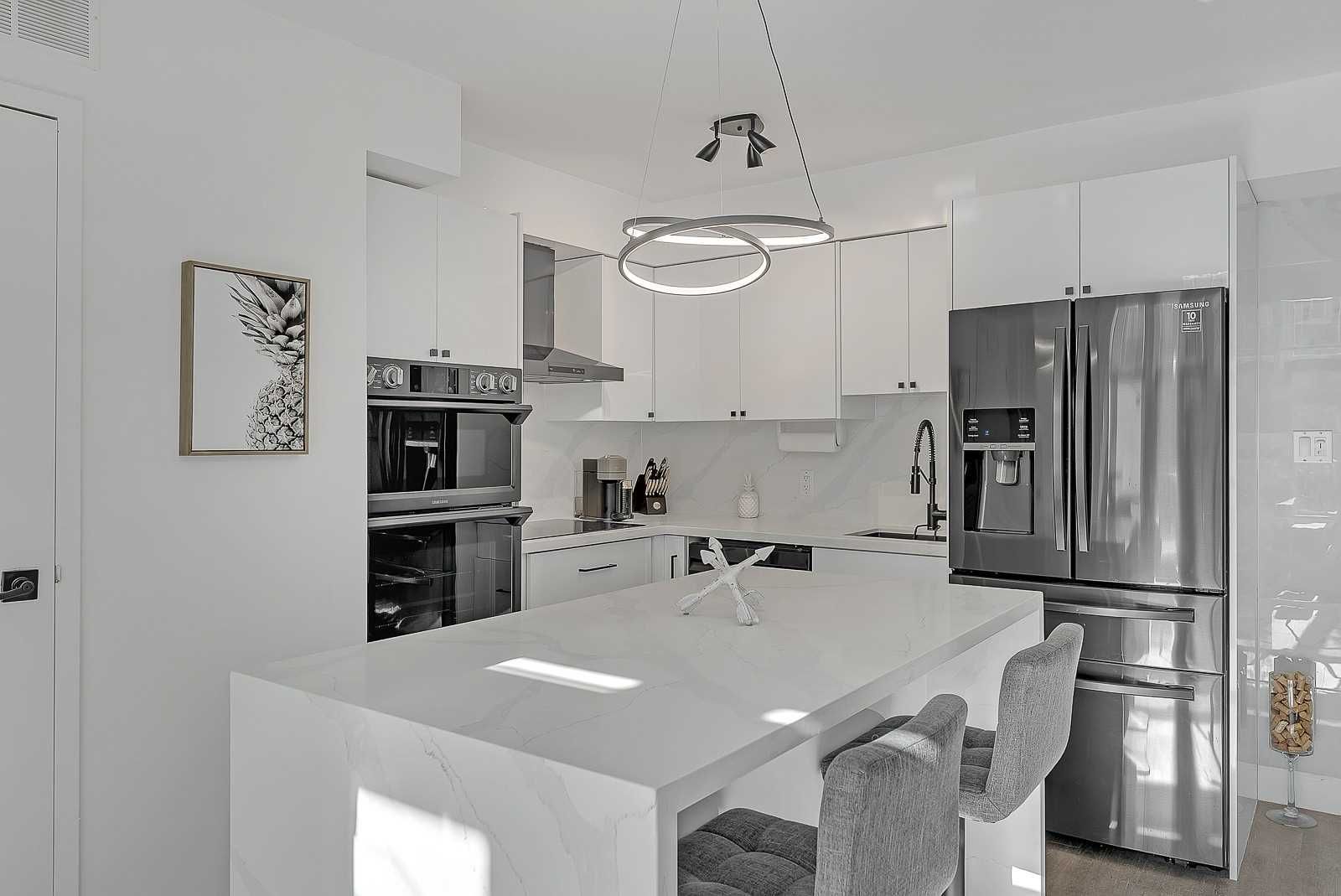 Step into #1111 - 50 east liberty st, where urban chic meets the vibrant lifestyle in the heart of liberty village. This two-level loft-style townhome is a masterpiece of modern design and functionality, bursting with light, lounging and wow-factor finishes. A private entrance and sun-splashed terrace invite you to spice up your weekends with bbqs and gatherings under the city skys. Inside, sleek floating stairs and glass railings guide you through an open-concept living area that's anchored by a granite waterfall island kitchen ready for everything from coffee runs to cocktail parties. Upstairs, a full personal retreat with a stylish den prepped for productivity, you've got the perfect work-from-home setup. The luxe primary suite steps up the drama with a double-sink ensuite, rain-shower with built-in seating, heated floors and a walk-in layout that feels like a spa escape. And don't miss the extra flair: statement lighting, smart home features, blackout blinds, under the stair storage and top-tier finishes. All this is just steps from liberty villages electric vibe: cafés, restaurants, gyms, parks, waterfront and bike paths are at your doorstep. Urban living just got an upgrade! Parking & locker included.