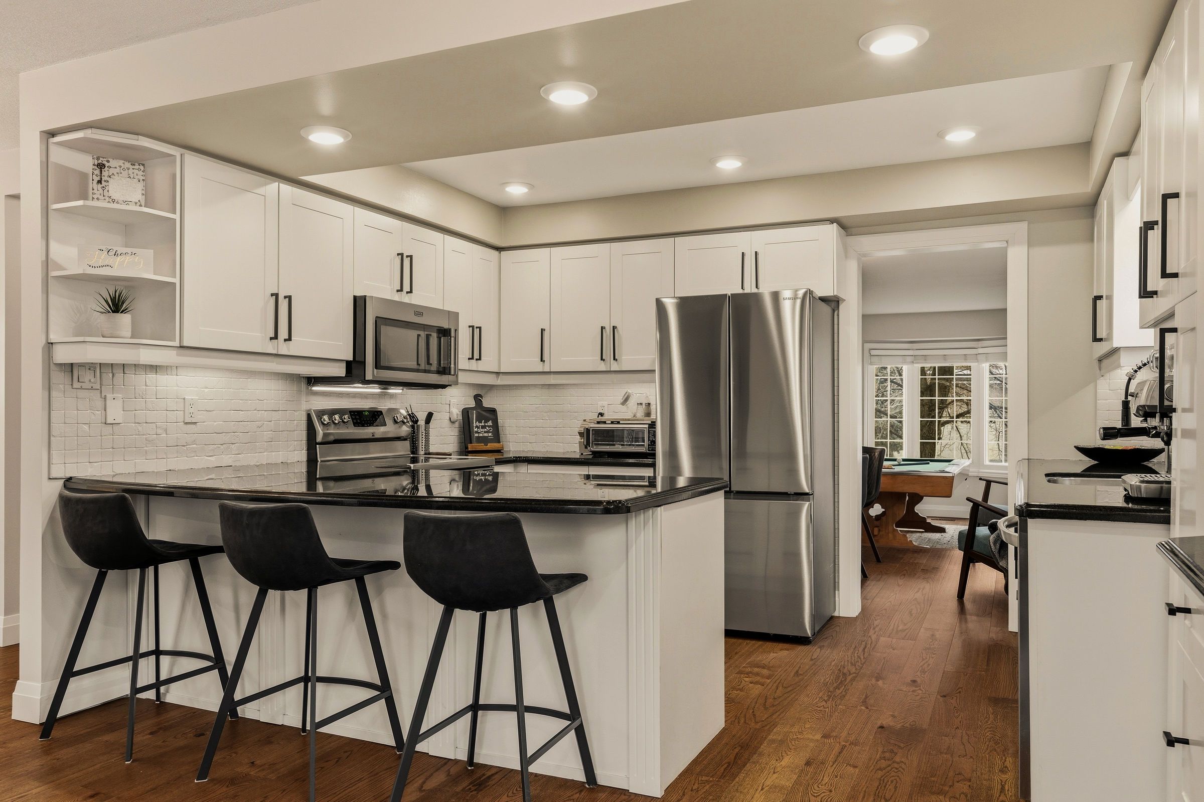 Come home to 50 edgewater dr in stoney creek. Welcome to lakeside luxury in this renovated 4-bedroom executive end-unit townhouse. Boasting over 2,500 sq. Ft. Of modern elegance, this freehold gem features a designer kitchen with white cabinetry, black granite counters, and a social island perfect for entertaining. The open-concept family room, anchored by a cozy gas fireplace, flows seamlessly to a large private patio. Enjoy the primary retreat on the second level, both with a private ensuite and balcony. The third level offers two more bedrooms and laundry. Just steps from the newport yacht club and great lake waterfront trails, this home offers a unique lifestyle with the ability to park your boat around the corner. Experience the perfect blend of tranquillity and convenience in this stunning lakeside oasis.