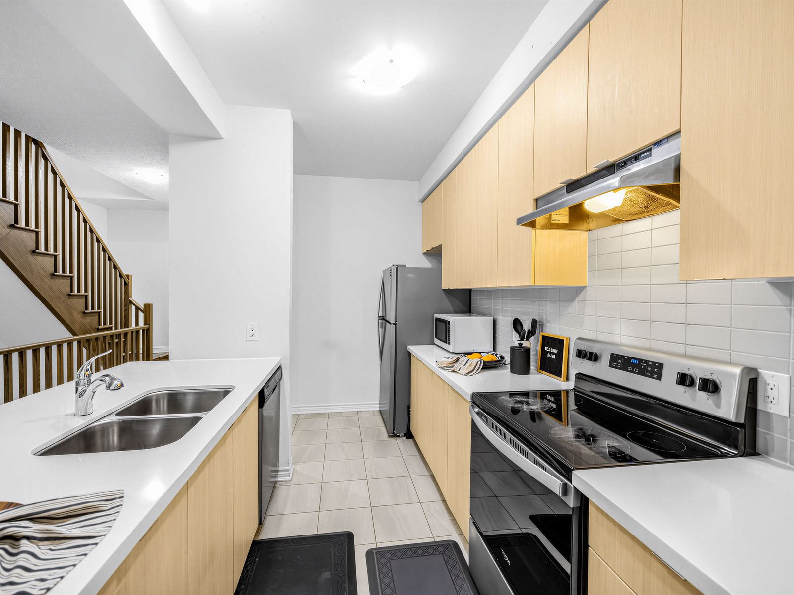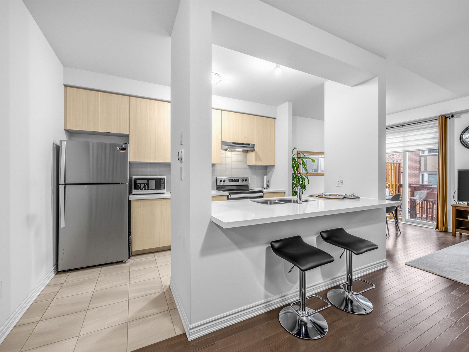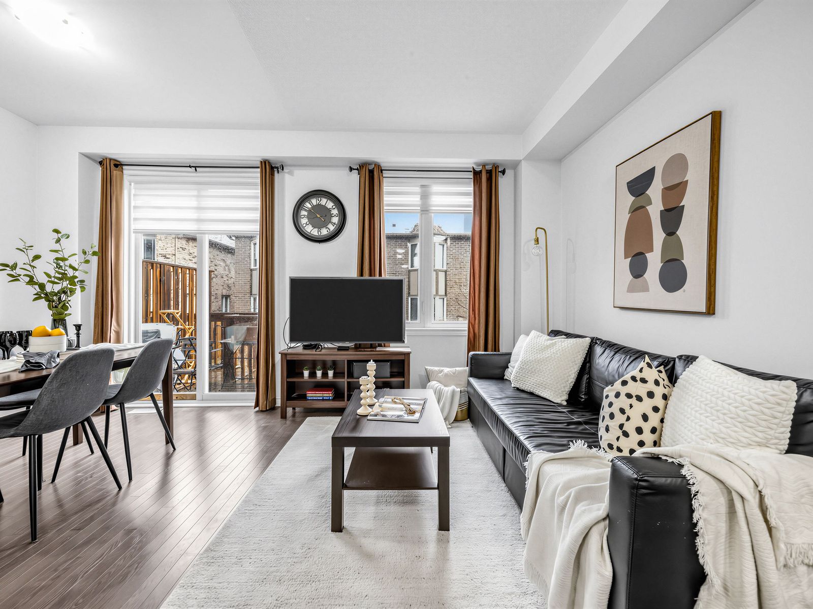 Welcome to this beautifully maintained townhome situated in a high-demand neighborhood, offering convenience and modern living. Ideally located within walking distance to shopping plazas, restaurants, schools, major highways, and everyday amenities, this home provides the perfect blend of lifestyle and accessibility. The open-concept main floor features a contemporary layout ideal for both entertaining and daily living, highlighted by a high-end kitchen with quartz countertops and quality finishes throughout. A stunning hardwood staircase leads to the upper level, where you'll find three generously sized bedrooms filled with natural light. The finished basement offers additional living space, complete with large windows and a full bathroom, making it perfect for a recreation area, guest suite, or home office. An excellent opportunity for both end users and investors, this home delivers style, functionality, and an unbeatable location.