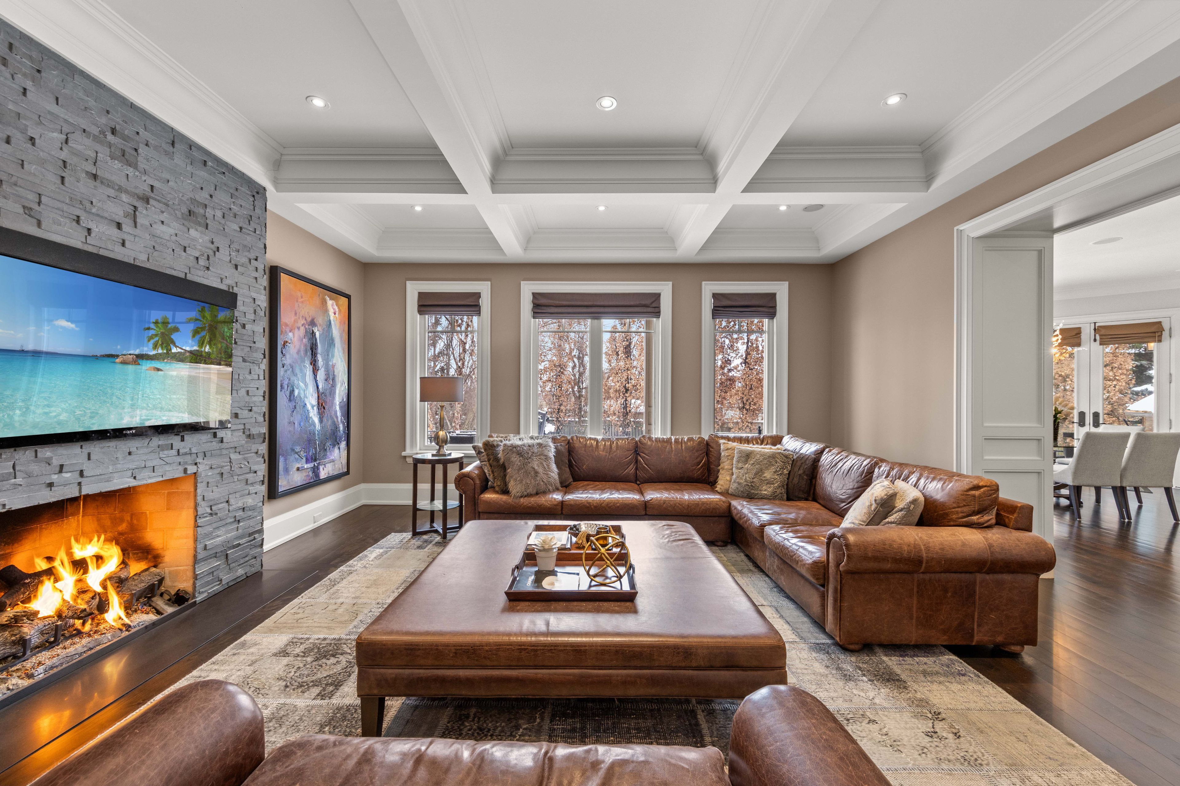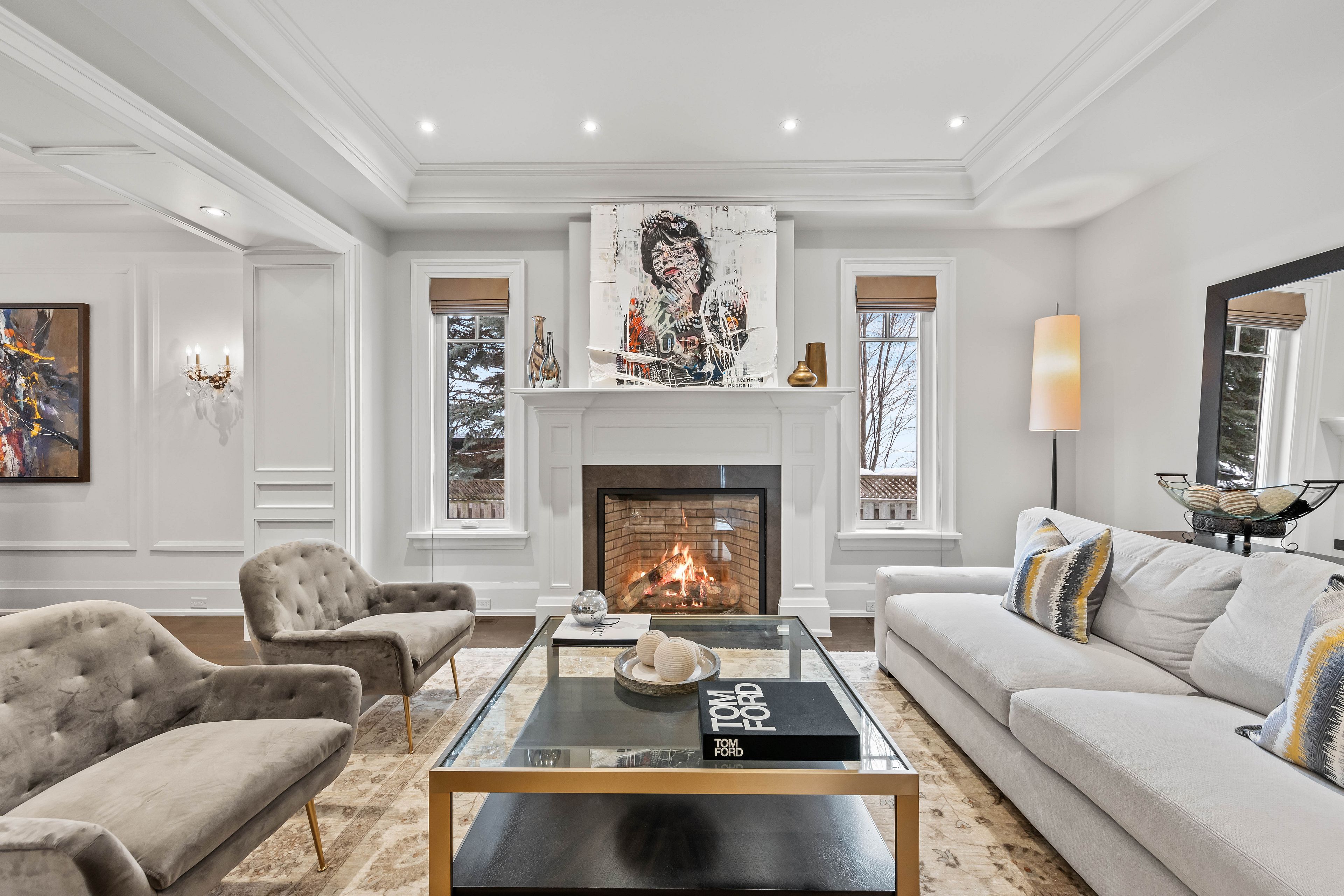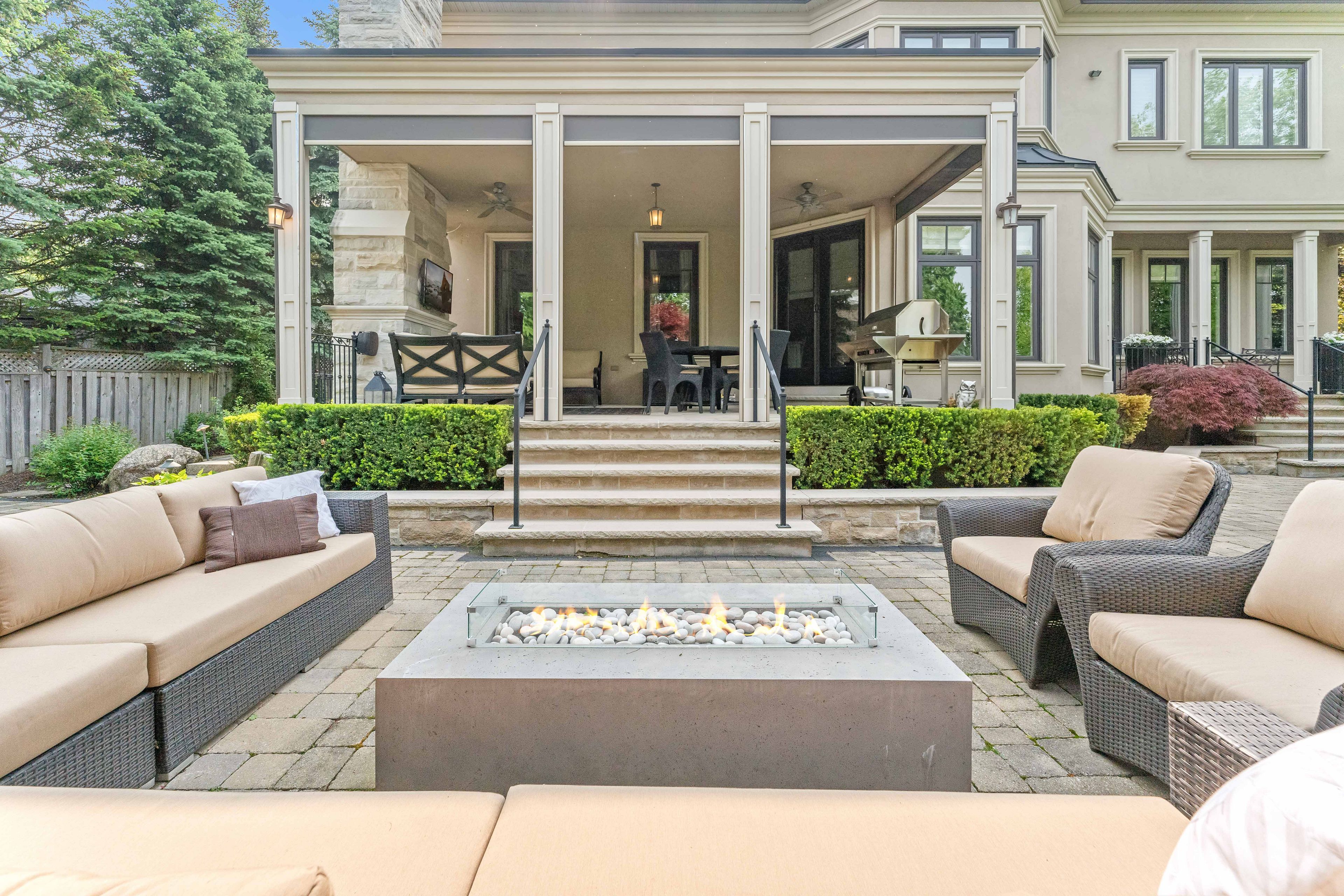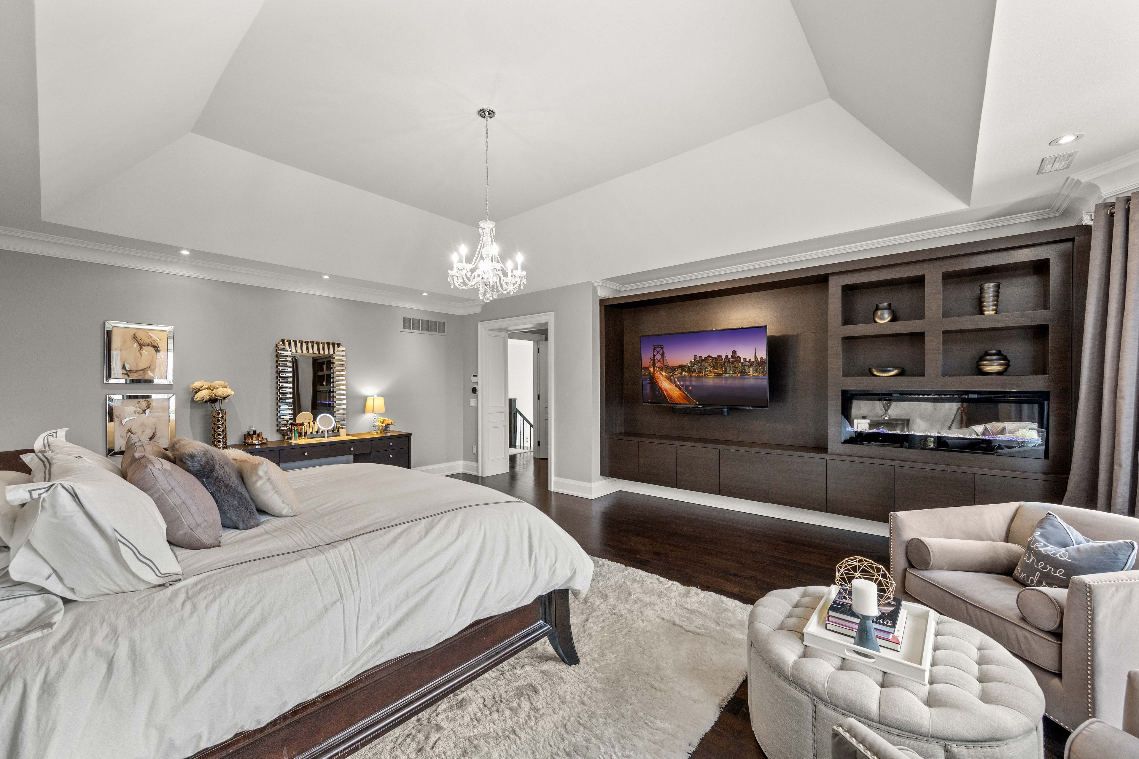 This sparing-no-expense showpiece epitomizes uncompromising luxury and meticulous attention to detail at every turn. Nestled on a coveted cul-de-sac, this custom-built masterpiece seamlessly blends timeless elegance with modern sophistication. Spanning over 5424 sq/ft (+ 2447 sq/ft basement) with 5+1 bedrooms and 6 baths, this exceptional home showcases impeccable craftsmanship with soaring 10' main floor and 9' second-floor ceilings (with 14' coffered details), hardwood floors throughout and 40 in-ceiling speakers wired for home automation. Step into the stunning foyer, where a grand central hallway gracefully connects all principal rooms. The open-concept living and dining areas set the stage for intimate gatherings and lavish celebrations. A bespoke gourmet kitchen featuring a wolf gas range/cooktop, premium miele appliances, a spacious center island, and a sunlit breakfast area opens effortlessly to meticulously landscaped grounds, including a sparkling pool with two remotely activated waterfalls, a terrace with motorized retractable patio screens, masonry fireplace with a mounted television, gas bbq line, large gas fire-pit, garden shed and multi-zoned irrigation, lighting and sound. The main floor also includes an impressive family room, powder room, laundry/mud room, and a secluded home office. The 2nd level consists of a lavish primary suite and four family/guest/office/games rooms, all with ensuite baths and large custom closets, offering a retreat for each family member. The lower level is ideal for entertaining and recreation, boasting a gas fireplace, home theatre/golf simulator, gym, wine cellar, and nanny/in-law suite with a separate walkout to the rear yard. This one-of-a-kind residence offers an unparalleled living experience for those who seek refinement and serenity.