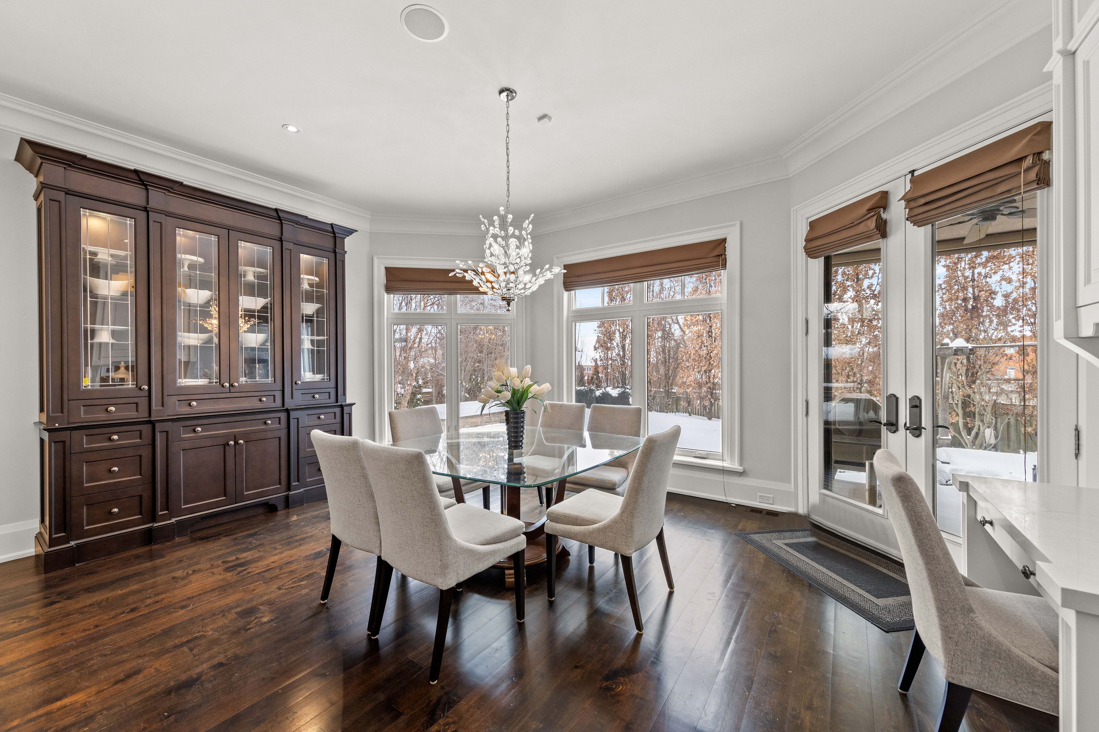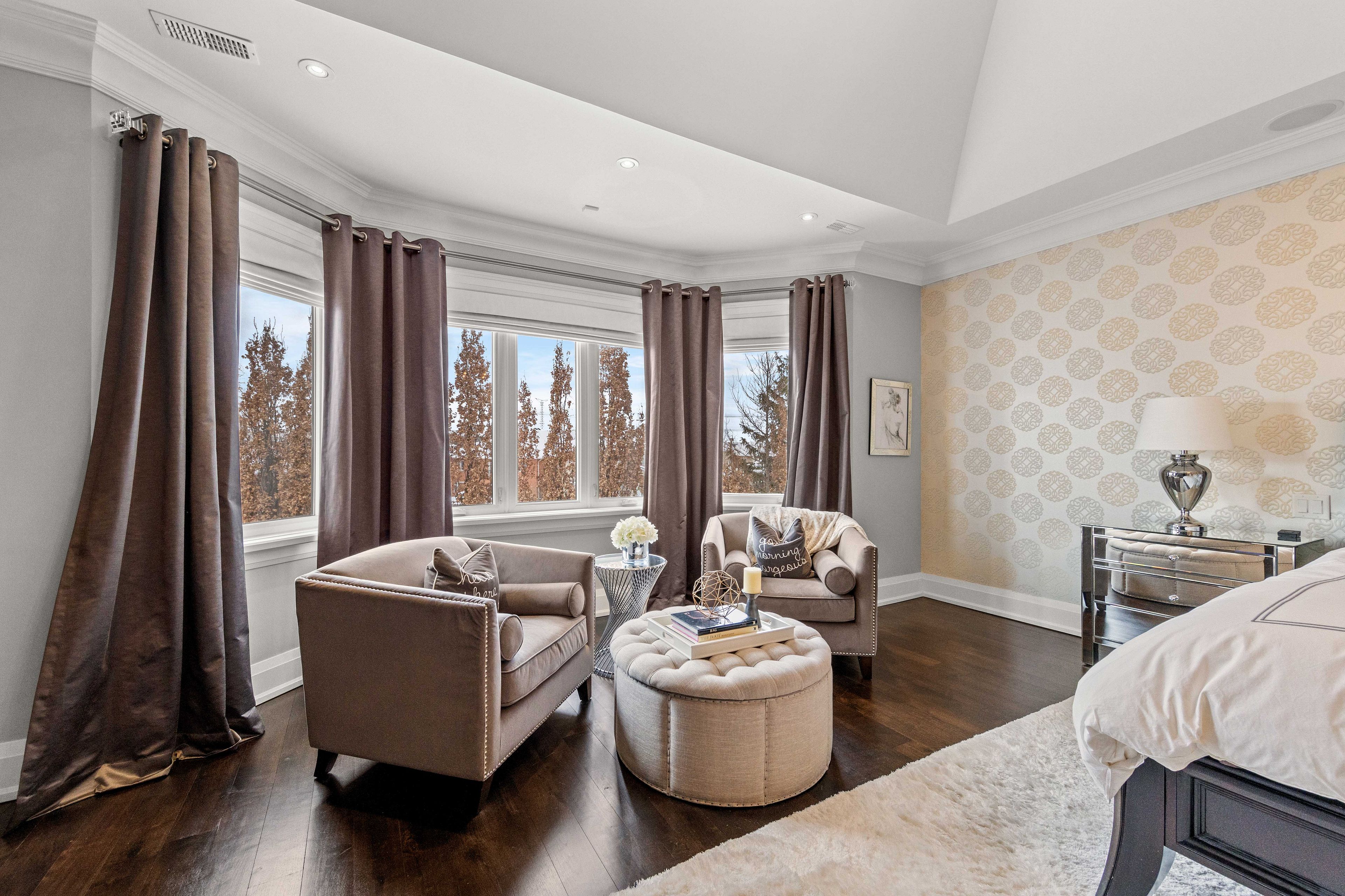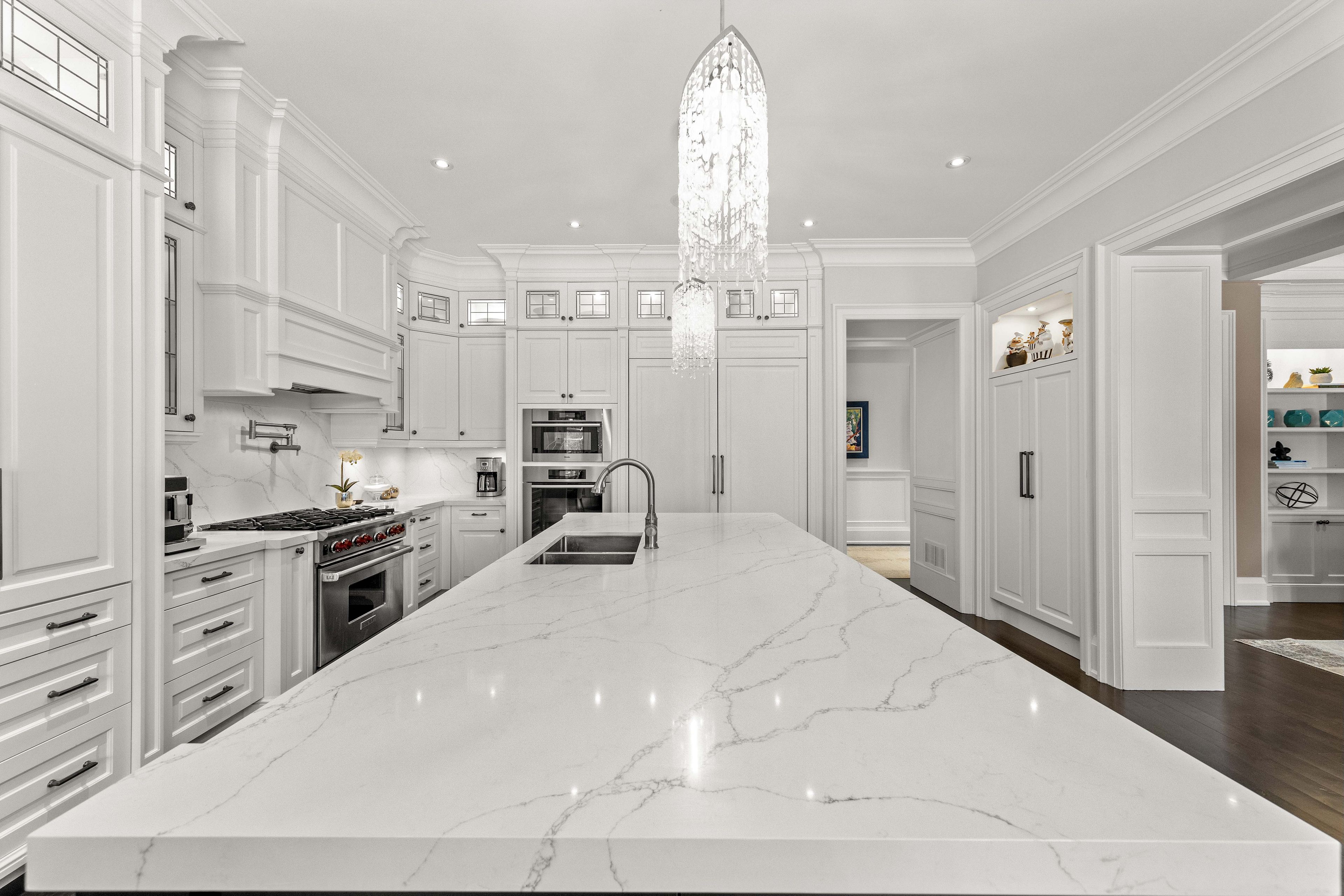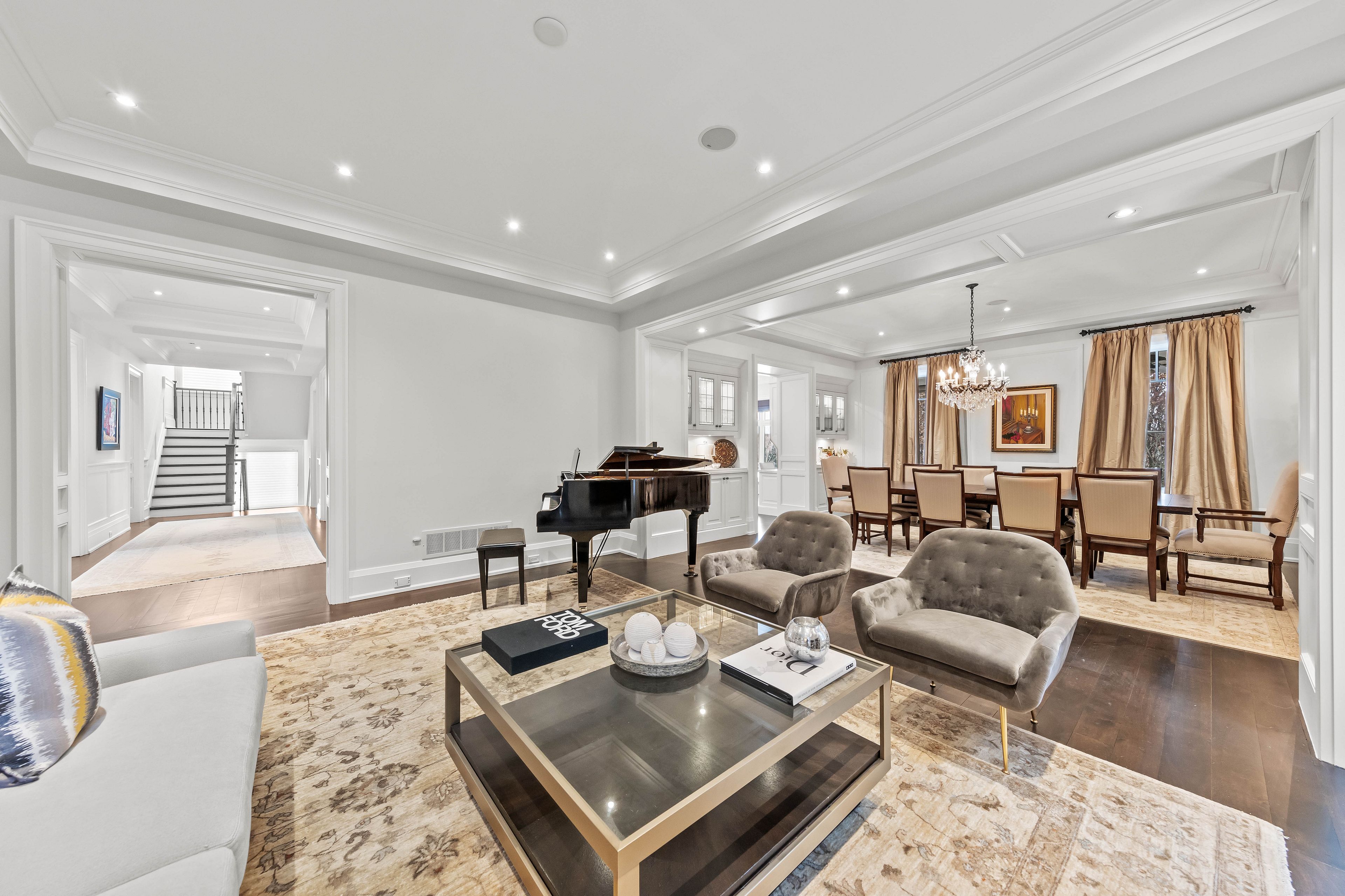 This sparing-no-expense showpiece epitomizes uncompromising luxury and meticulous attention to detail at every turn. Nestled on a coveted cul-de-sac, this custom-built masterpiece seamlessly blends timeless elegance with modern sophistication. Spanning over 5424 sq/ft (+ 2447 sq/ft basement) with 5+1 bedrooms and 6 baths, this exceptional home showcases impeccable craftsmanship with soaring 10' main floor and 9' second-floor ceilings (with 14' coffered details), hardwood floors throughout and 40 in-ceiling speakers wired for home automation. Step into the stunning foyer, where a grand central hallway gracefully connects all principal rooms. The open-concept living and dining areas set the stage for intimate gatherings and lavish celebrations. A bespoke gourmet kitchen featuring a wolf gas range/cooktop, premium miele appliances, a spacious center island, and a sunlit breakfast area opens effortlessly to meticulously landscaped grounds, including a sparkling pool with two remotely activated waterfalls, a terrace with motorized retractable patio screens, masonry fireplace with a mounted television, gas bbq line, large gas fire-pit, garden shed and multi-zoned irrigation, lighting and sound. The main floor also includes an impressive family room, powder room, laundry/mud room, and a secluded home office. The 2nd level consists of a lavish primary suite and four family/guest/office/games rooms, all with ensuite baths and large custom closets, offering a retreat for each family member. The lower level is ideal for entertaining and recreation, boasting a gas fireplace, home theatre/golf simulator, gym, wine cellar, and nanny/in-law suite with a separate walkout to the rear yard. This one-of-a-kind residence offers an unparalleled living experience for those who seek refinement and serenity.