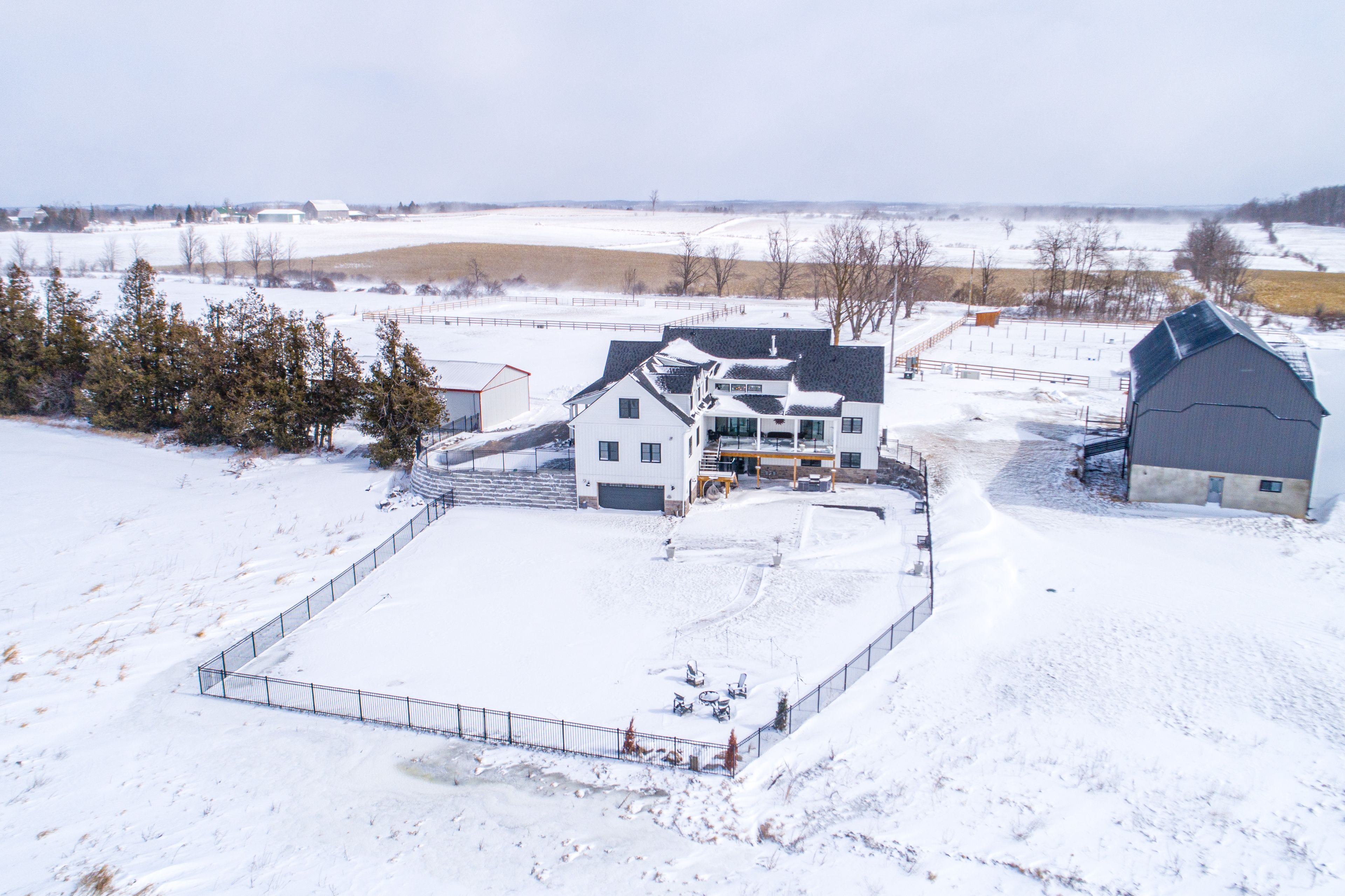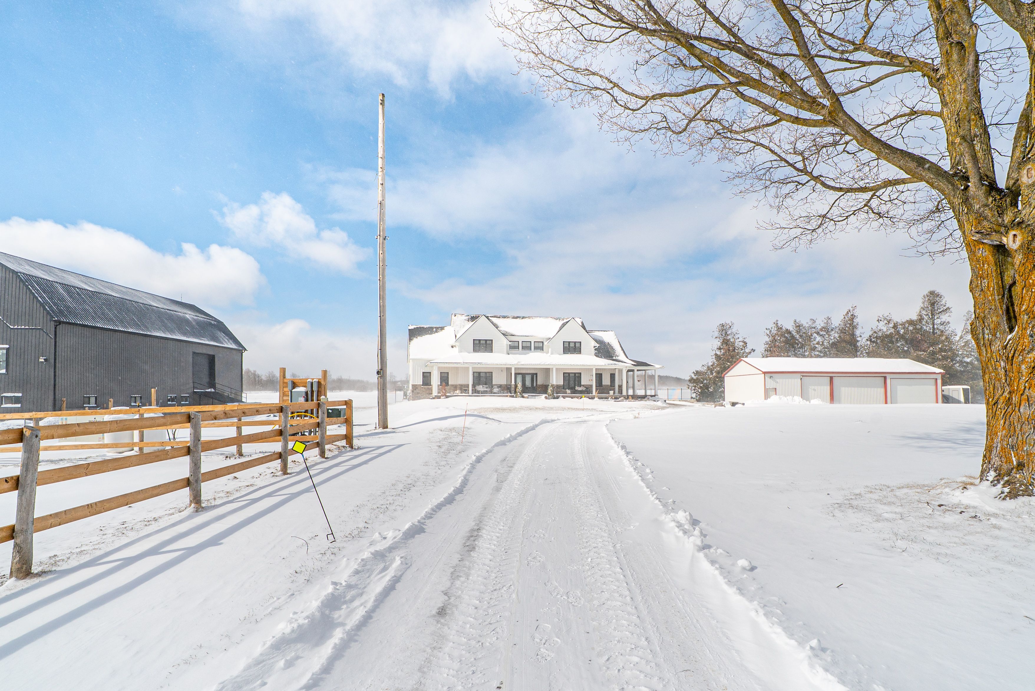 Welcome to an exceptional 98-acre equestrian estate on the outskirts of omemee, where luxury living meets a fully equipped, turnkey horse facility. Custom built in 2023, this stunning property is meticulously designed for both refined living and professional functionality featuring top-of-the-line construction, 68 workable acres and a private pond. The luxurious home offers over 7,000 sf of living space with 6 bedrooms (4+2), 5 bathrooms, and high-end finishes and in-floor heating throughout. The main level features an open-concept layout with a chef-inspired kitchen complete with a centre island, coffee bar, and walk-in pantry. The living room, with a vaulted ceiling is anchored by a fireplace with a walkout to the deck overlooking the property. A private office, 2-piece bath, and laundry room with access to the upper 9m x7m insulated/heated attached garage, an exercise room above the garage, and a wrap-around deck add convenience. The main floor primary suite is a true retreat, offering a spacious walk-in closet with centre island, walkout to the deck, and a luxurious 5-piece ensuite. A dedicated dog spa with built-in wash station adds a thoughtful touch. Upstairs includes 3 generously sized bedrooms, a sitting room, a loft overlooking the living room and a 4-piece bath. The finished walkout basement features a recreation room with access to a stamped concrete patio, an outdoor kitchen, and an 18' x 36' inground pool. A movie/media room, 2 bedrooms, access to the lower 9m x 7m insulated/heated attached garage, 2 additional baths, and a pool change room complete the lower level. Equestrian facilities include an indoor riding arena (21. 2m x 50m), a potential upper viewing area from the restored dutch bank barn with 8 stalls, wash bay, heated tack room, heated laundry/water room, and 3 outdoor paddocks. Additional outbuildings include a quonset hut (13. 5m x 18. 5m) and heated storage/workshop (9m x 21m).