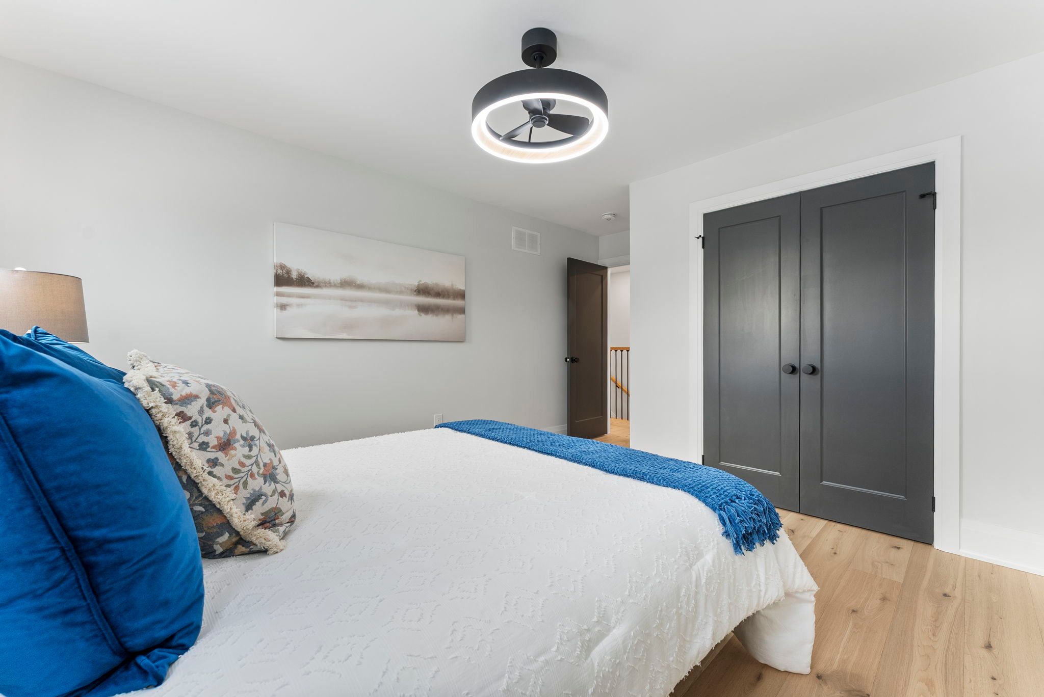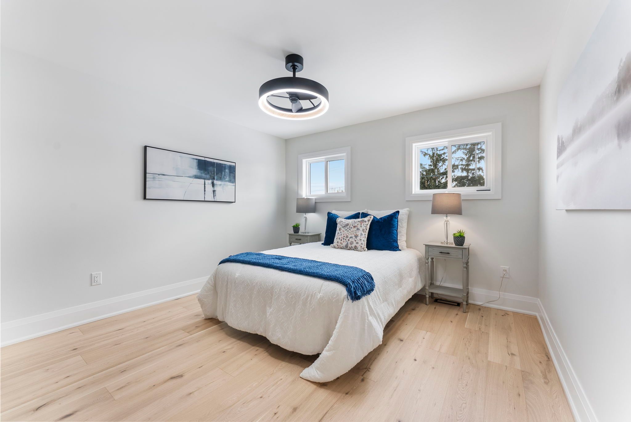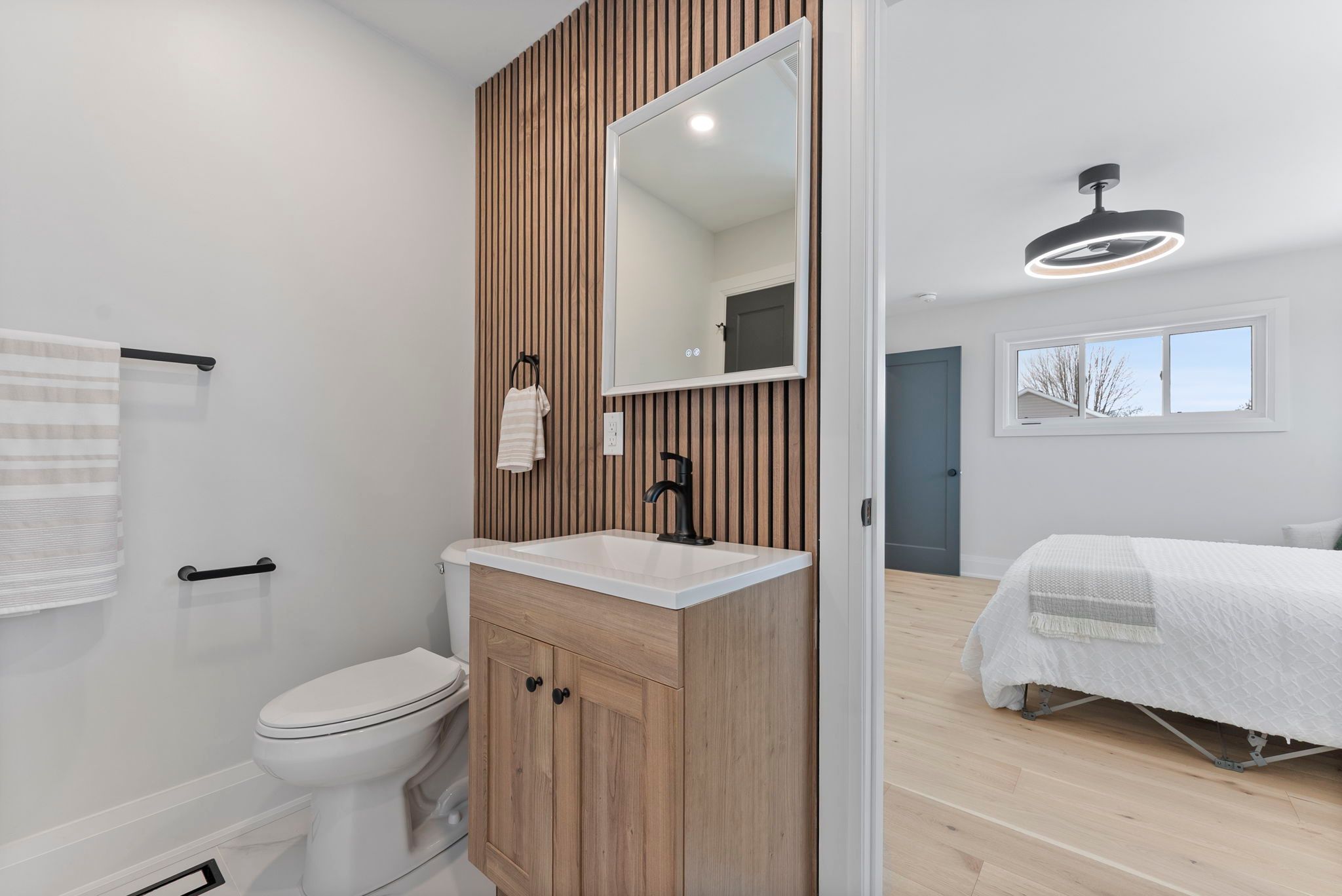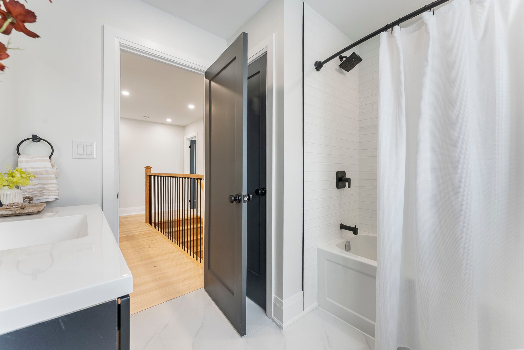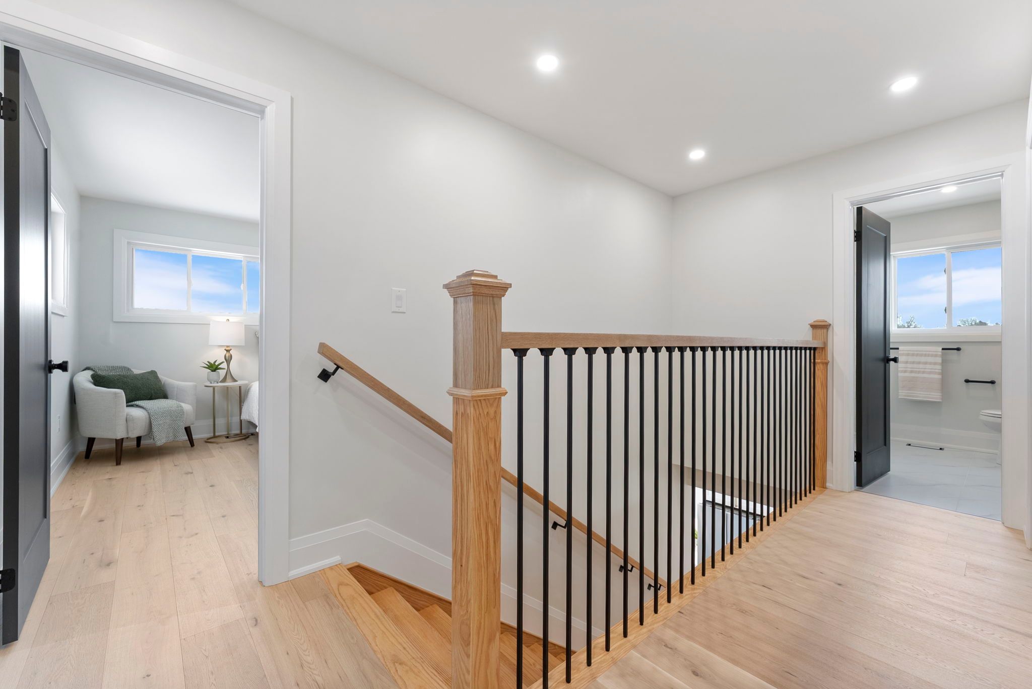 Wake up to quiet mornings & river air in this beautifully custom built new home, perfectly positioned on a large corner lot just steps from the grand river. Whether it's morning coffee by the water, evening walks along the trail, or quick trips into downtown caledonia, this location offers the kind of lifestyle that's hard to find - peaceful, walkable, and connected. The exterior showcases crisp white vinyl siding complemented by striking black soffits, fascia, eavestroughs, front door, and garage door. Soffit pot lighting adds evening curb appeal, while a rear deck off the sliding doors, fresh sod, and an asphalt driveway are to be completed. Inside, the home feels warm, bright, and thoughtfully designed for everyday living. The welcoming entry offers upgraded ceramic hexagon tile with convenient access to the laundry room and powder room. Light oak hardwood flooring runs throughout the main living spaces and bedrooms, creating a seamless flow. The heart of the home is the open concept kitchen, featuring white shaker style cabinetry with crown moulding & gold hardware, quartz countertops and backsplash, pantry storage, a pot filler over the stove, and stainless steel appliances - perfect for casual breakfasts or hosting friends. An extra wide staircase with iron balusters leads to the second level, where three comfortable bedrooms feature upgraded lighting and ceiling fans. The primary suite provides a peaceful retreat with a walk-in closet and a spa inspired ensuite, complete with a tiled tub surround, linen storage, and a stylish wood slat feature wall. A second full bath with a tiled tub surround and separate linen closet completes the upper level. A beautifully finished new home in a walkable, riverside setting - designed for comfort, style, and everyday life.