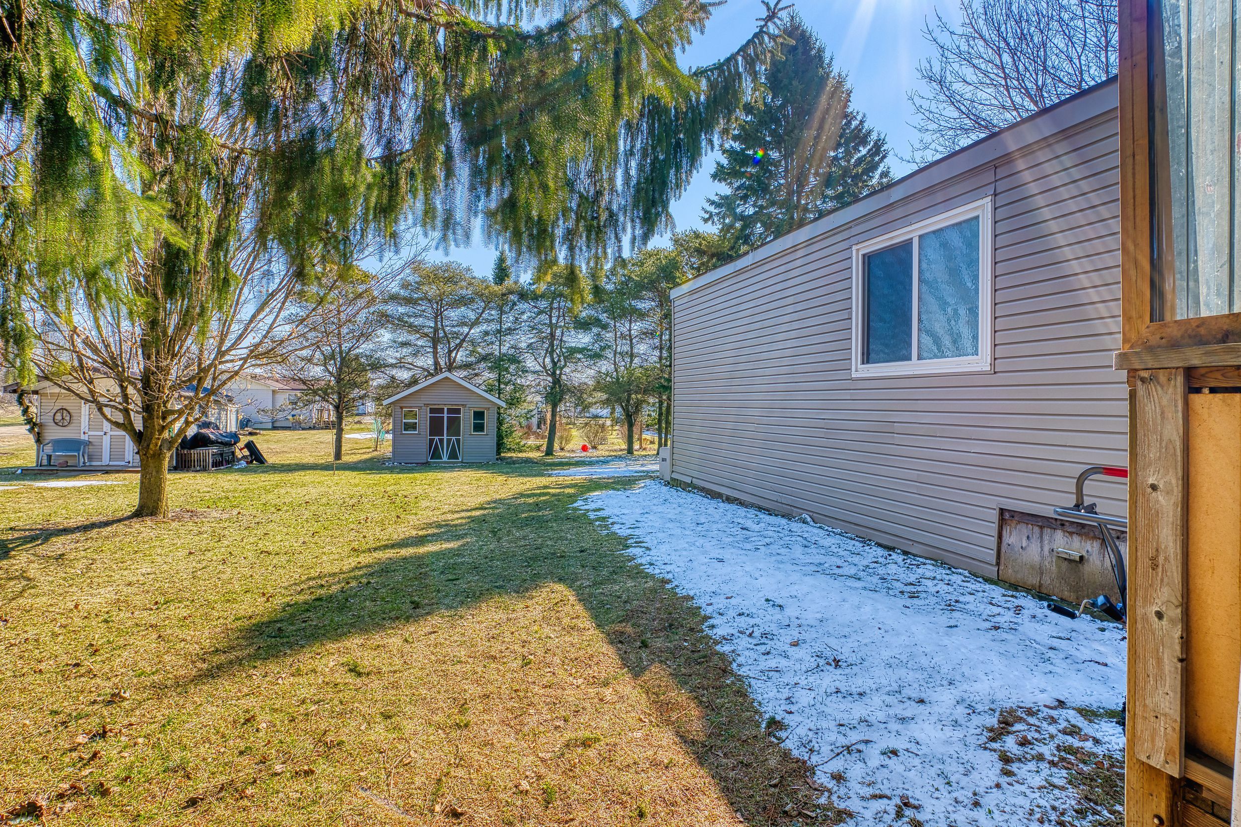 • Backyard access with a storage shed for extra convenience.