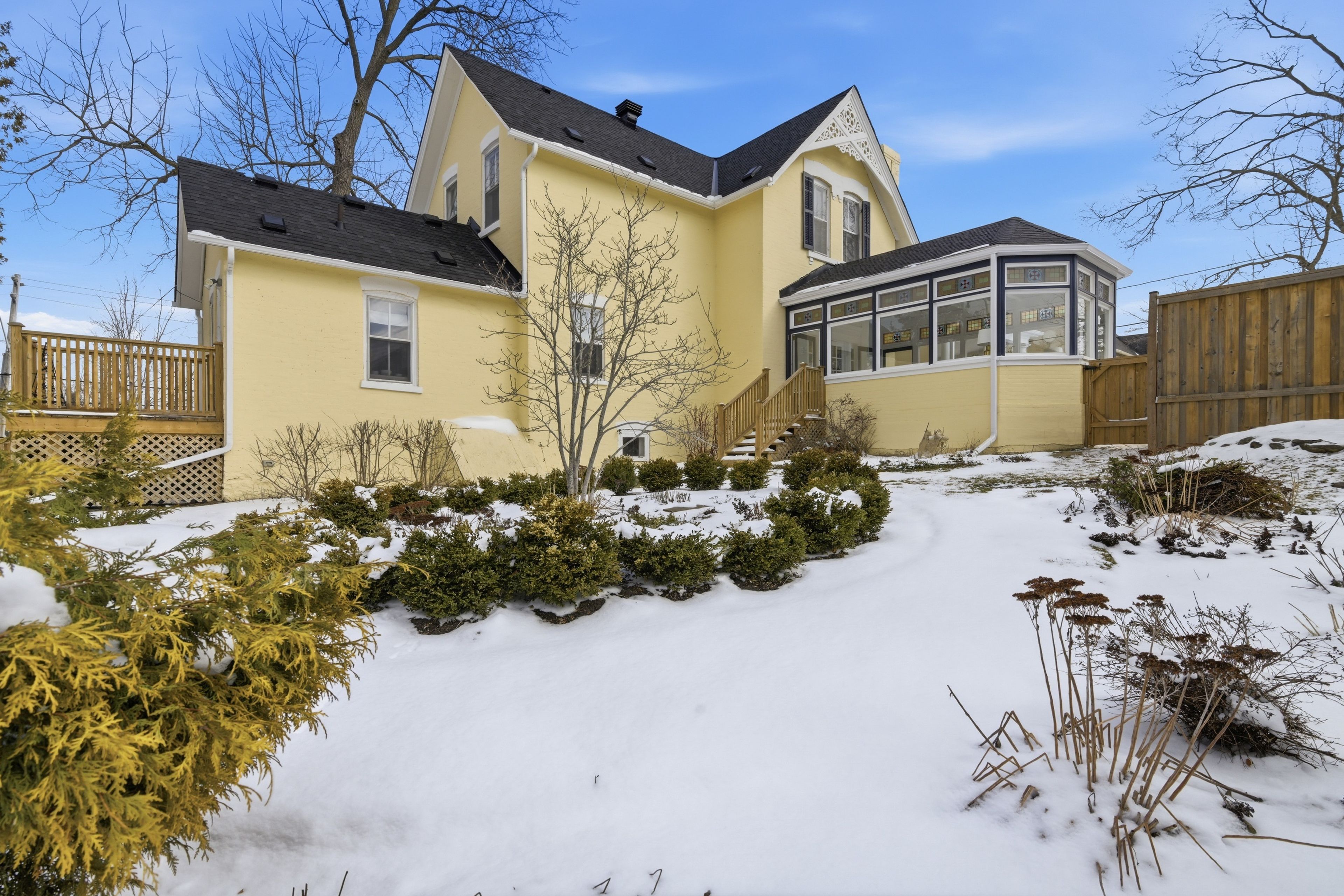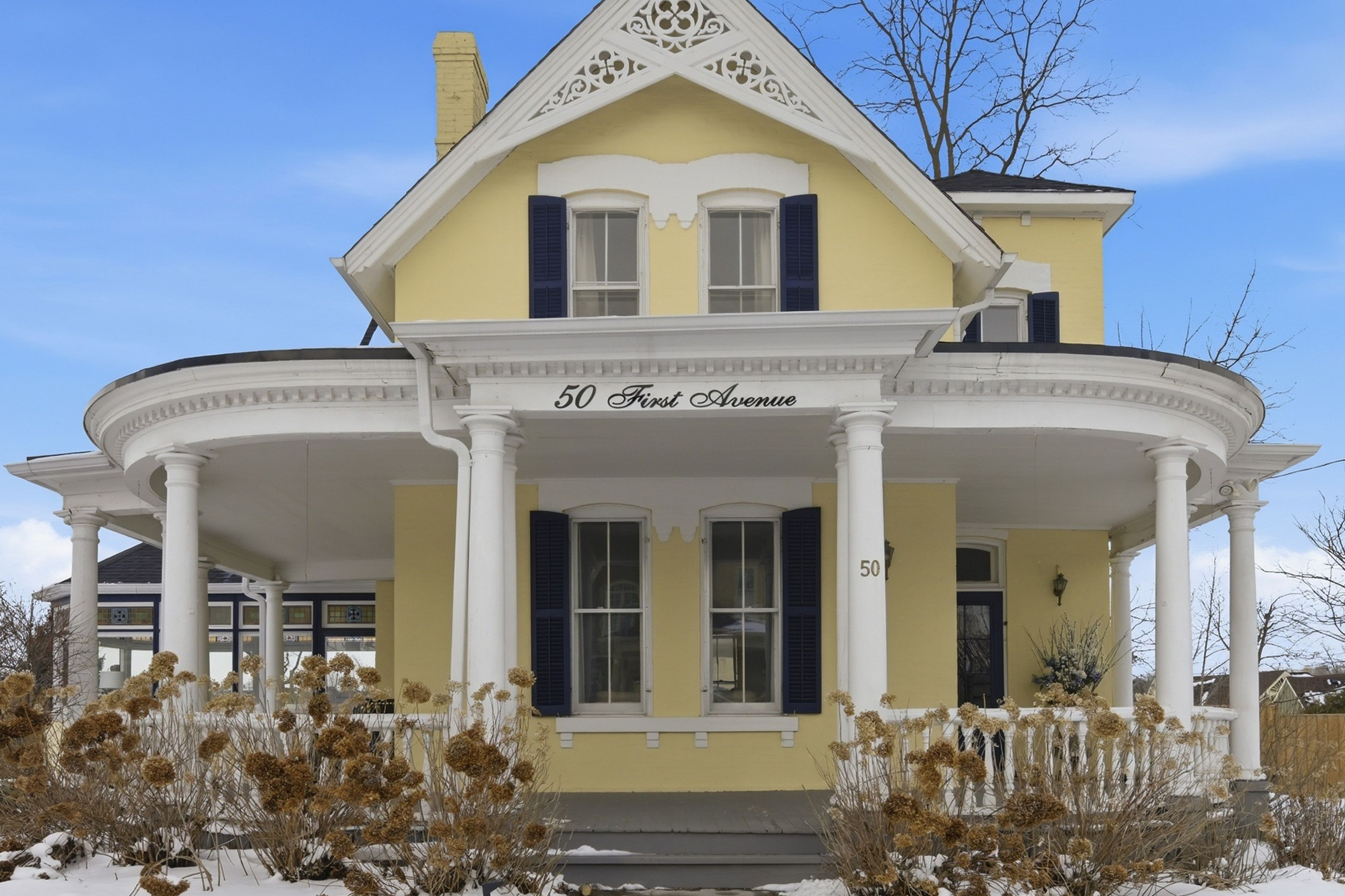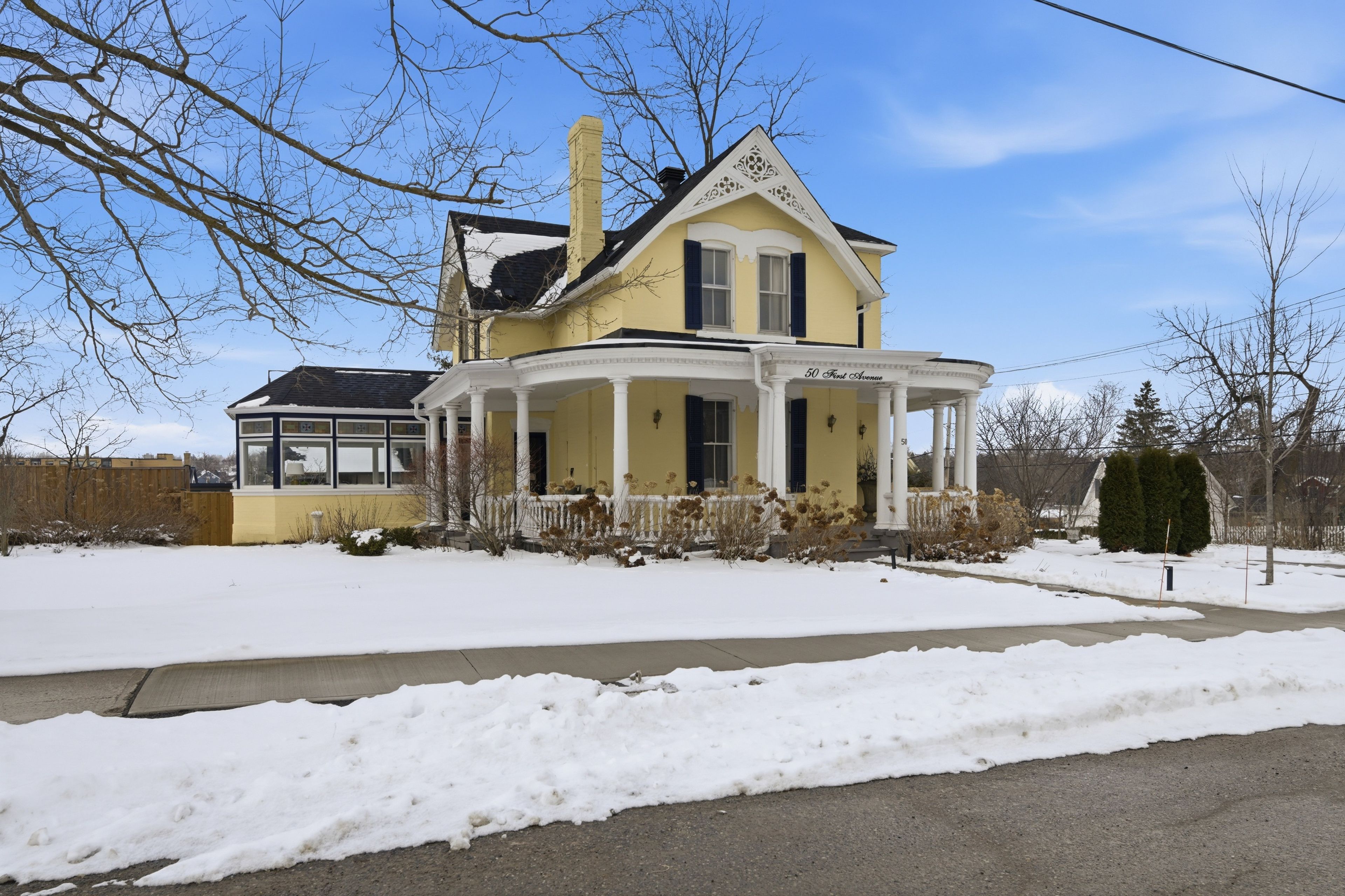 This beautifully preserved circa 1880 century home is set on a prominent corner lot along one of the town's most picturesque streets. Offering over 3,200 sq ft, the property balances architectural character with thoughtful modern upgrades, including a newer roof and furnace. Exceptional curb appeal is defined by extensive gardens, a wraparound porch, decorative trim, and classic shutters that speak to the craftsmanship of its era. Inside, a grand foyer introduces a sweeping curved staircase accented by ornate millwork and soaring ceilings. The main floor features 10-foot ceilings and an abundance of original details, including oversized baseboards, period trim, tall windows with transoms, chair rails, and original cold air returns. Six well-defined living spaces offer both elegance and versatility: a formal living room with gas fireplace insert, central dining room, parlour with french doors, warm and inviting kitchen, private office with adjacent bathroom, and a beautifully rebuilt conservatory with original stained glass transoms providing a peaceful, light-filled retreat. The kitchen is anchored by a centre island with granite countertops and stainless steel appliances, and the main-floor office is ideal for a home-based workspace. Upstairs, 9. 5-foot ceilings continue the sense of openness. A generous landing offers space for a reading nook. The principal bedroom features an electric fireplace, large walk-in closet with custom organizers, and excellent natural light. Two additional bedrooms are generously sized and complemented by a 3-piece bath with soaker tub and a second 3-piece bath with shower. The dry basement with 8' ceilings provides ample storage space, a washer, dryer, hot water heater (rented), owned water softener, and utility sink. Homes of this calibre and character rarely come to market. A true uxbridge landmark, offering timeless beauty, thoughtful updates, and a setting that feels both special and welcoming.