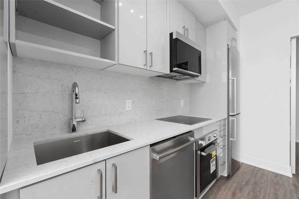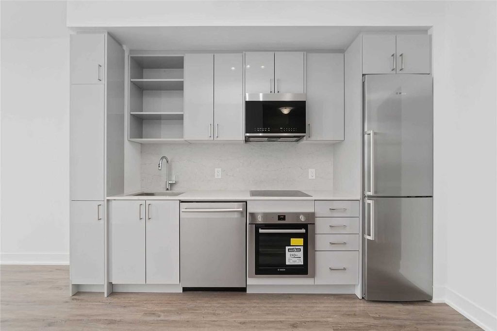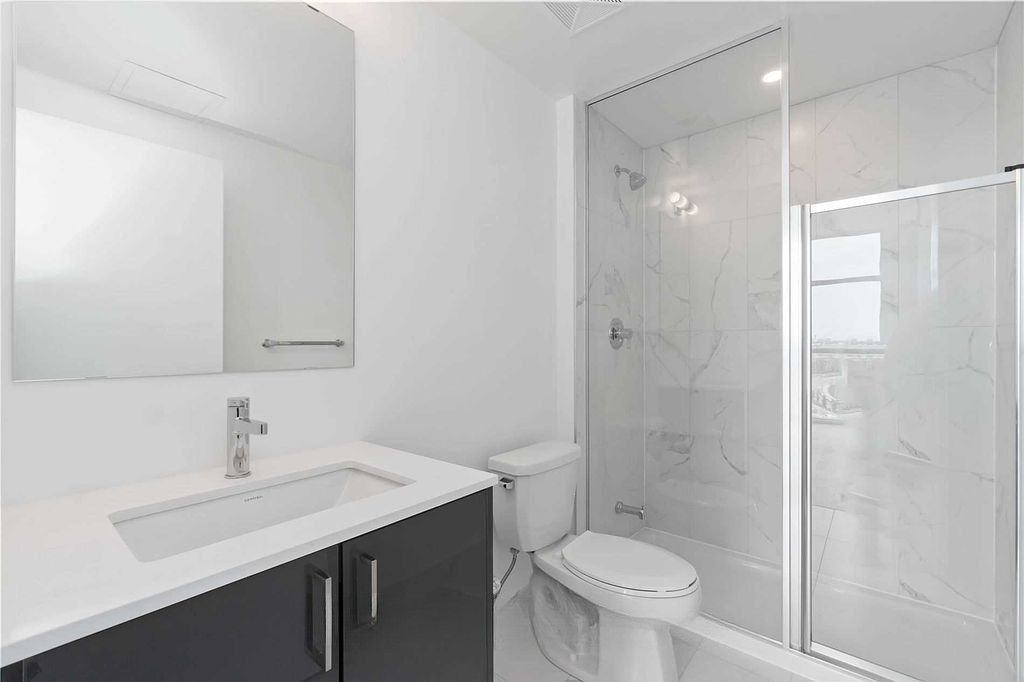 Discover this stylish and functional 2-bedroom, 2-bathroom residence at saturday in downsview park by mattamy homes. Situated on the highest floor of the building, this suite offers a penthouse-like feel with enhanced privacy and elevated views. This bright and well-appointed 680 sq ft unit features a thoughtfully designed layout with no wasted space, complemented by upgraded laminate flooring, modern finishes throughout, and a spacious ~70 sq ft balcony with bright southeast exposure with abundant natural light. The sleek kitchen is equipped with quartz countertops, higher-end stainless steel appliances, and soft-close cabinetry, offering a refined, contemporary design that blends style with everyday functionality. Unit also includes a frameless glass shower in the primary ensuite along with a bathtub in second bathroom, curtain rods with blackout curtains in the primary bedroom. Both bedrooms are well-proportioned, providing comfortable living along with flexible work-from-home options. The open-concept living and dining area flows seamlessly to the balcony, creating an ideal setting for relaxing or entertaining. This unit includes 1 parking space and 1 locker for added convenience. Residents enjoy exceptional amenities, including a fully equipped fitness centre, yoga studio, party room, co-working lounge, games room, outdoor terrace with bbq area, pet wash station, and 24/7 concierge service. Ideally located in the heart of downsview park, this home offers direct access to expansive green space, walking trails, and year-round events. Transit is highly accessible with ttc, downsview park go, and nearby subway connections, while highways 401, 400, and allen road are just minutes away. York university and yorkdale shopping centre are also nearby. A modern urban home in a vibrant, well-connected community surrounded by nature and convenience.