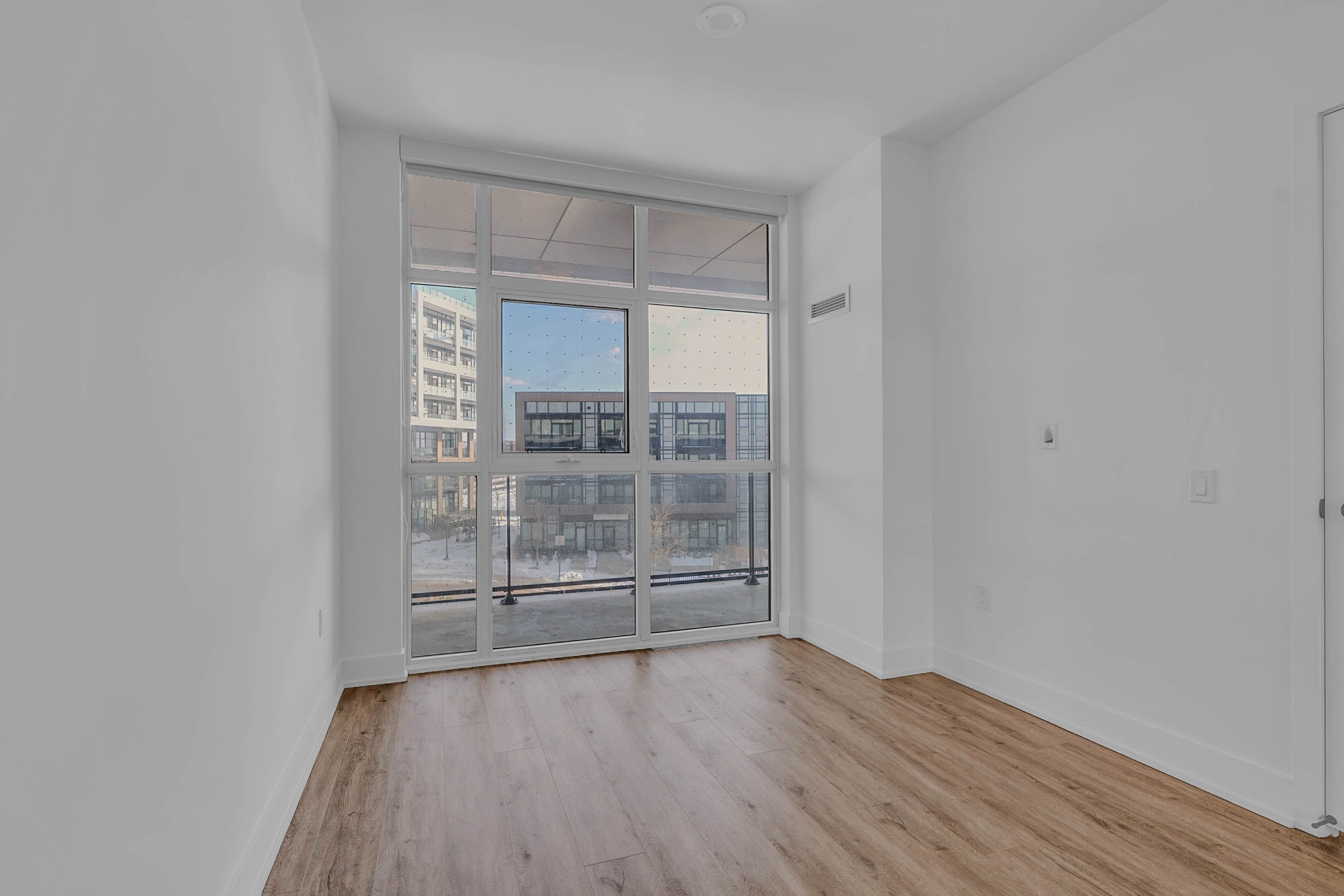 • Open-concept living room with sliding door to a bright balcony.
