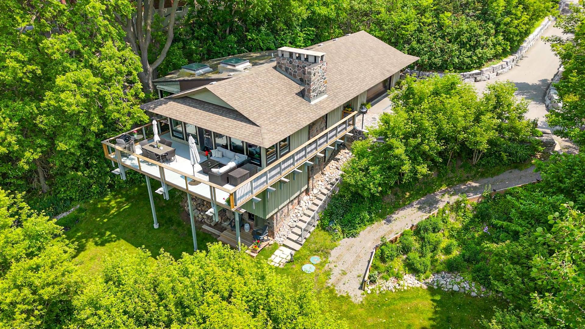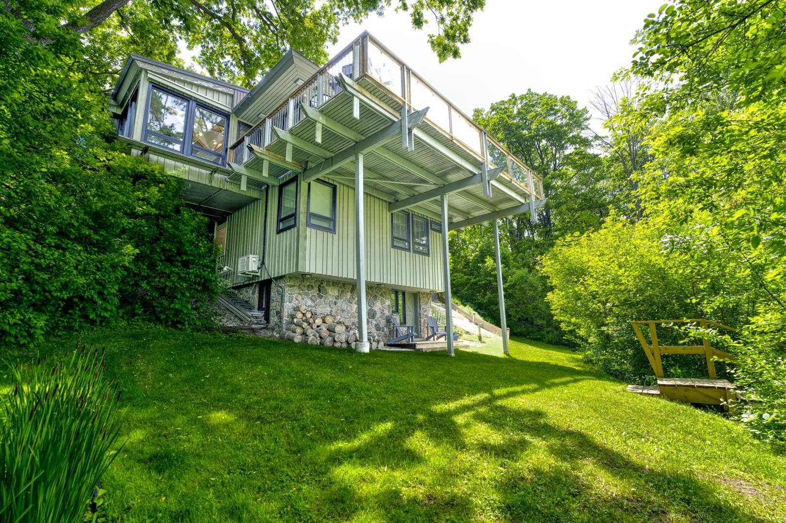 Exceptional one-of-a-kind custom-built residence, tucked away in a truly private setting. Inspired by the timeless architecture of frank lloyd wright, this 3-bedroom, 2-bath home blends natural materials, clean lines, and a seamless connection to the surrounding landscape. Enjoy panoramic views of the grand river, hole 5 at doon valley golf course, and breathtaking sunset vistas. Expansive windows and open-concept living spaces create an elegant indoor/outdoor living experience, while the striking three-storey stone fireplace with dual hearths adds warmth and architectural drama. Thoughtful handcrafted details, custom built-ins, and organic textures bring understated sophistication throughout. The beautifully appointed kitchen and great room are ideal for refined entertaining or relaxed everyday living. The extra-wide garage easily fits two cars and more, with a walk-out to the dog run. Live the cottage lifestyle in the city.