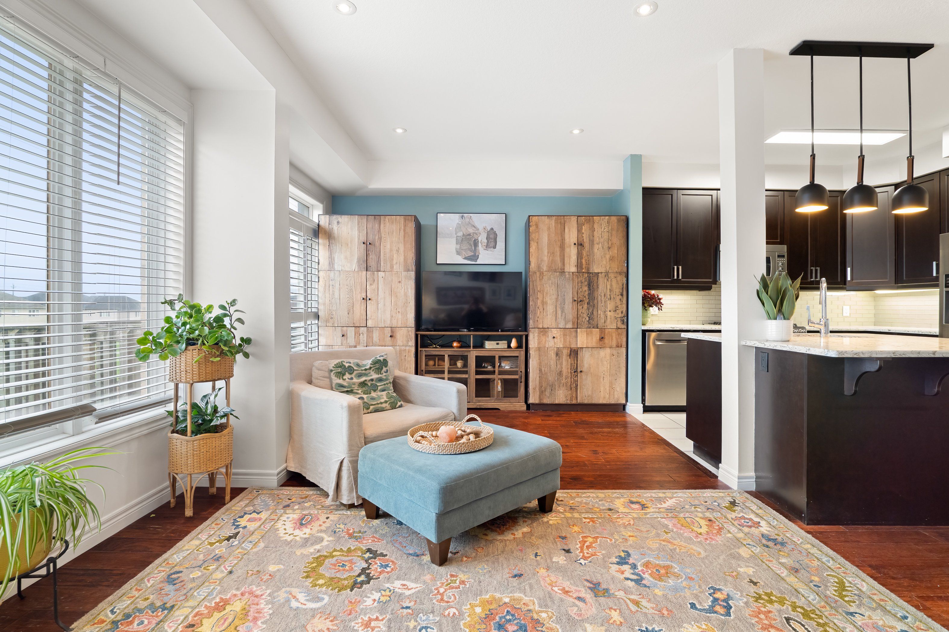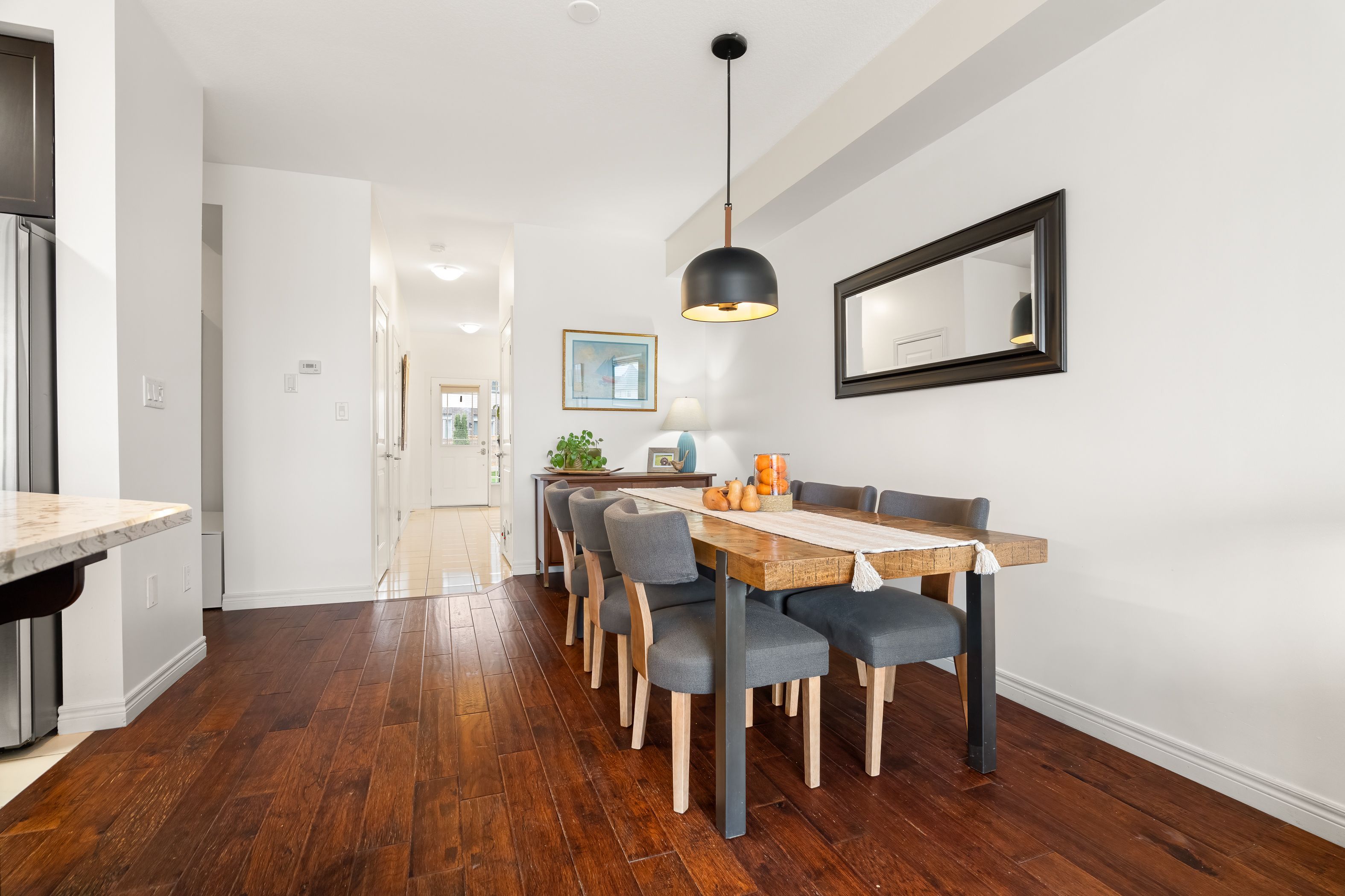 Welcome to 50 greenwater! Freehold ownership in doon south already stands out. Add in a finished walkout basement and no rear neighbours, and you've got something truly special on your hands. Check out our top 6 reasons why this home is the right fit for you.#6: doon south: doon south is one of those neighbourhoods people move into and stay. You're close to schools, nature, walking trails, parks, shopping, and transit, with quick highway access when you need it. It's established, connected, and easy to live in. #5: no rear neighbours: out back is something truly special - privacy.#4: main floor living: when you're inside, the carpet-free main floor opens up. There's a bright, open-concept living room with peaceful views, engineered hardwood and tile flooring throughout, and a convenient powder room. And just off the main area, there's a dedicated den - which could be set up as a pantry, home office, or additional storage. It's a versatile space you'll actually use. #3: eat-in kitchen: a lot of townhomes at this price give you the basics and call it a day. This one gives you a kitchen with stainless steel appliances, quartz countertops, under-cabinet lighting, an island with a breakfast bar, and a spacious dinette - perfect for hosting. #2: bedrooms & bathrooms: upstairs, there are two surprises waiting: a cozy nook with a skylight, where you can kick back with a book or a movie, and second-floor laundry, which saves you time and energy. The primary bedroom gives you plenty of space, and comes with a walk-in closet and a 3-piece ensuite with a shower. The remaining 2 bedrooms share a full 4-piece bathroom with a shower/tub combo. #1: walkout basement: the basement offers a large rec room with a walkout and a 3-piece bathroom. That gives you a whole second layer of living space most townhomes simply don't have. Freehold ownership, no rear neighbours, and a finished walkout basement - that's what sets 50 greenwater apart.