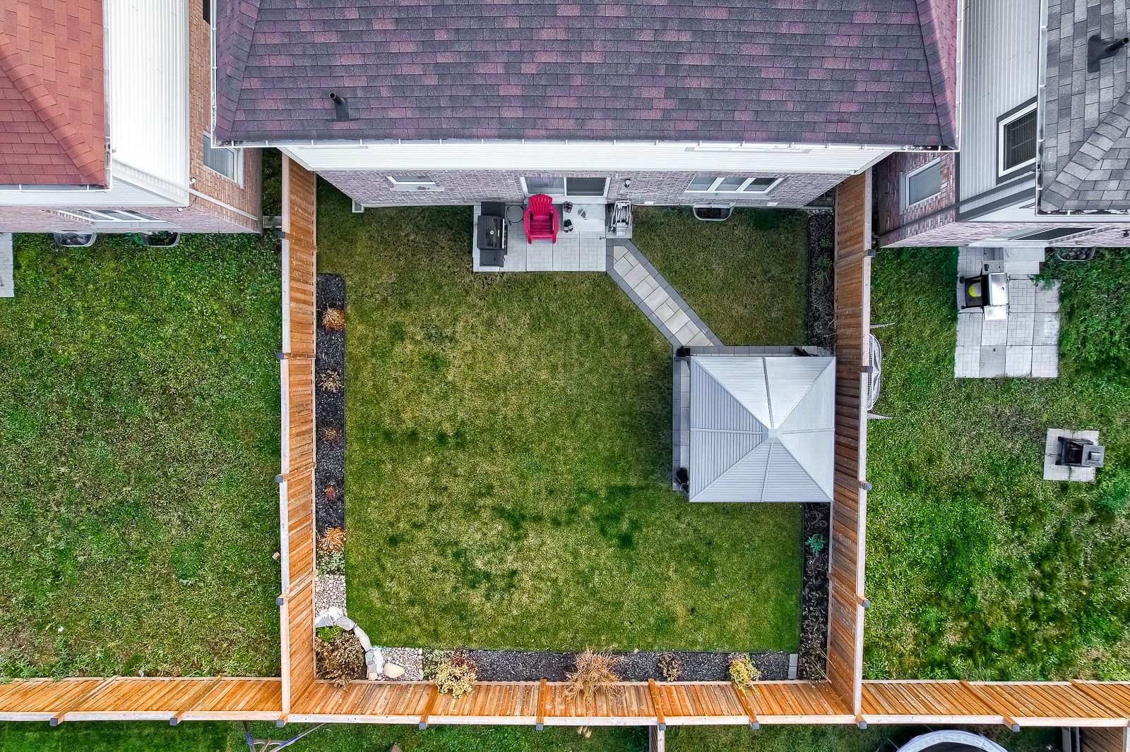 • Large fenced backyard featuring a patio and gazebo for gatherings.