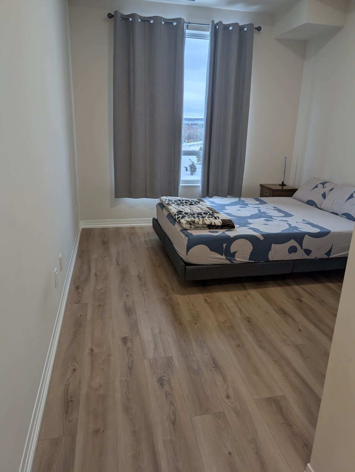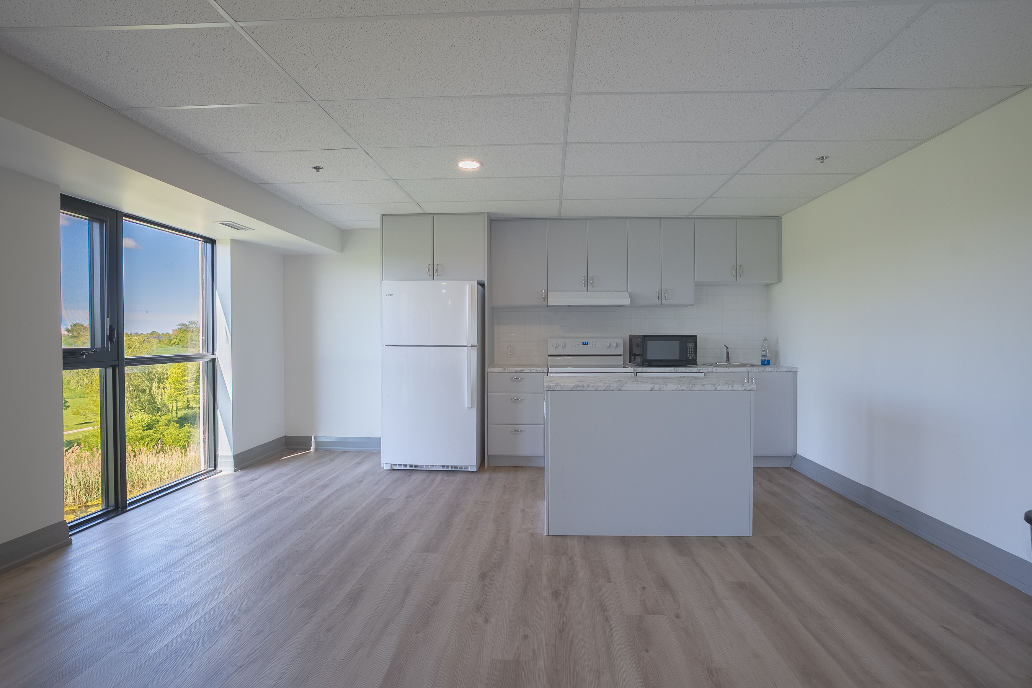 • Bright open-concept layout with 9ft ceilings and laminate flooring.
